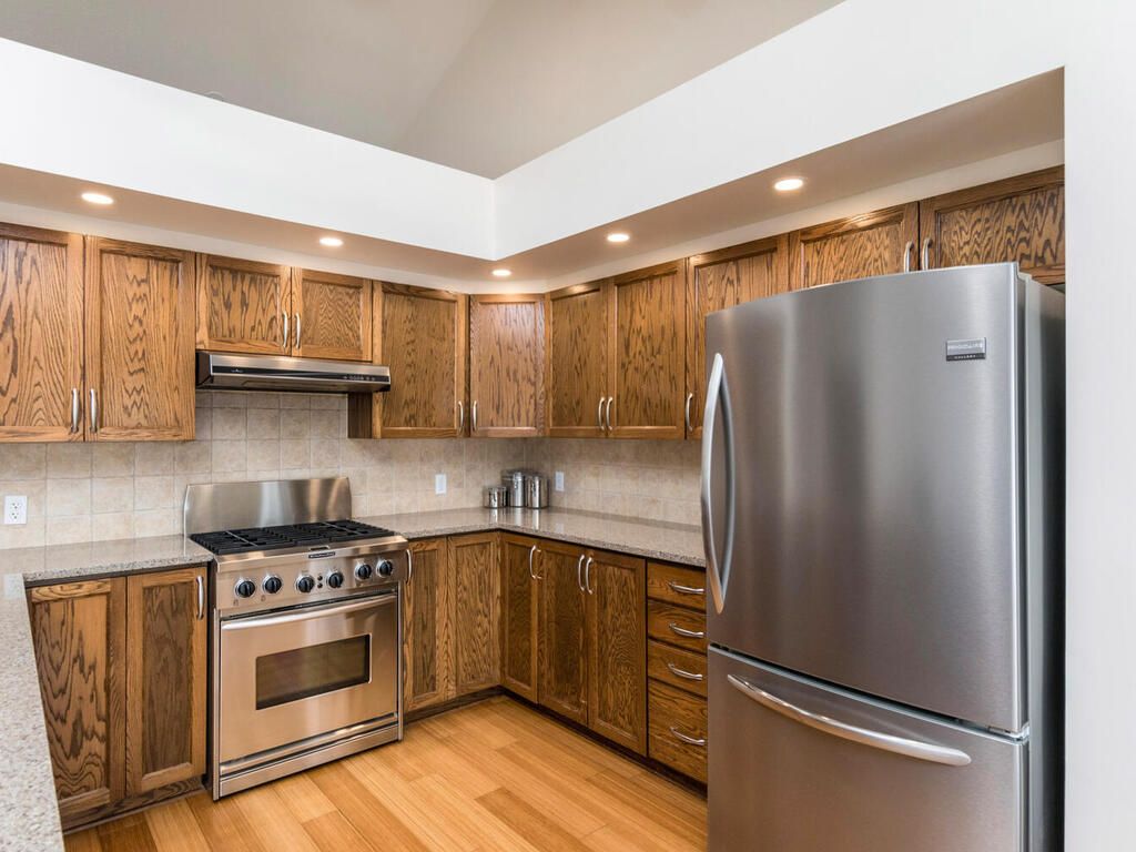 • Equipped kitchen with gas stove and easy access to outdoor BBQ.