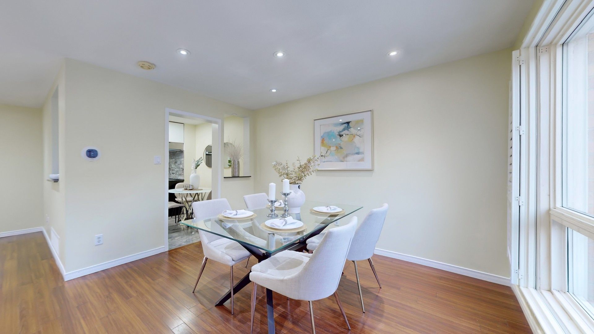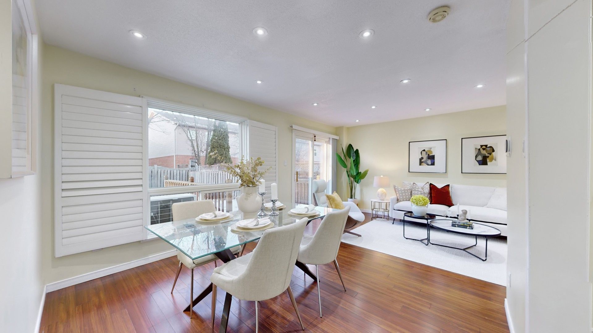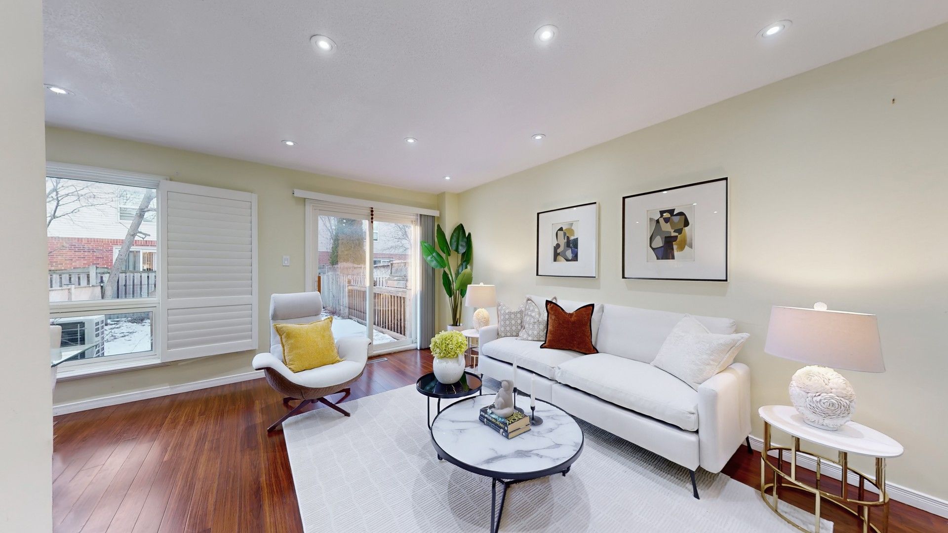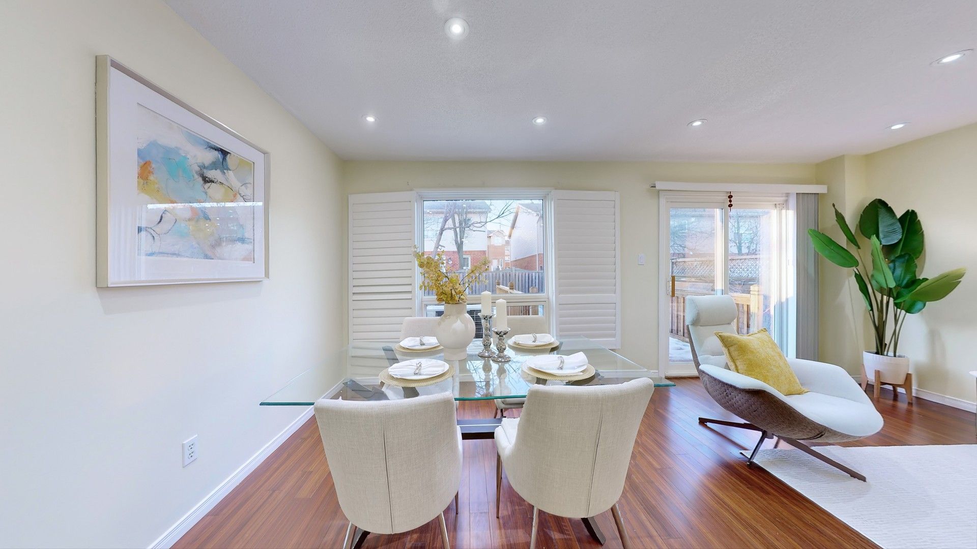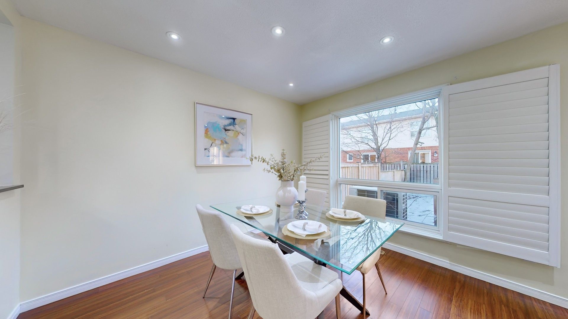 Vibrant, beautifully upgraded townhome located in the highly sought-after glen abbey community-home to one of ontario's top-ranked schools. This spacious and sophisticated home offers 3+1 bedrooms and 4 bathrooms, providing enhanced privacy with direct access to the fenced backyard. Extensively renovated with substantial upgrades throughout. The bright and spacious living room features engineered hardwood flooring, pot lights, large window with california shutters, and a walkout to deck and private backyard. The renovated eat-in kitchen boasts floor-to-ceiling white cabinetry, quartz countertops, stylish backsplash, stainless steel appliances, oversized tiles, and a split-face quartz feature wall. The oversized primary bedroom includes his and hers closets, california shutters, and a 3-piece ensuite. Two additional generously sized bedrooms are complemented by a 5-piece main bathroom with double sinks and quartz countertop. The finished basement offers a large recreation/entertainment area, fourth bedroom, full bathroom, laminate flooring, wet bar with quartz countertop, and cold storage. Recent upgrades include: heater pump (2023); windows, garage door, front entry door, kitchen, kitchen appliances, engineered hardwood floors, and refinished staircase (2016); interlock stone walkway and deck (2016); fence (2021); roof shingles (2009). A move-in-ready home offering exceptional style, space, and value in a premium glen abbey location: family-oriented community surrounded by an abundance of amenities, including highly ranked schools, major shopping, parks, trails, community centres, playgrounds, golf courses, and more. With easy access to hwy 403, qew, and the go station, this location is perfect for families, commuters, professionals, and outdoor enthusiasts. Come to see and discover the lifestyle this home and neighbourhood proudly offer.