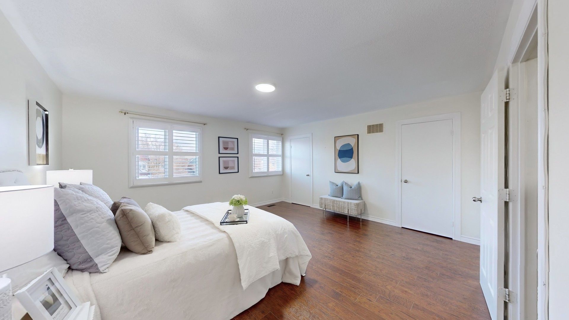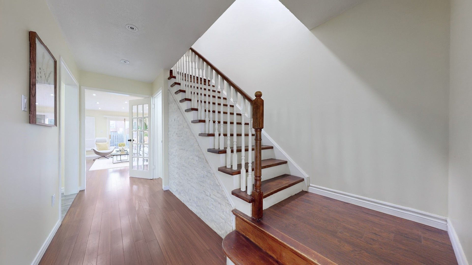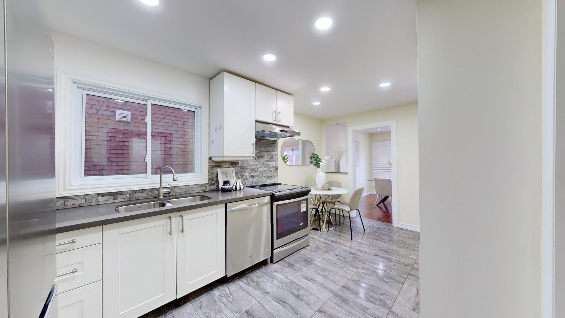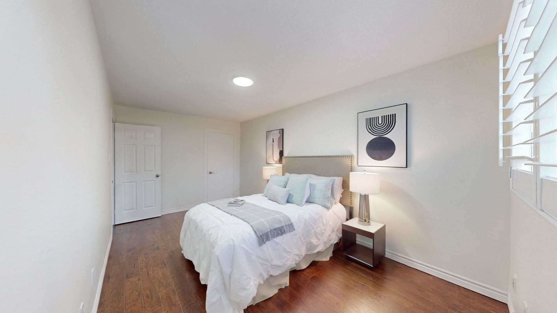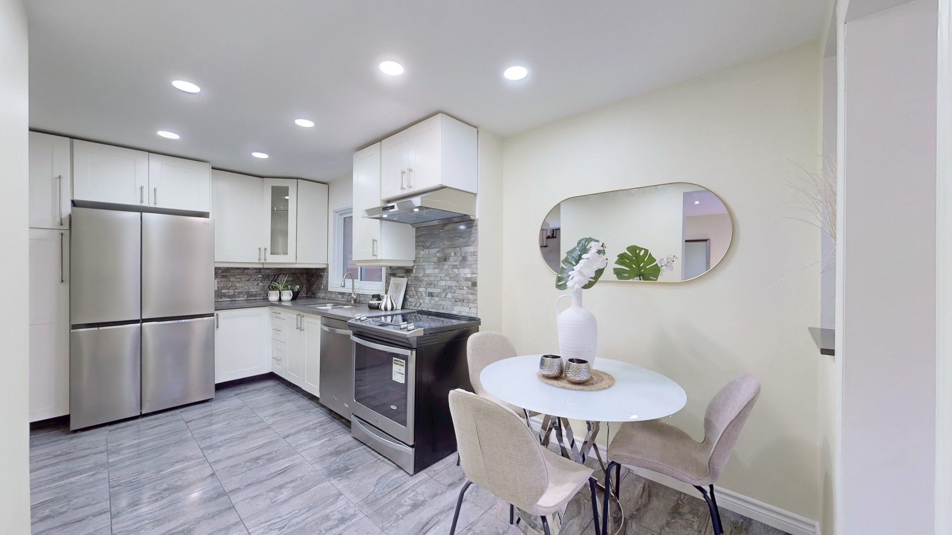 Vibrant, beautifully upgraded townhome located in the highly sought-after glen abbey community-home to one of ontario's top-ranked schools. This spacious and sophisticated home offers 3+1 bedrooms and 4 bathrooms, providing enhanced privacy with direct access to the fenced backyard. Extensively renovated with substantial upgrades throughout. The bright and spacious living room features engineered hardwood flooring, pot lights, large window with california shutters, and a walkout to deck and private backyard. The renovated eat-in kitchen boasts floor-to-ceiling white cabinetry, quartz countertops, stylish backsplash, stainless steel appliances, oversized tiles, and a split-face quartz feature wall. The oversized primary bedroom includes his and hers closets, california shutters, and a 3-piece ensuite. Two additional generously sized bedrooms are complemented by a 5-piece main bathroom with double sinks and quartz countertop. The finished basement offers a large recreation/entertainment area, fourth bedroom, full bathroom, laminate flooring, wet bar with quartz countertop, and cold storage. Recent upgrades include: heater pump (2023); windows, garage door, front entry door, kitchen, kitchen appliances, engineered hardwood floors, and refinished staircase (2016); interlock stone walkway and deck (2016); fence (2021); roof shingles (2009). A move-in-ready home offering exceptional style, space, and value in a premium glen abbey location: family-oriented community surrounded by an abundance of amenities, including highly ranked schools, major shopping, parks, trails, community centres, playgrounds, golf courses, and more. With easy access to hwy 403, qew, and the go station, this location is perfect for families, commuters, professionals, and outdoor enthusiasts. Come to see and discover the lifestyle this home and neighbourhood proudly offer.