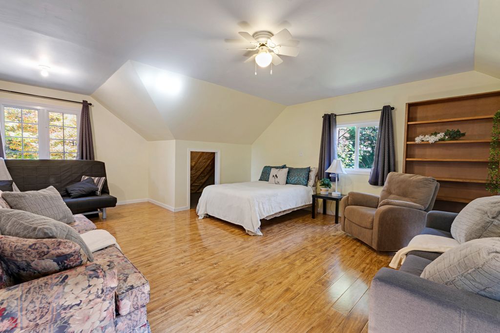 • Spacious detached garage-workshop with a finished loft for extra living space.