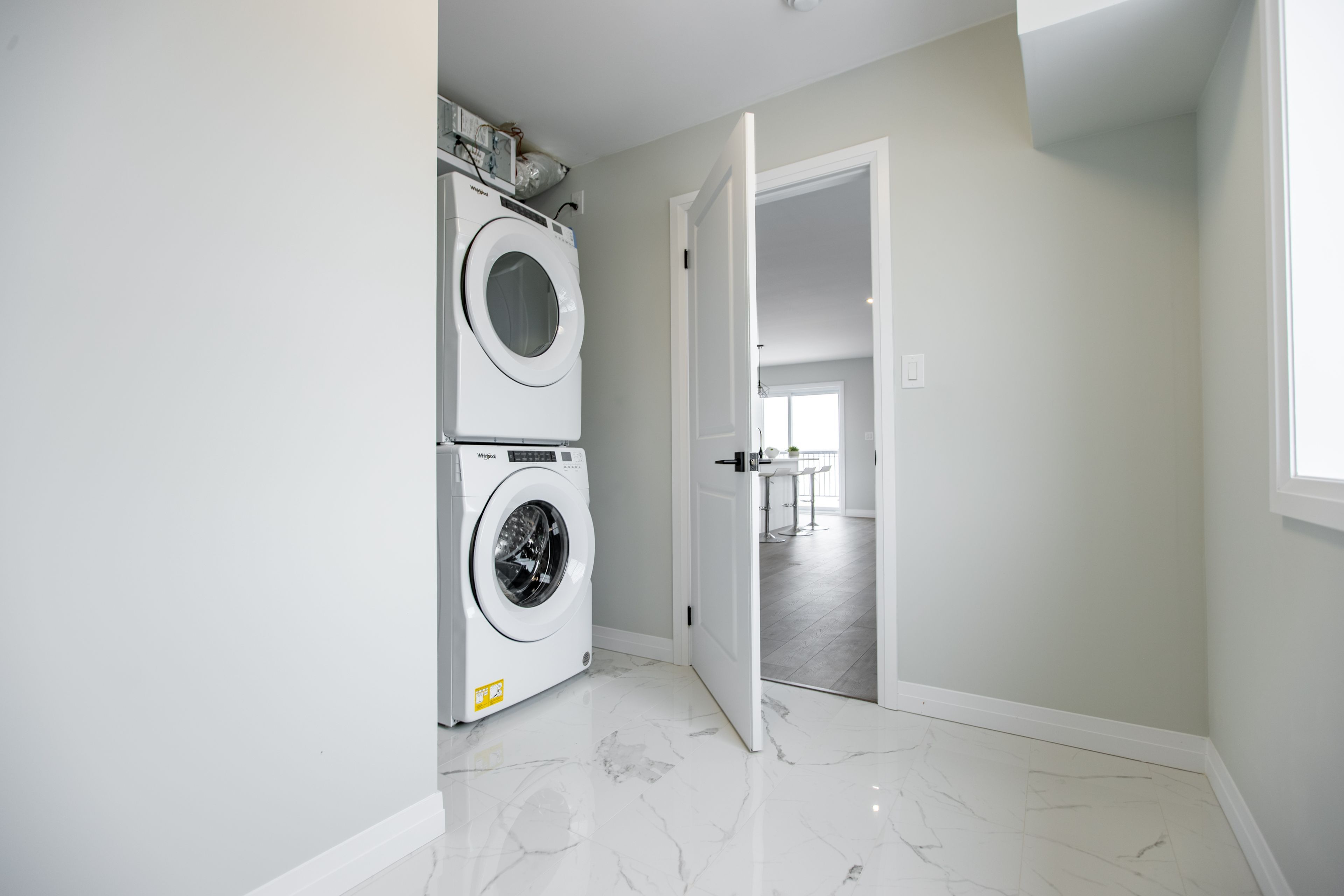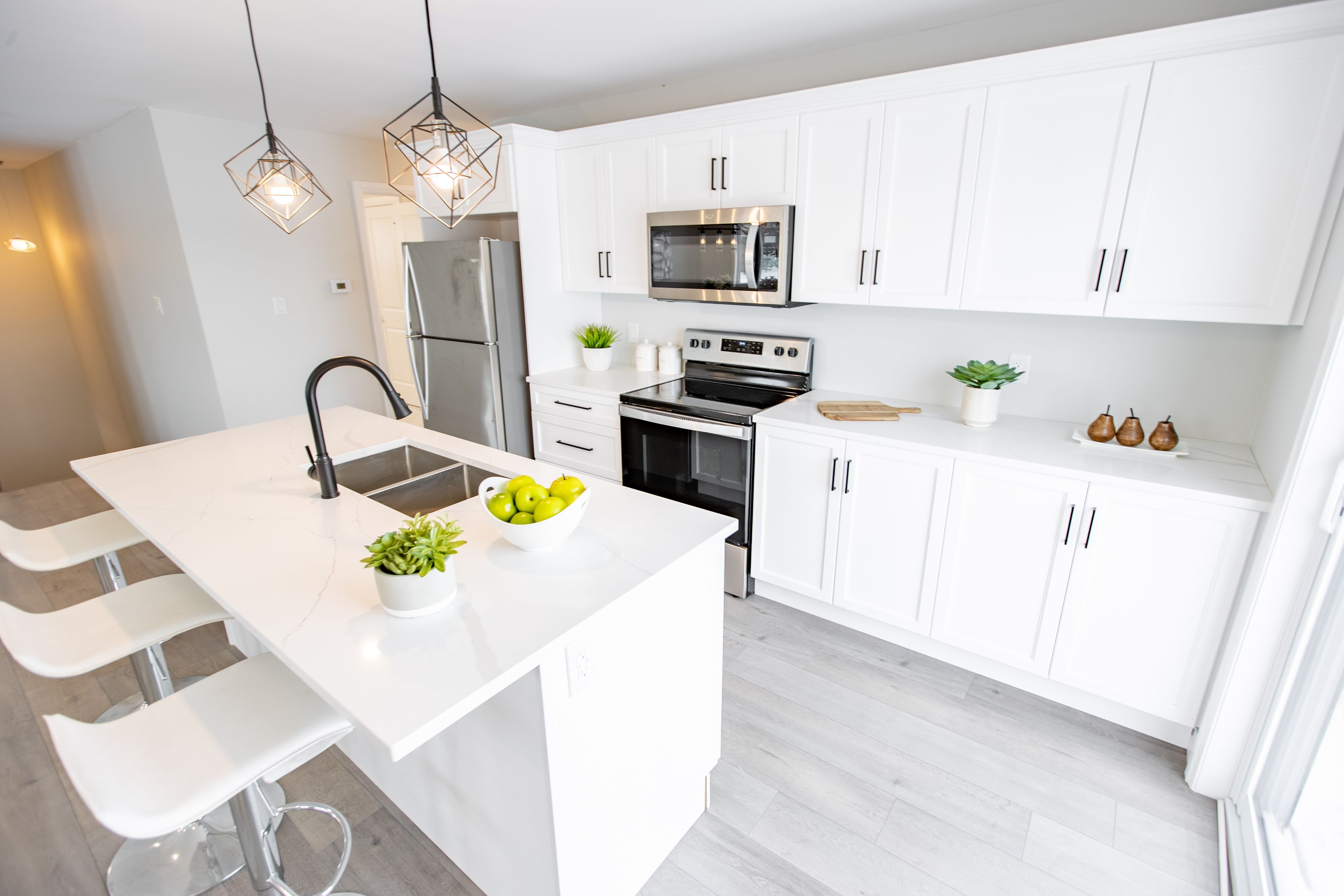 • Contemporary kitchen with sleek cabinetry for cooking enjoyment.
