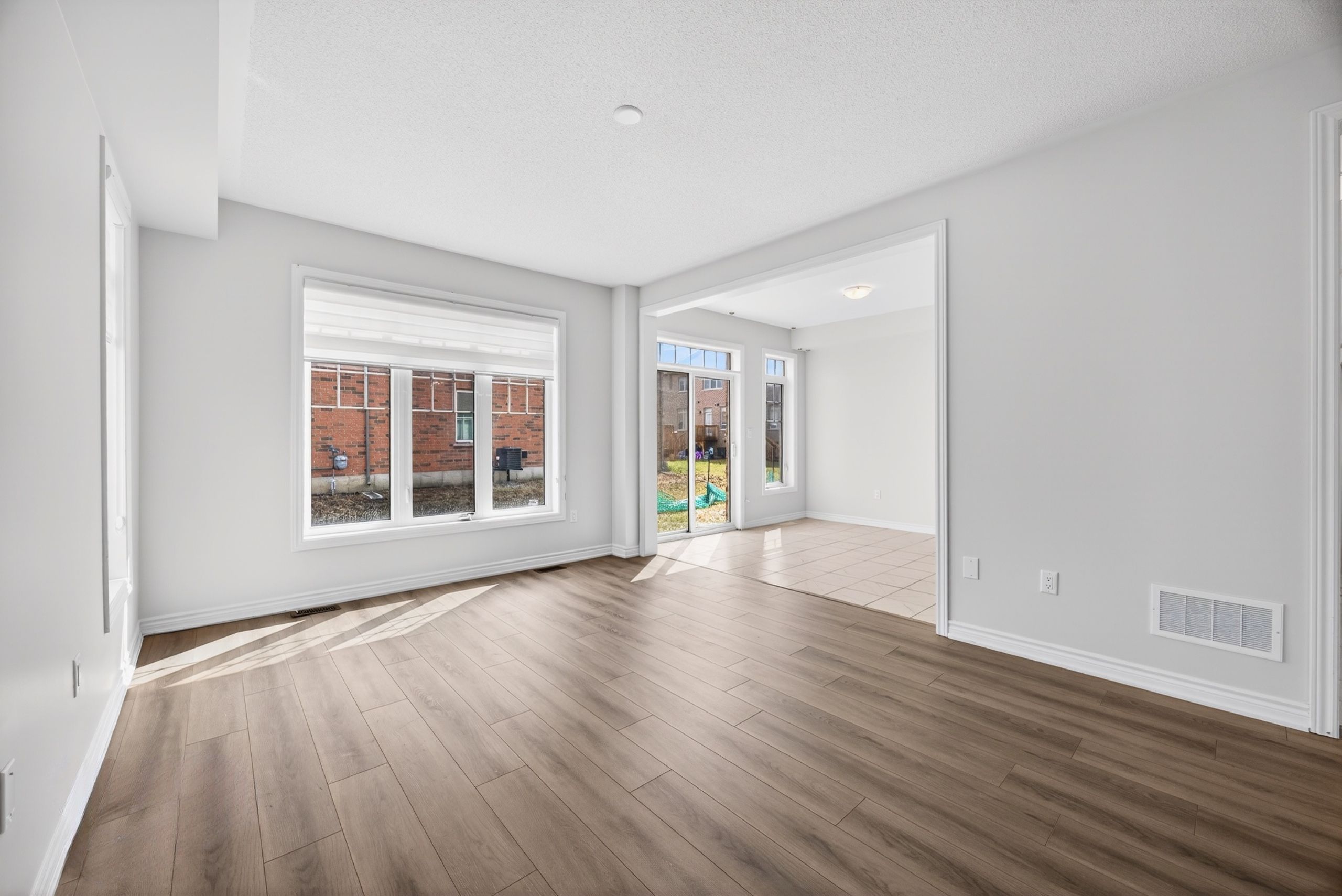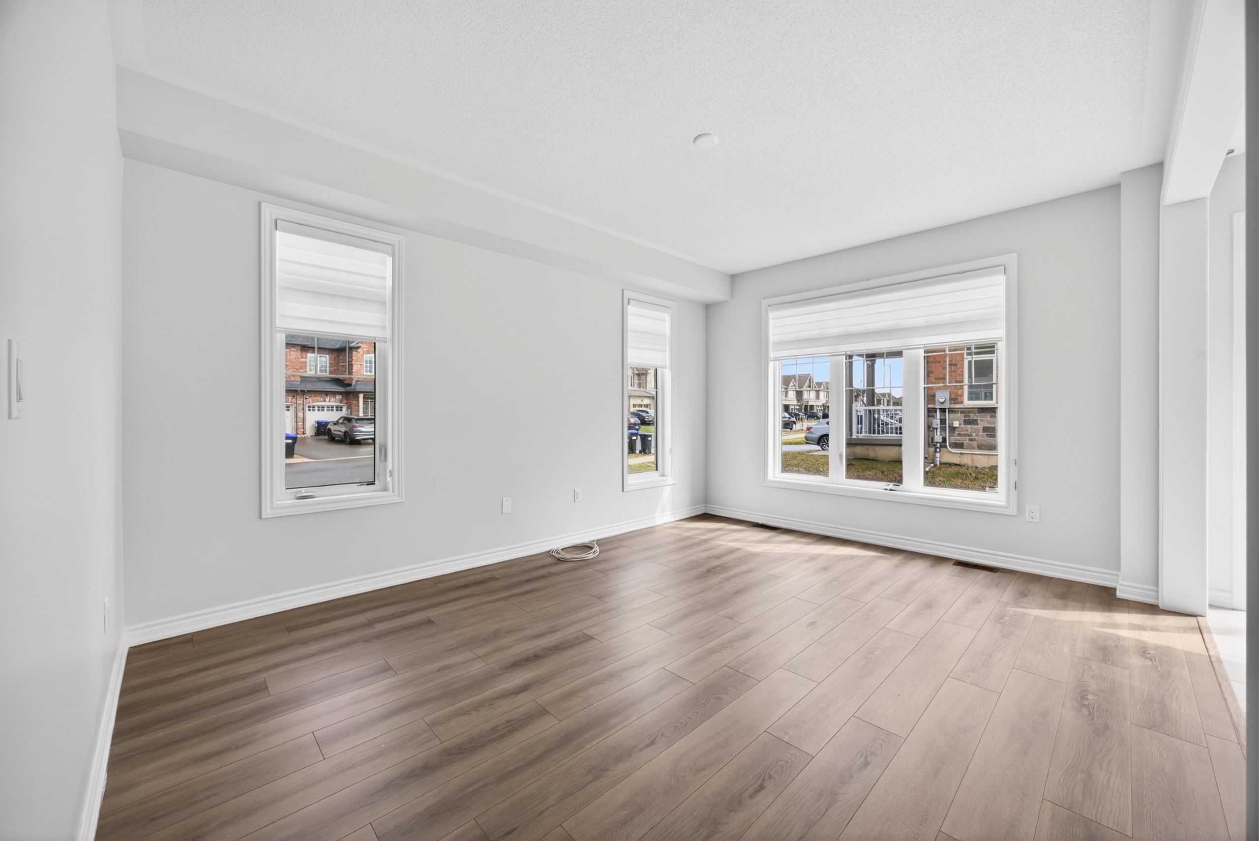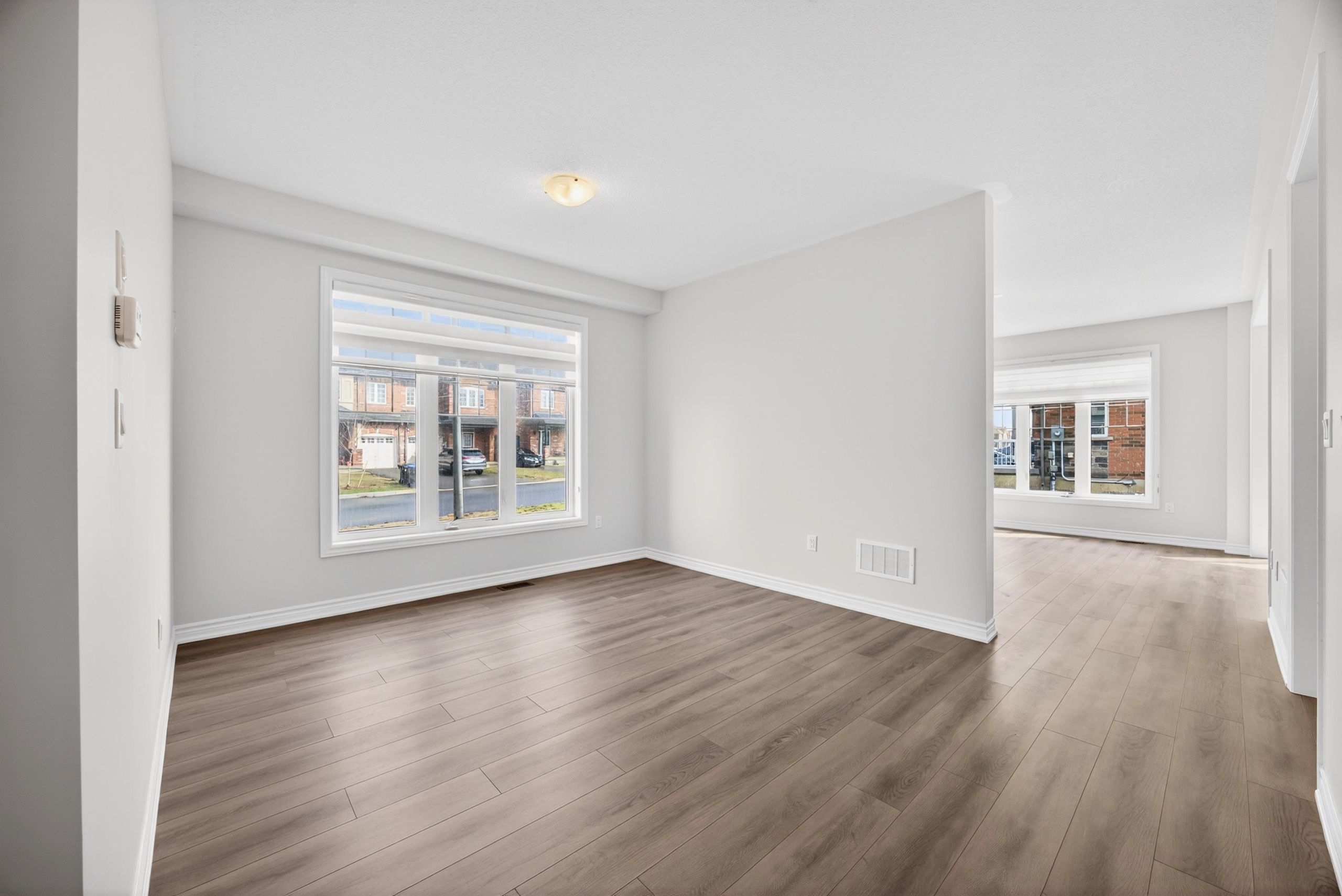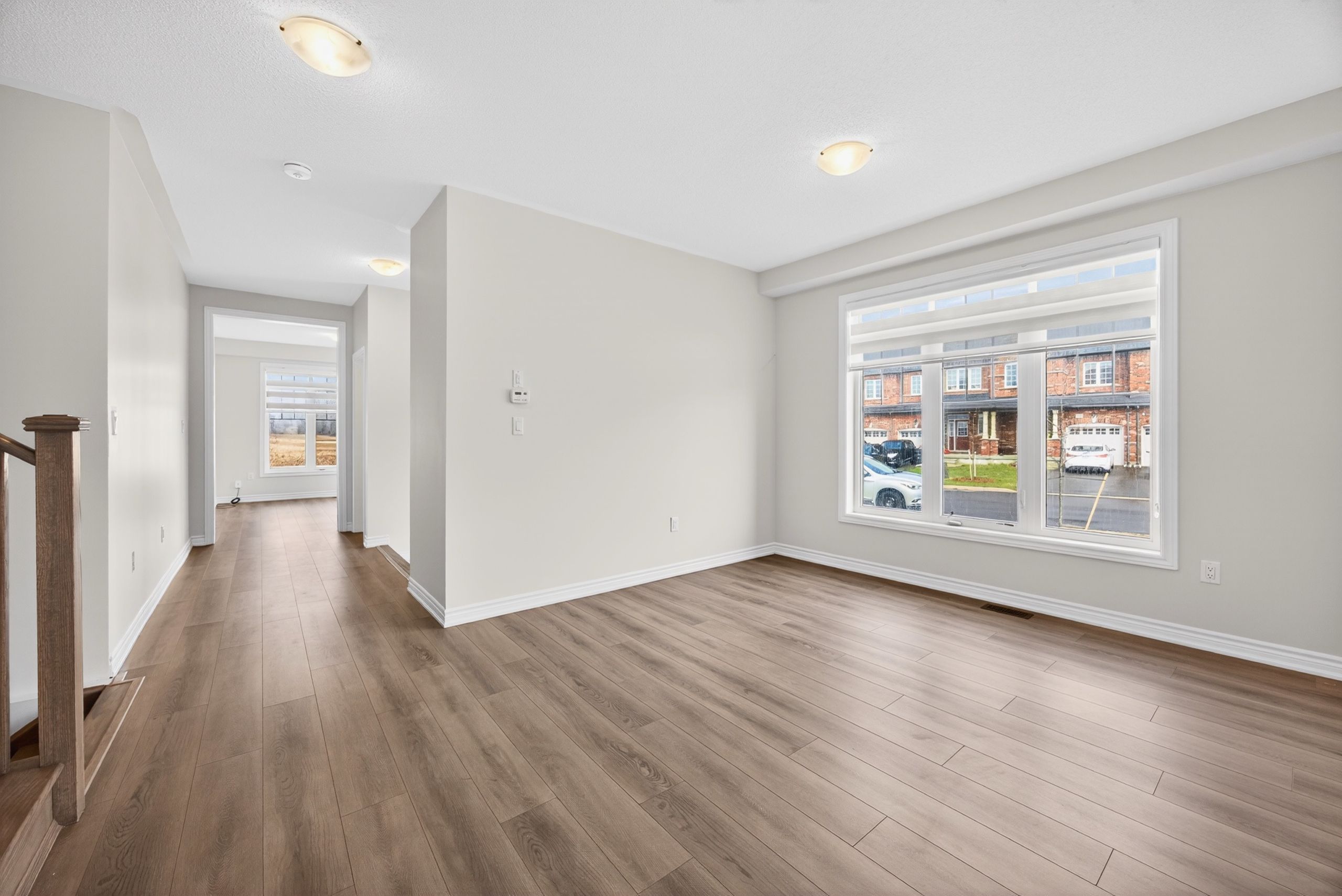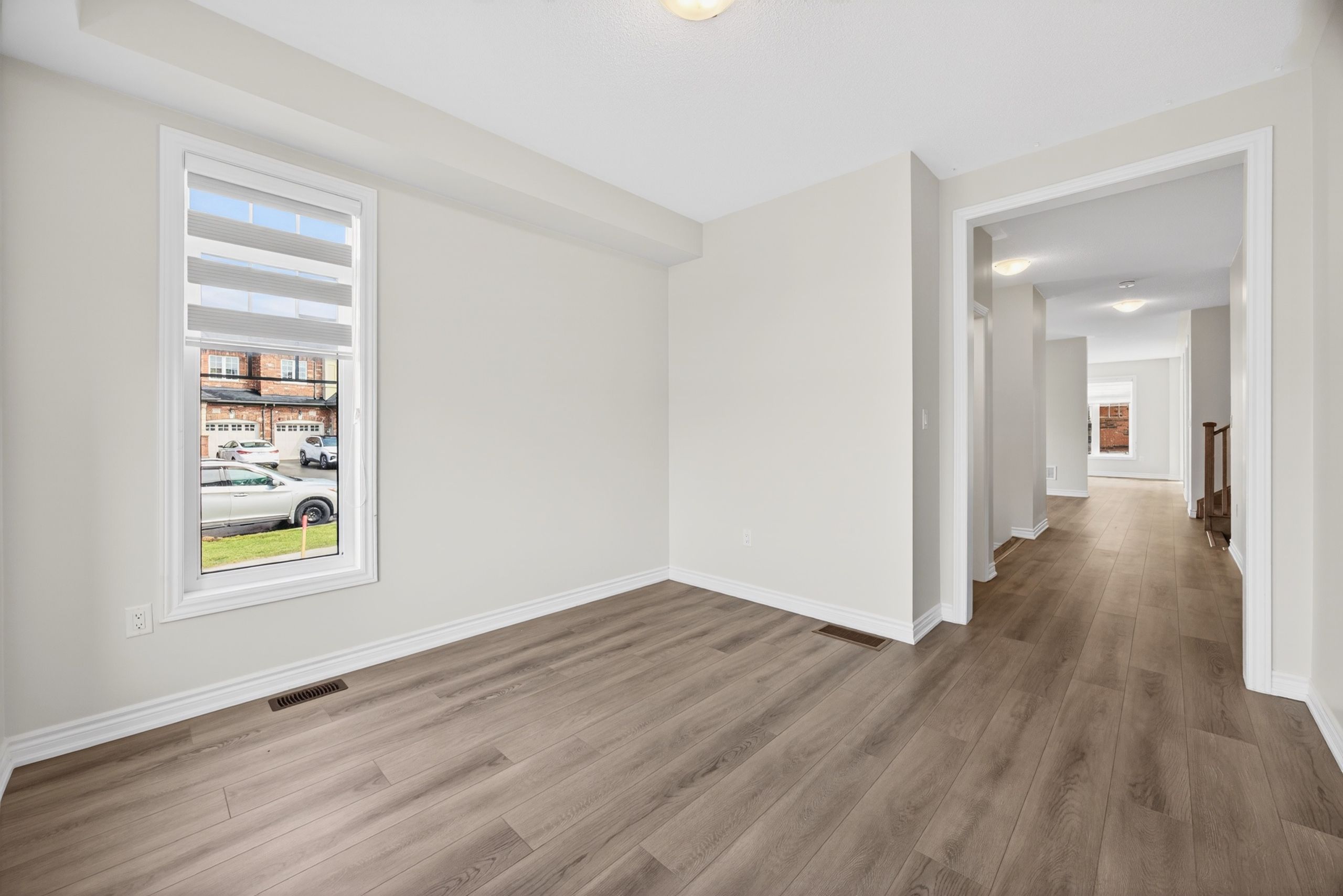 Rarely available! Welcome to this stunning 3-year-old end-unit townhouse in desirable alcona community, offering 2,453 sq ft of thoughtfully designed living space. This bright and spacious home features a unique, functional layout with abundant natural light and 9-ft ceilings throughout the main floor. Enjoy a separate home office, a large formal dining area, and an open-concept kitchen, family room, and breakfast area-perfect for modern living and entertaining. Hardwood floors throughout the main living areas add warmth and elegance, while large windows enhance the airy feel of the home. The oversized primary bedroom offers a walk-in closet and a spa-like 5-piece ensuite. Spacious secondary bedrooms provide comfort for the whole family, and the convenient second-floor laundry adds everyday ease. Located in a sought-after, family-friendly neighbourhood, enjoy a walkable lifestyle just steps to starbucks, no frills, canadian tire, restaurants, schools, and more. This nearly-new, move-in-ready home offers the perfect blend of modern comfort, style, and location.