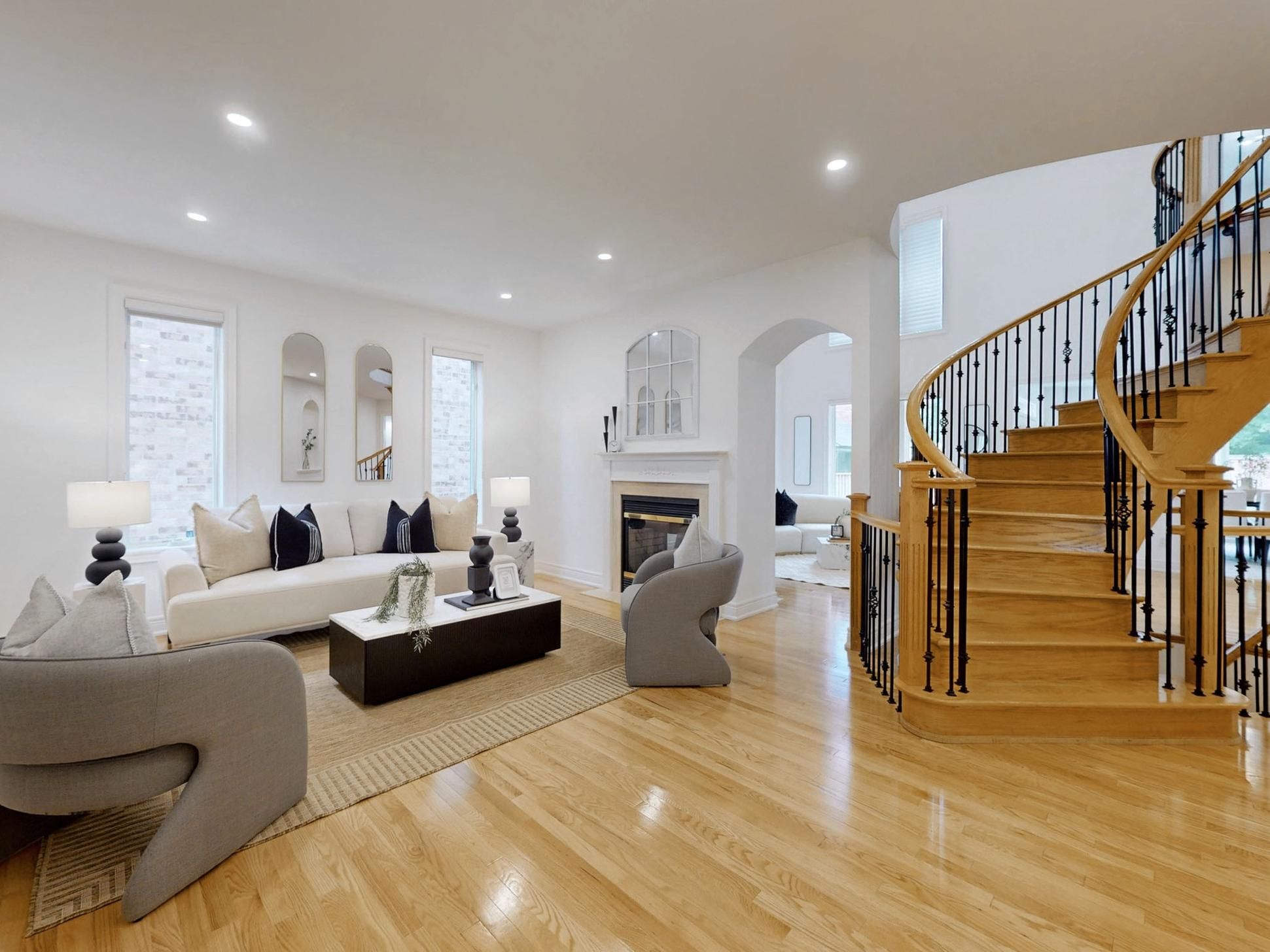 Welcome to an elegant and immaculately maintained estate home offering over 4,200 sq. Ft. Of finished living space in one of oakville's most coveted neighborhoods - "joshua creek". Designed for refined living and entertaining, this residence combines modern open-concept design, statement architecture, and high ceilings on both main and second floors, filling every space with natural light and sophistication. A grand double-height foyer with a statement curved staircase creates an immediate impression of scale and elegance. The homes flowing layout features a formal living room, an inviting family room with a two-sided gas fireplace, and a coffered-ceiling dining room ideal for gatherings. The chefs kitchen includes a bright breakfast area with a bay window, walkout to the porch and backyard, and a separate prep servery perfect for entertaining or additional storage and meal prep. A private main floor office/library provides versatility for work or study. Thoughtful touches include a powder room, laundry/mudroom, generous storage, and a secondary staircase leading to the unfinished basement, offering potential for a future in-law or secondary suite. Upstairs, the primary suite offers a spa-inspired en-suite and dual walk-in closets, while three generous bedrooms include a semi-en-suite and a private en-suite with a charming window bench. Close to top-rated schools (joshua creek public & iroquois ridge secondary), parks, trails, golf clubs, shopping, highways, and transit, this home delivers the perfect blend of luxury, light, and livability in a truly exceptional setting. Book your private showing today and experience refined living in joshua creek.