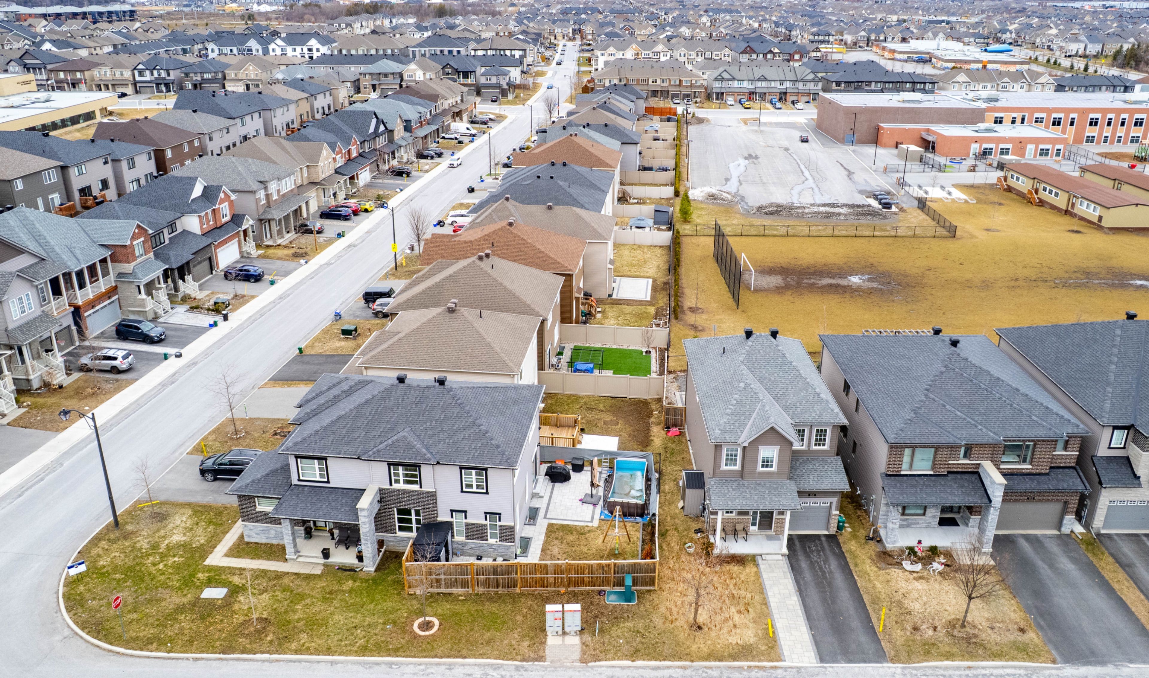Ideally situated on a 40-foot premium corner lot in the heart of barrhaven's half moon bay, this minto-built "jasper" model offers a refined blend of modern design and practical family living. With approximately 2,970 sq. Ft. Of finished living space, the home provides notable curb appeal with a facade of dark brick and stone veneer accents. The spacious foyer leads to an open layout featuring hardwood floors that extend throughout both the main and second levels, providing a consistent, carpet-free environment. The kitchen serves as a central hub, equipped with granite countertops, a custom backsplash, and a suite of stainless steel appliances-all less than a year old-including a gas stove. A built-in desk provides a versatile workspace for daily organization. This area transitions naturally into the living and dining spaces, which look out upon a professionally landscaped, fully fenced backyard. This outdoor retreat features an above-ground pool, perfect for summer entertaining. The upper level is designed for privacy, centered around a generous primary suite with a walk-in closet and an updated 4-piece ensuite. Three additional bedrooms provide ample space, two of which include their own walk-in closets. All bathrooms have been updated with modern finishes for a clean, consistent aesthetic. A second-floor laundry room adds to the home's functional flow. The finished lower level offers a large recreation room with insulated flooring and high ceilings, suitable for a home gym or guest area, supported by a full fourth bathroom. The location is a significant advantage: a 5-10 minute walk to wazoson public school and a 20-minute walk to the minto recreation complex. Nearby amenities include the new food basics and pharmacy on cambrian road, plus easy access to river mist, guinness, black raven, and lamprey parks. This home offers a balanced lifestyle in a premier family community.
