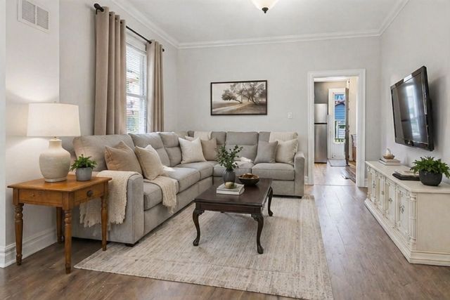 • Three bedrooms with large living and dining room combo.