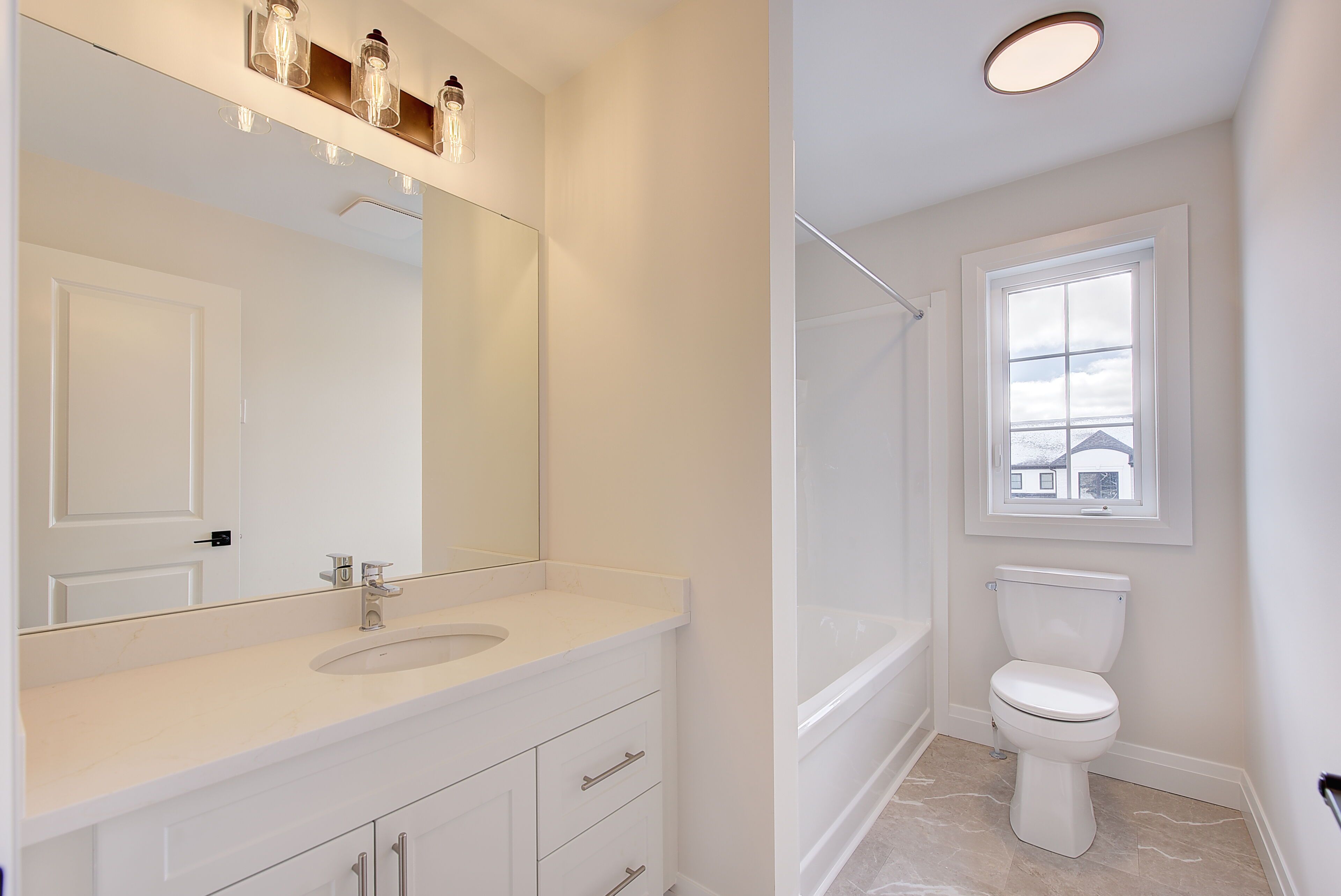 Welcome home to the brand new sheffield ii model by richfield custom homes, located in the desirable clear skies neighbourhood. This thoughtfully designed 3-bedroom, 2. 5-bathroom home offers 1,466 square feet of modern living space, combining functionality, style, and comfort. Perfect for families or first-time buyers. Step inside to an open-concept main floor featuring 9-foot ceilings and a spacious layout that seamlessly connects the kitchen, dining, and living areas, ideal for entertaining or relaxing at home. The kitchen offers ample cabinetry and elegant stone countertops, blending design and practicality. Upstairs, you'll find three generously sized bedrooms, including a primary suite with an ensuite bathroom and walk-in closet. A convenient second-floor laundry and full main bathroom complete the upper level. Featuring a two-car garage, efficient use of space, and timeless architectural design, this is one you won't want to miss! Purchase price reflects the new government hst rebate, subject to buyer qualification.