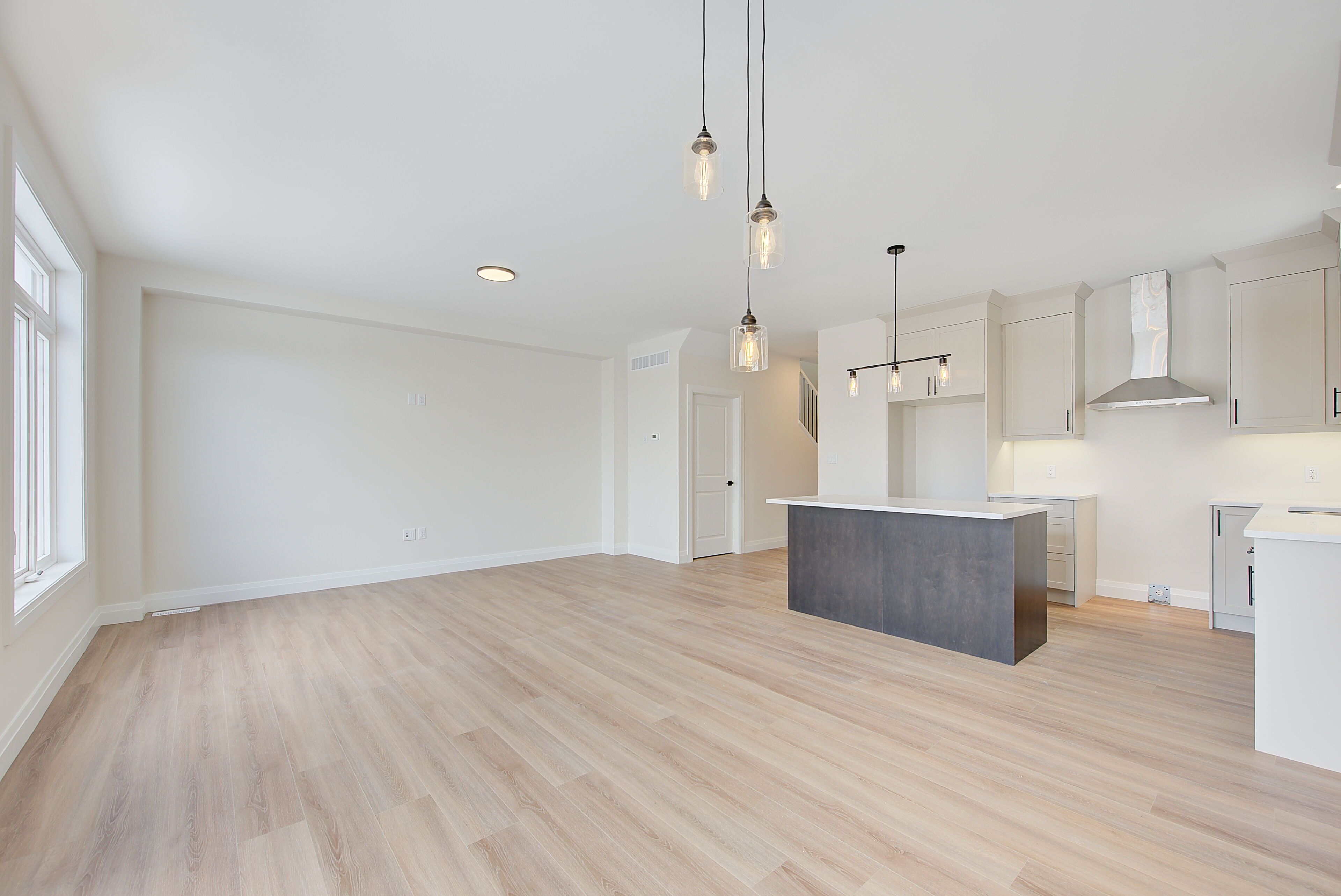 • Open-concept main floor with 9-foot ceilings for spacious living.