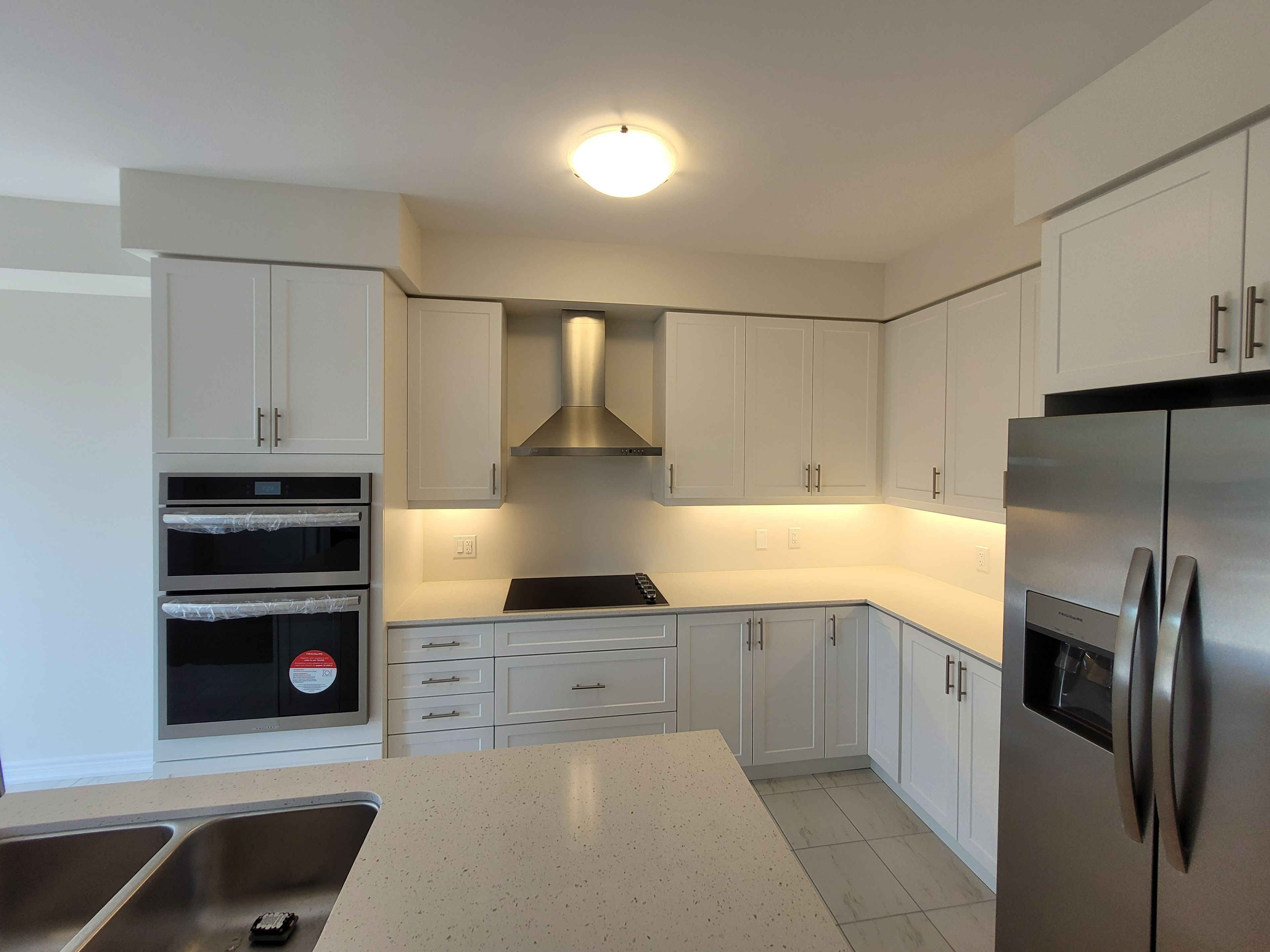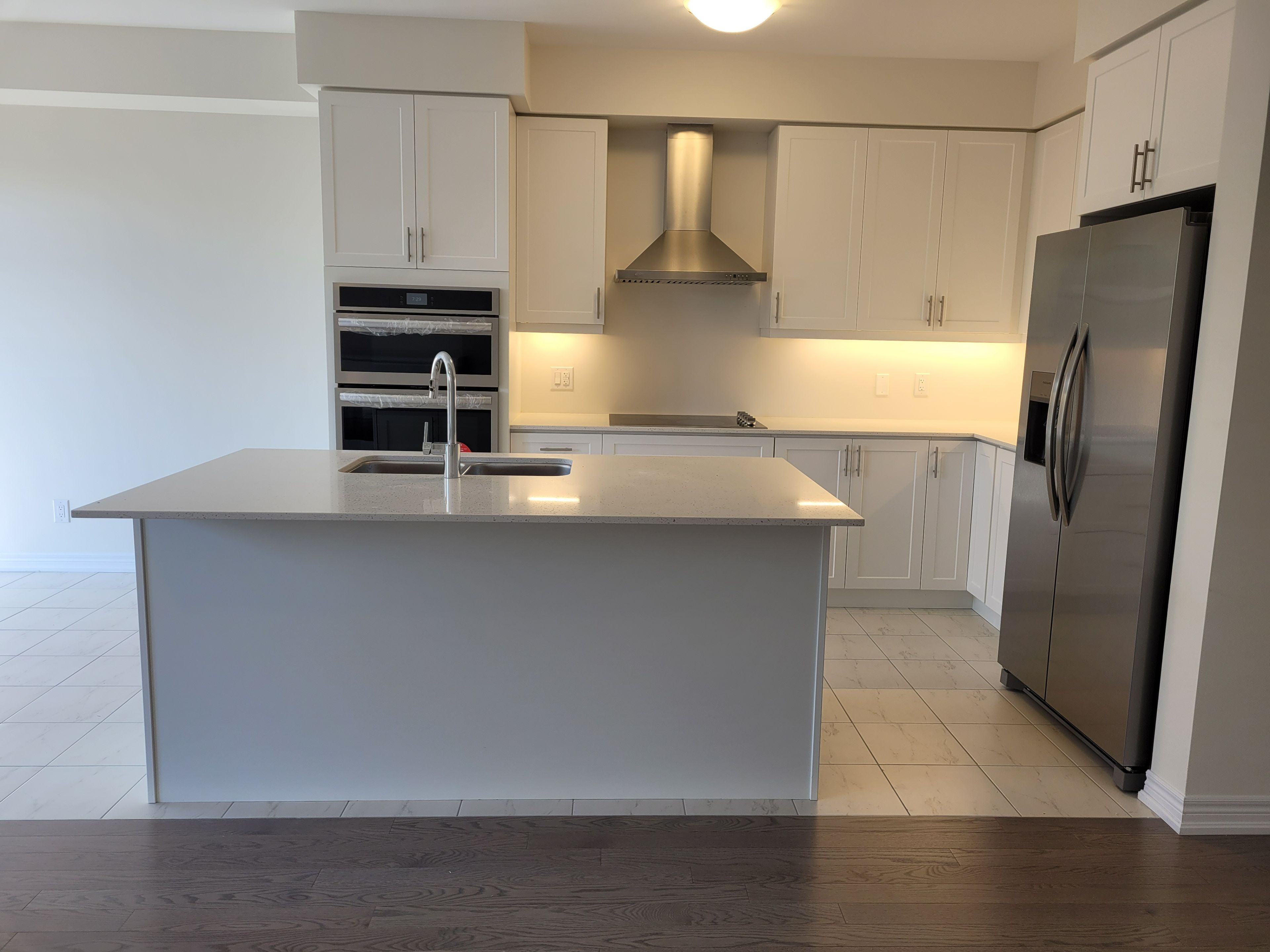 Rarely available and less than two years old, this fully upgraded townhouse offers 2,263 sq. Ft. Of beautifully finished living space, including a professionally completed basement, in the highly desirable wallaceton community of kitchener. The spacious great room features large windows and a sleek electric fireplace, creating a bright and welcoming atmosphere, while a sliding patio door opens to a charming backyard-perfect for morning coffee or evening relaxation. The gourmet kitchen is thoughtfully designed with quartz countertops and matching backsplash, a center island with seating, soft-close cabinetry, and stainless steel appliances including a gas cooktop, built-in oven, and microwave. Upstairs, the primary bedroom serves as a private retreat with a luxurious 5-piece ensuite and a generous walk-in closet. With 9 ft. Ceilings on both the main floor and basement, the home feels open and airy throughout. Offering 3+1 bedrooms and 3. 5 bathrooms, this home is ideal for families or professionals, and is complete with second-floor laundry, direct garage access, and close proximity to new parks, top-rated schools, and a state-of-the-art recreation center.