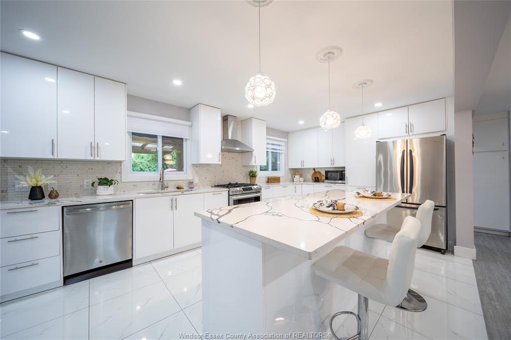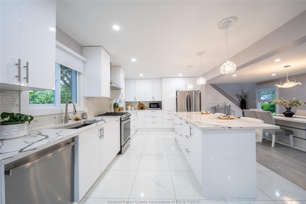 *vtb available* welcome to lakeshore, your perfect home! This exquisite 2-story residence combines modern design, comfort, and natural beauty. Featuring 5 bedrooms, including a spacious primary suite with a walk-in closet and luxurious ensuite, this house was fully renovated in 2022. Updates include a bright kitchen with a large eating island, stunning granite, and subway tile backsplash, as well as stylish porcelain-tiled bathrooms. With new flooring, trims, paint, windows, doors, plumbing, electrical, and led pot lights throughout, this home is move-in ready. The open concept design connects your living space to a family room with a stone fireplace and a backyard oasis with an inground pool, sun deck, and lush greenery. Curb appeal abounds with a garage, new sod, and a cement driveway. Custom designed for today's savvy buyers, don't miss out on this showstopper. Contact us now to make this place yours!