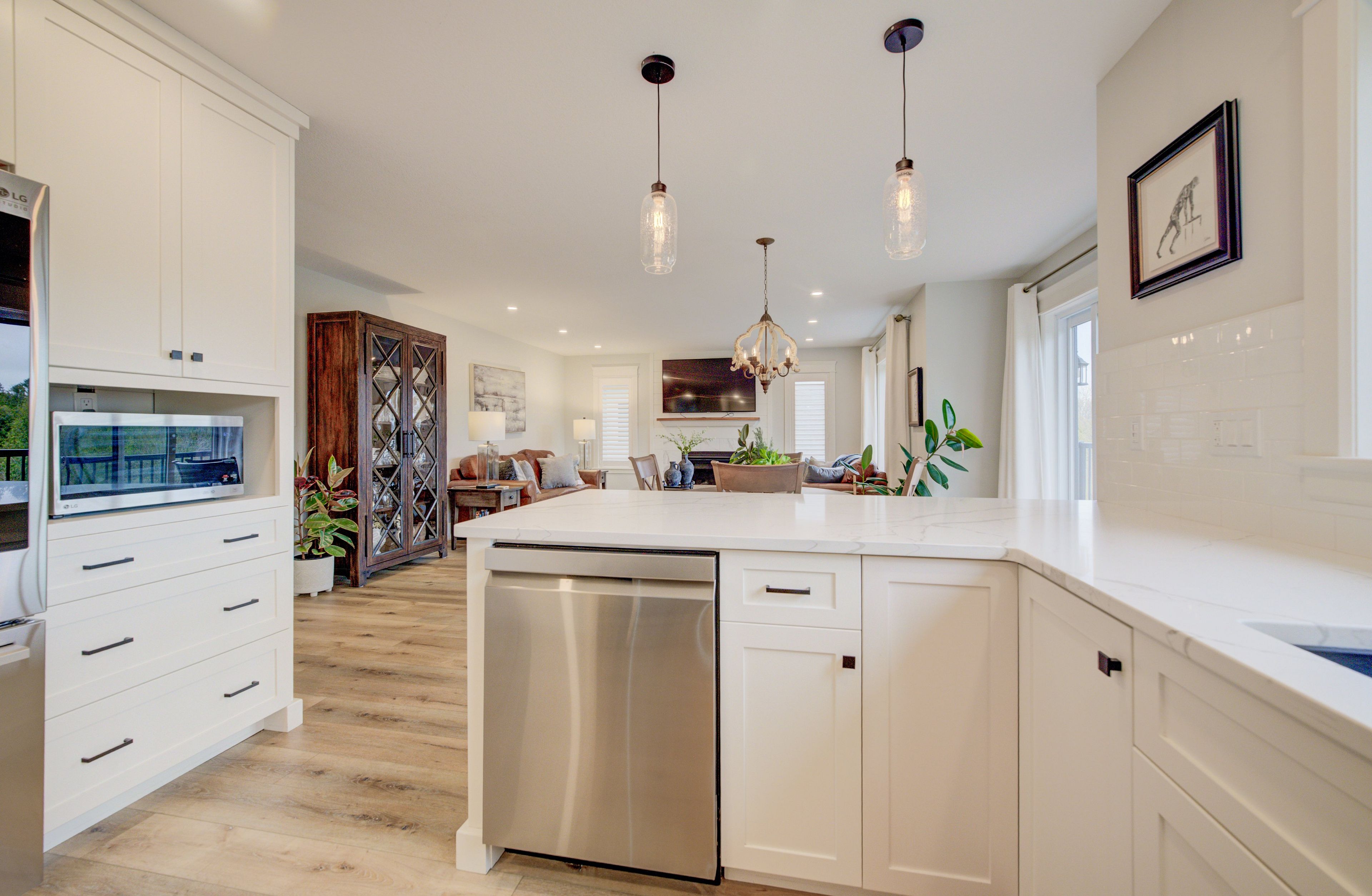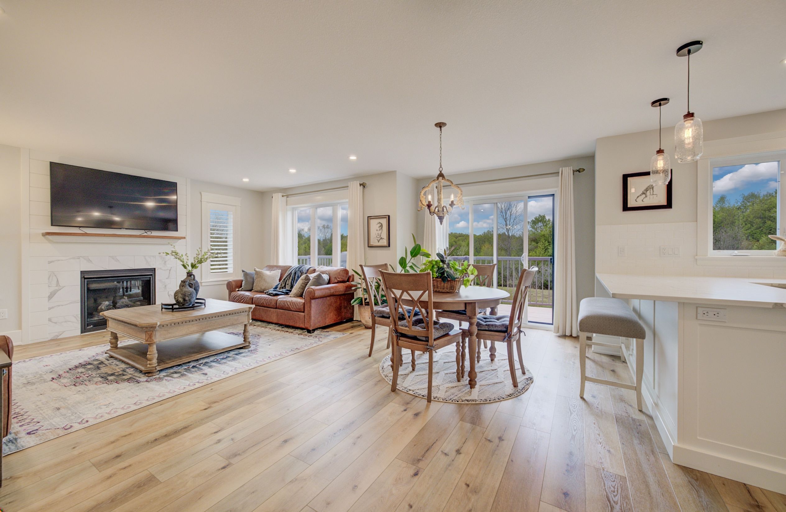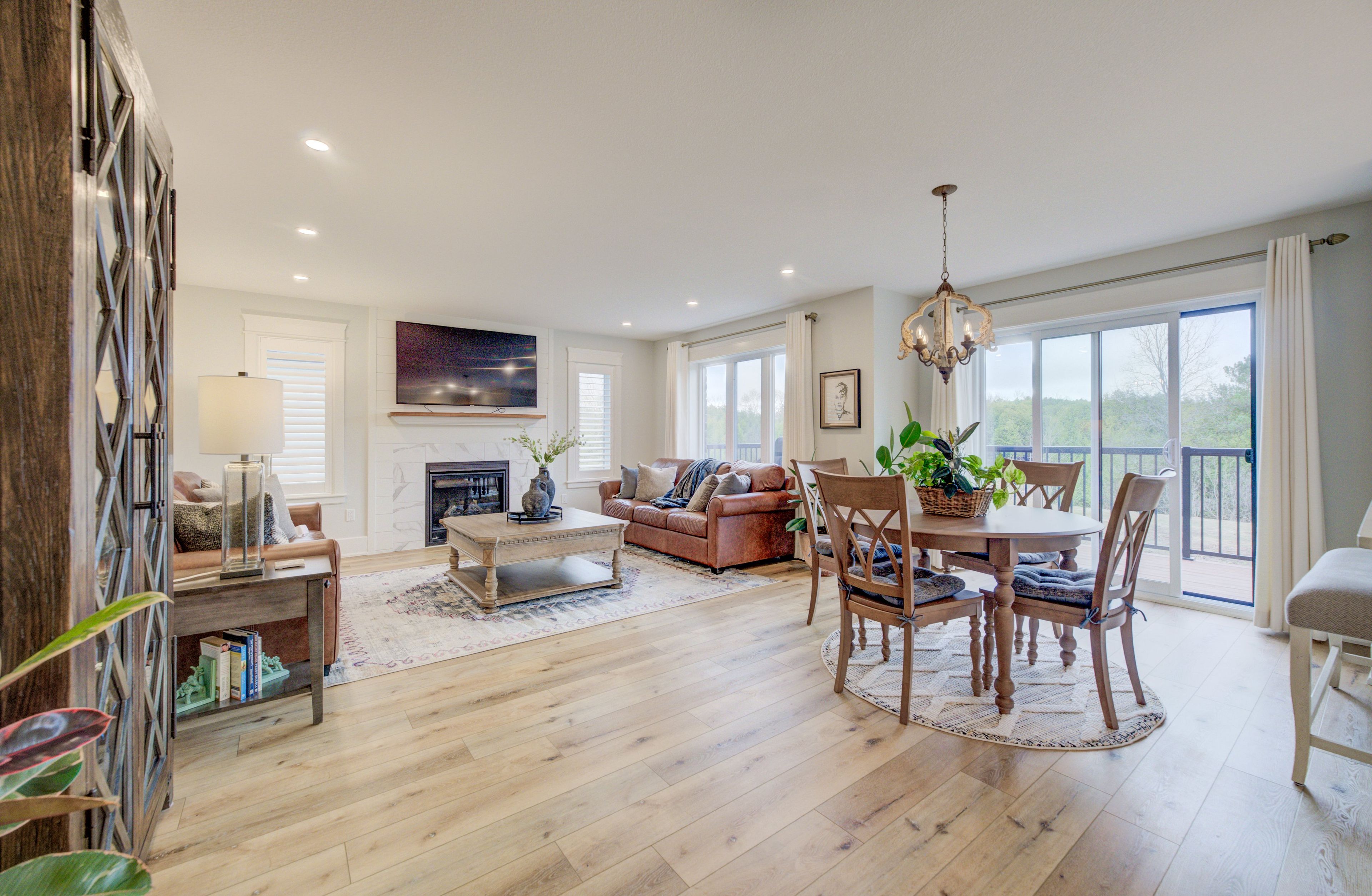 • Bright, open-concept main floor with a cozy gas fireplace.