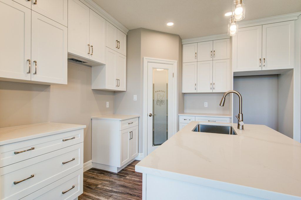 • Modern kitchen features a walk-in pantry and island for extra storage.
