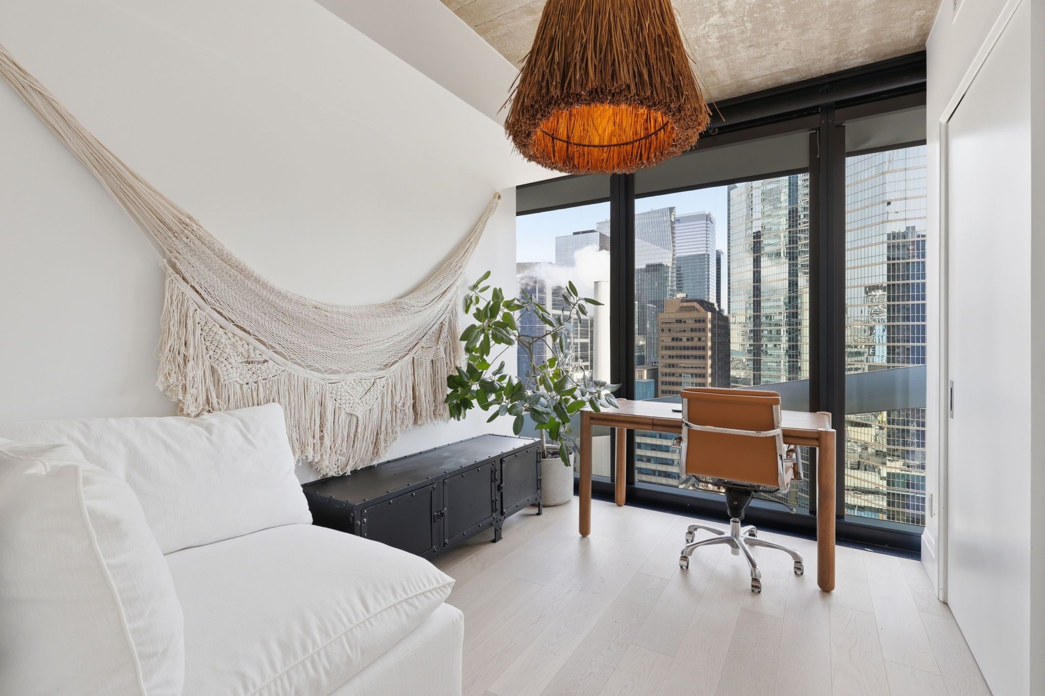 Elevated beyond the standard of downtown living, this residence is a clear statement of status, thoughtful design, and lifestyle. Experience iconic downtown living at theatre park condos, perfectly positioned in the heart of toronto's entertainment district. Wake up to sweeping southeast views over roy thomson hall and david pecaut square, with the city's most celebrated venues: royal alexandra theatre, princess of wales theatre, and tiff bell lightbox, right outside your door. Inside, modern design takes centre stage in this nearly 1000 sq ft unit. Exposed concrete, hardwood floors, floor to ceiling windows, and sleek finishes throughout. The kitchen stands out with stainless steel appliances and a rare gas stove, perfect for those who actually cook. Step onto your balcony, fire up the bbq, and take in the skyline. This unit has been thoughtfully renovated throughout, incuding the kitchen, bathrooms, floors, and electronic blinds throughout. Enjoy resort style amenities including an outdoor pool, fitness centre, party room, and 24-hour concierge. Steps to the path, st. Andrew station, top dining, and the financial district, this is downtown living without compromise. Includes premium appliances, all lighting, and window coverings, plus 1 parking space and 1 locker. All furniture is included for your convenience.