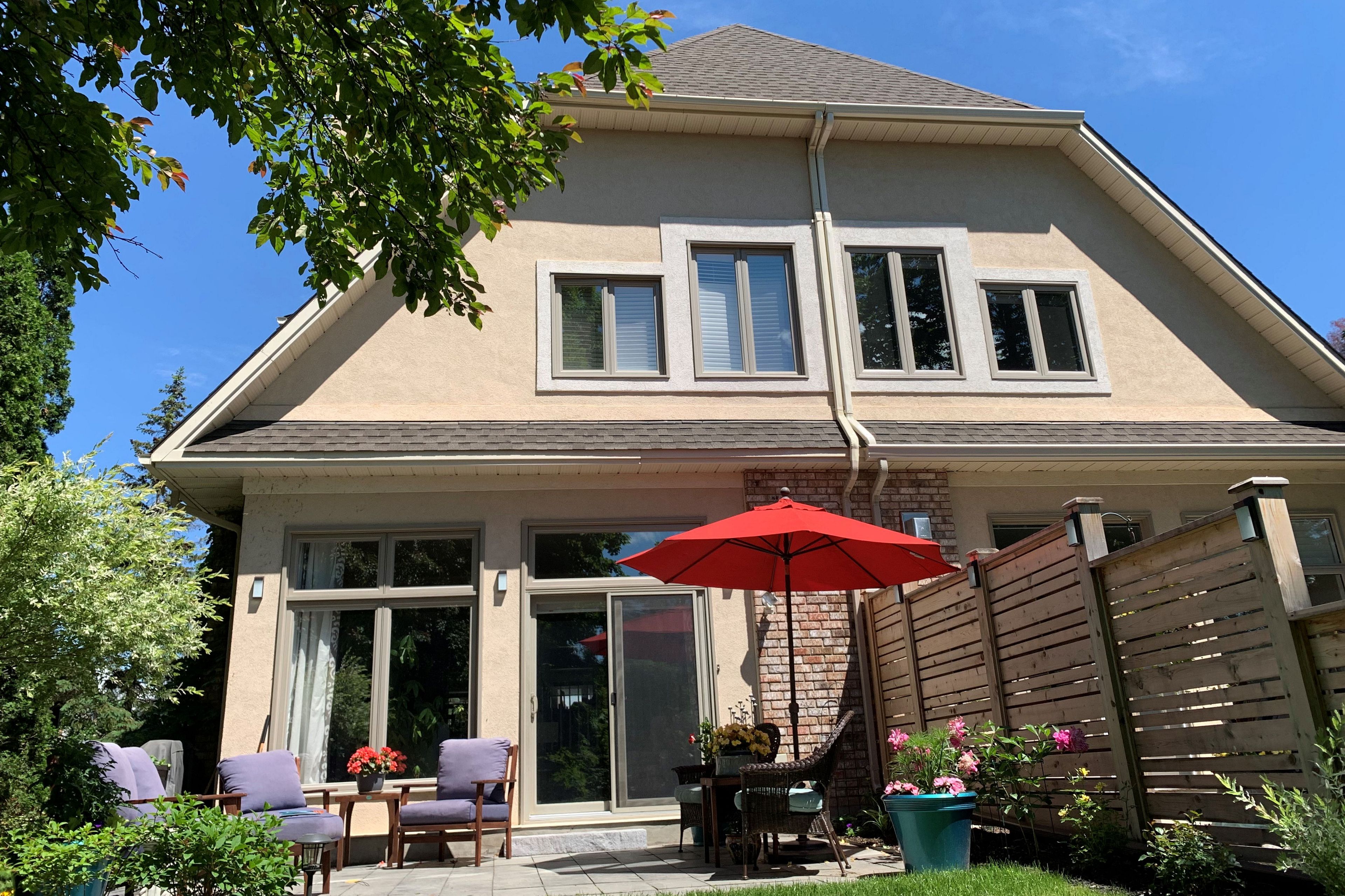 Outstanding semi-detached home in kanata lakes with tremendous space, unique architectural design & high quality finishes. Approx. 2,645 sq. Ft above grade, with 3 bedrooms & 3 baths. Front door with inset & transom windows bring natural light into the marble tiled foyer. Expansive living room with high ceilings, brazilian cherry flooring, gas fireplace & recessed lighting. Wonderful windows have fantastic views of the deep backyard with southern explosure, patio, beautiful perennial gardens & forest plus no rear neighbors. Dining room overlooks the living room & has an updated chandelier & recessing lighting. Gourmet kitchen has many refaced cabinets & drawers, updated hardware, quartz counters, tile backsplash, updated sink & faucet, 2 wall ovens & updated stovetop. Cozy eating area is great for light meals. Brazilian cherry flooring runs throughout the kitchen & adjoining family room. Gas fireplace, built in shelving & tall windows are attractive. Powder room with pedestal sink & updated mirror is off the main hall. Staircase leads you to the 2nd level hall that has skylight for natural light. Primary bedroom has tall ceilings, room for a king size bed & dressers. 2 double windows with shutters provide pretty views of the backyard. A large walk-in closet & spa-like ensuite bath are wonderful features. Ensuite bath has tile flooring, vanity with sink & mirror, free standing tub, double glass shower & modern wall tile & moulding. 2 more good-sized bedrooms each have overhead lights, double closets & big windows. Main bath was fully renovated & has a tub/shower combined with tile surround, quartz counter on the vanity & an updated mirror & light fixture. Handy laundry room & linen closet are close by. Lower level has room for an office space along with a double closet & entry to the double car garage. There is also a separate room that could be finished as a rec room. Parks, top schools, shops, are all close by & easy access to 417. 24 hours irrevocable on offers.