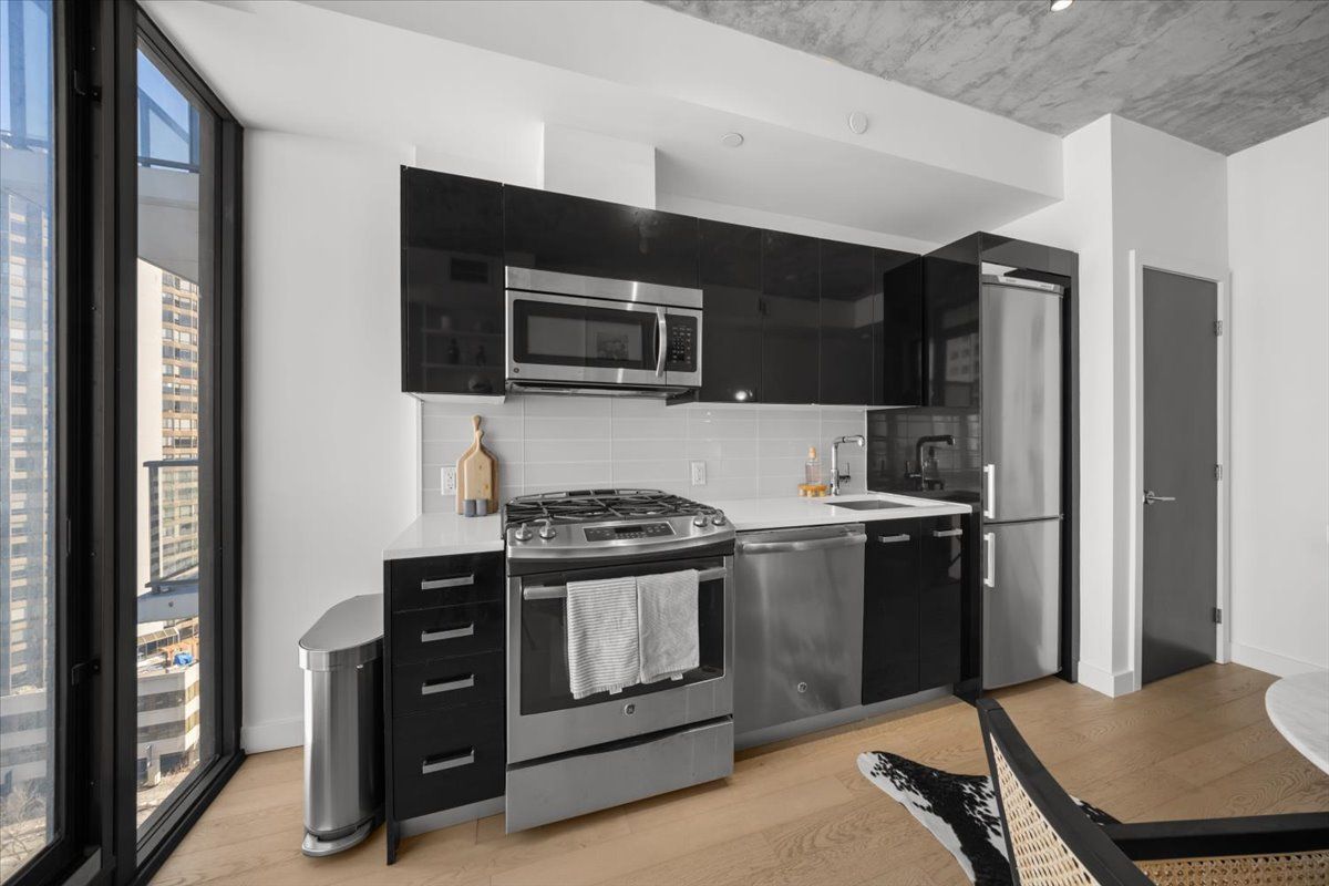 Experience modern urban living at its finest in the heart of ottawa's vibrant centretown at gotham, a striking 17 storey architectural landmark. This stylish junior one bedroom offers a perfect blend of contemporary design and functionality, featuring rich hardwood floors, exposed concrete ceilings, and floor to ceiling windows that fill the space with natural light. The sleek kitchen is thoughtfully designed with quartz countertops, stainless steel appliances, a gas stove, and modern cabinetry, making it both beautiful and practical. Step out onto your private balcony with a natural gas hookup, perfect for effortless outdoor cooking and relaxing evenings. Tenants enjoy the convenience of only paying for hydro, along with access to premium building amenities including concierge service, secure entry with key fob access, surveillance, bicycle storage, and a beautifully appointed party room complete with a full kitchen, dining area, terrace, and lounge space ideal for entertaining. Ideally located, you are just steps from the lrt, parliament, parks, grocery stores, cafés, and some of ottawa's best restaurants and nightlife. With a walk score of 95, everything you need is right at your doorstep. A fantastic opportunity to enjoy stylish, low maintenance living in one of the city's most desirable communities. Book your private showing today.