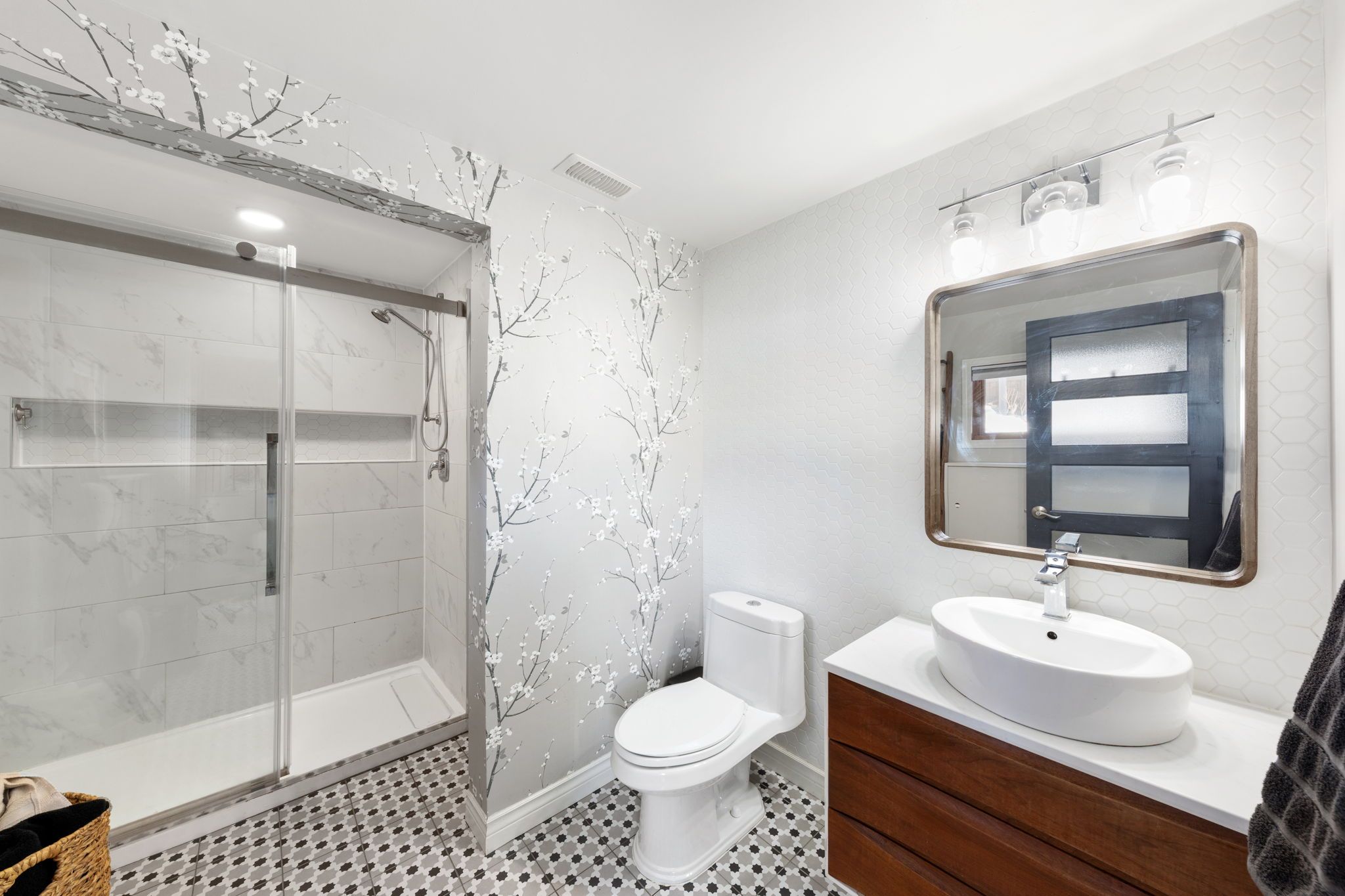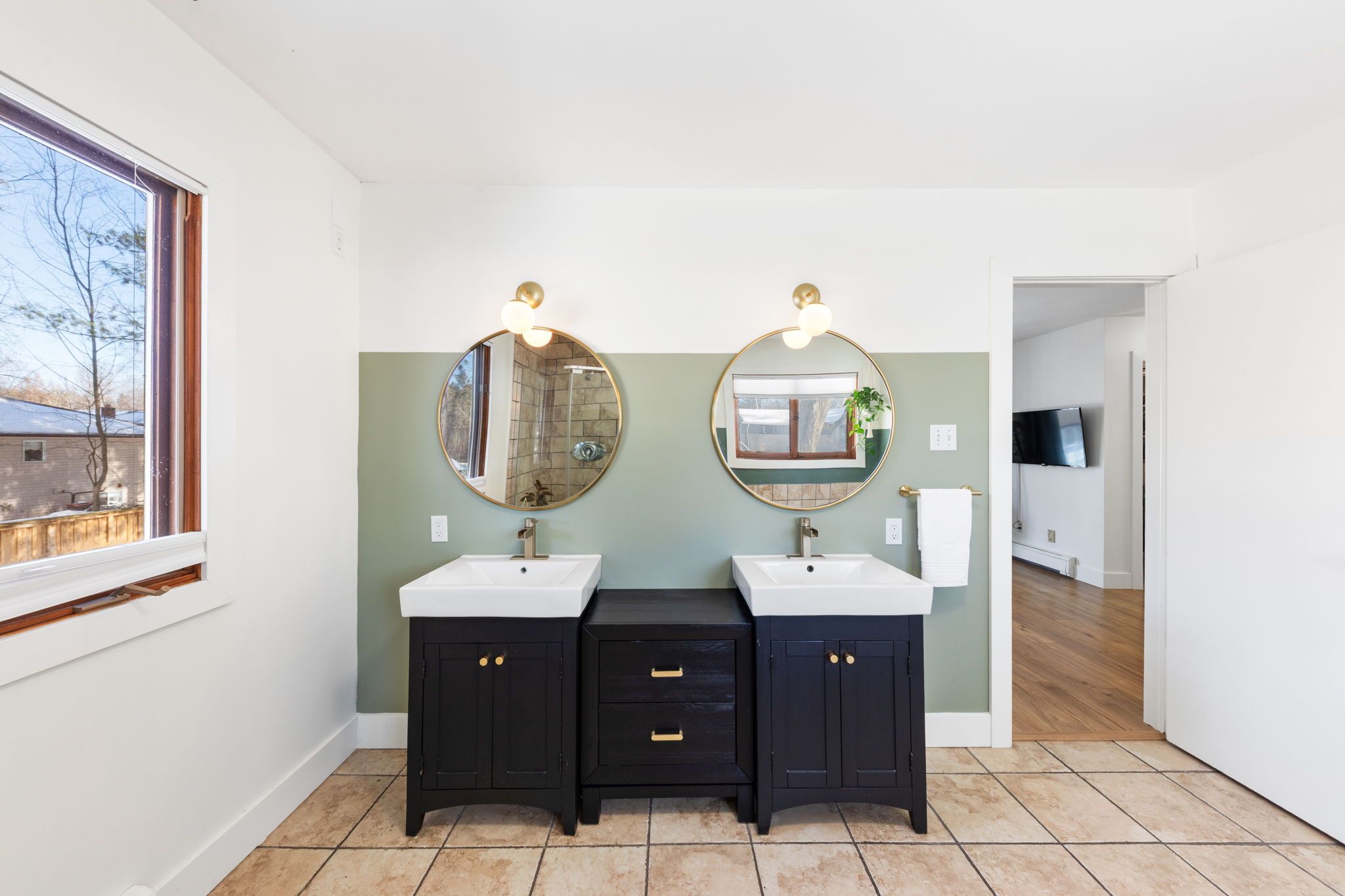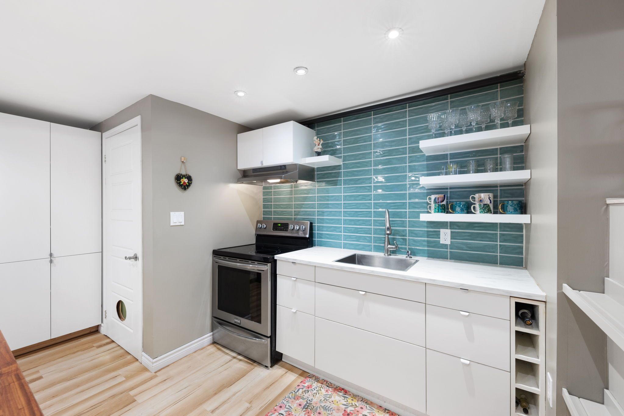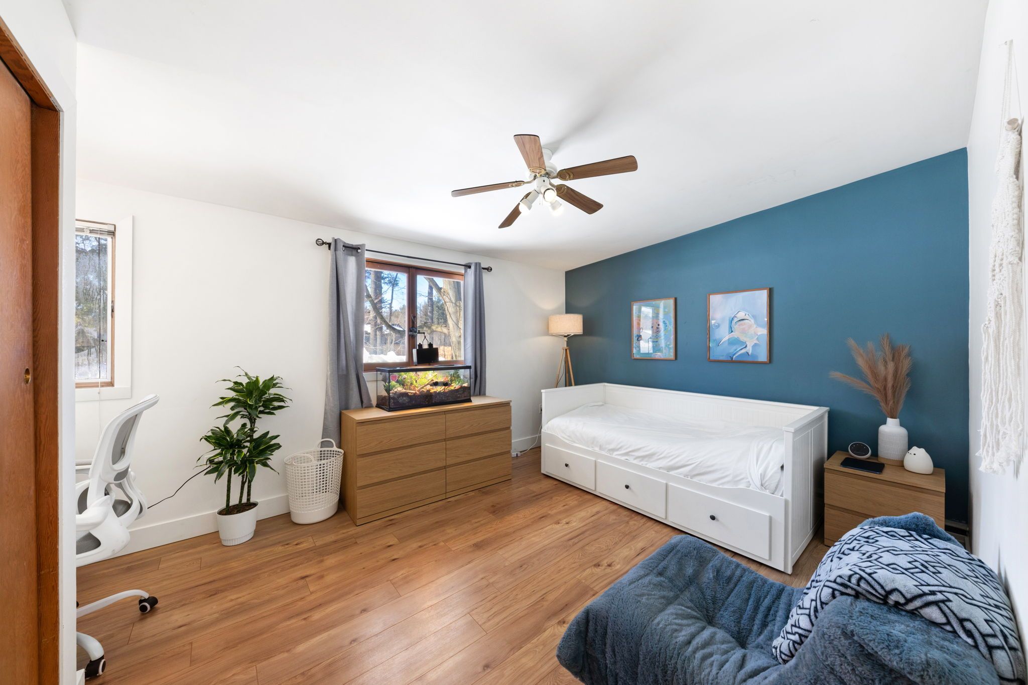 Modern mid-century multi-generational home located on a desirable quiet street in the charming town of stayner, set on a large fully fenced lot. A covered breezeway connects the home to the heated two-car garage, offering sheltered access year-round. Inside, a spacious entryway welcomes you into a stunning dining room featuring a dramatic floor-to-ceiling stone wood-burning fireplace, original exposed wood ceiling beams, and a walkout to the backyard. The bright living room is filled with natural light from oversized windows, creating a warm and inviting space for family gatherings. The updated kitchen is designed for both style and functionality with stainless steel appliances, dual sinks, a large waterfall butcher block island with built-in wine fridge, and a generous pantry. The main level also offers a handy home office and convenient 2-piece bath. Upstairs, the impressive primary suite features a walk-in closet, large ensuite with soaker tub and separate shower, in-suite laundry, and doors leading to a private balcony. Three additional well-sized bedrooms and a modern 3-piece bathroom with oversized shower complete the upper level. The lower level offers a bright, self-contained two-bedroom apartment with above-grade windows, separate entrance, and interior access from the main home - ideal for multi-generational living or potential income. This space features a modern kitchen with stainless steel appliances and butcher block island, a comfortable living area, laundry off the kitchen, and a 3-piece bathroom. The apartment was fully updated in 2020. Recent updates include electrical panel (2020), main kitchen renovation (2022), and new garage door with opener (2022). The heated garage adds year-round comfort. Extensive landscaping along the west side of the home and a new fence installed in 2025 complete the outdoor space. This is a fantastic opportunity to own a spacious multi-generational home in the welcoming community of stayner. Don't miss this one!