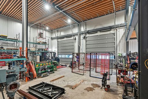 This pristine, 2024-built 15,000 sq. Ft. Industrial facility offers a rare "two-in-one" design, providing unmatched versatility for investors or owner-users seeking a premium corporate headquarters with high-yield potential. Strategically located with immediate access to the 417 highway, the property features two independent industrial wings, each paired with sophisticated two-storey office suites comprising a combined total of 13 private offices, two grand boardrooms, two spacious lunch/break rooms and modern staff amenities. The industrial components boast a 24ft clear height, reinforced by a robust 400amp/600v power supply and natural gas heating. Operational efficiency is at the forefront, with one side offering six 12'x10' grade-level doors and the other featuring three oversized 14'x12' bays, supplemented by loft storage and dedicated in-shop offices. Complete with expansive outdoor acreage for machinery, ample paved parking, and a polished professional aesthetic, this site is the definitive choice for logistics, manufacturing, or multi-tenant investment.