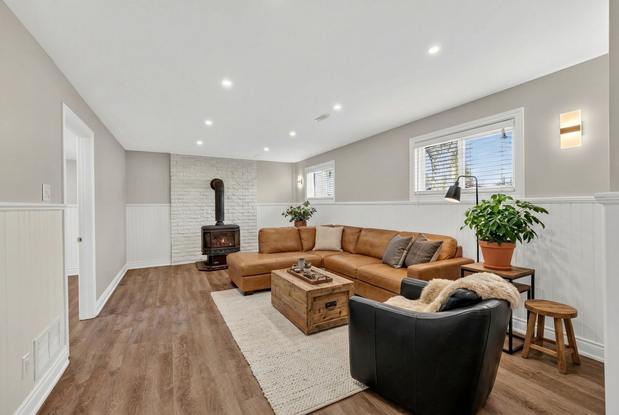 • Cozy rec-room featuring a Napoleon gas fireplace for relaxation.