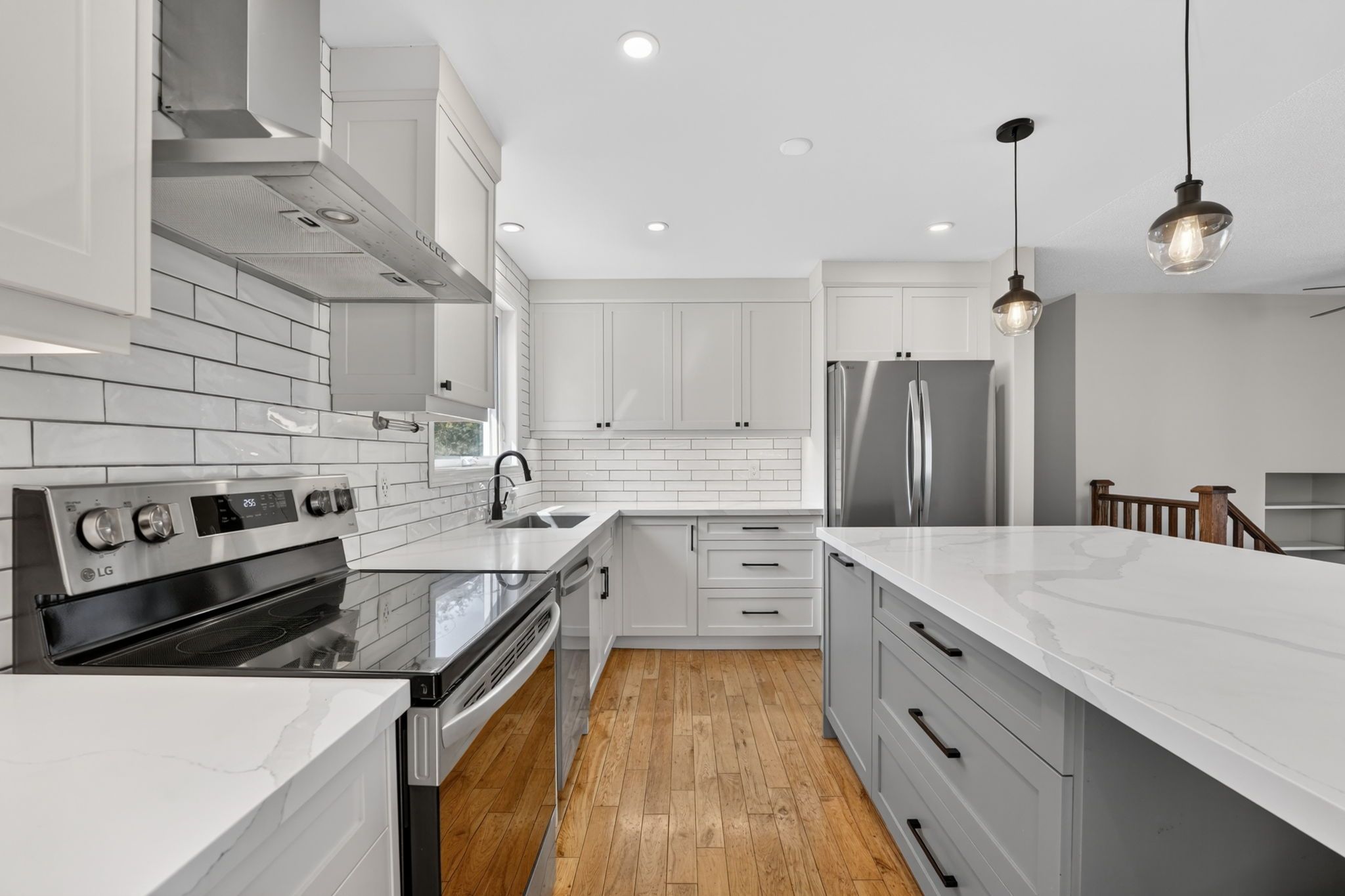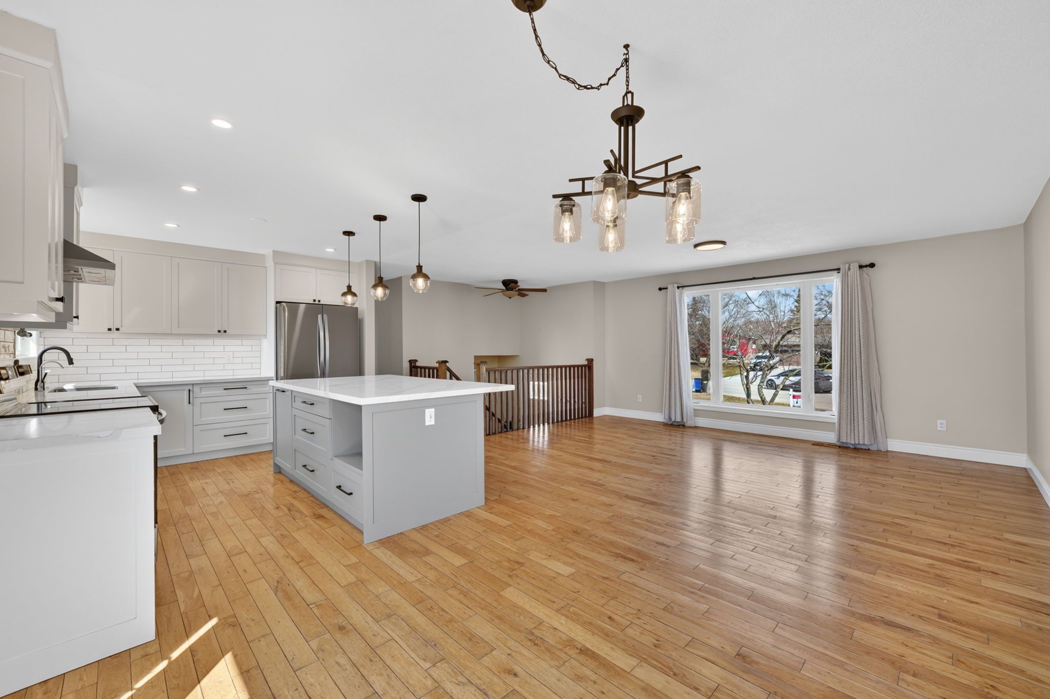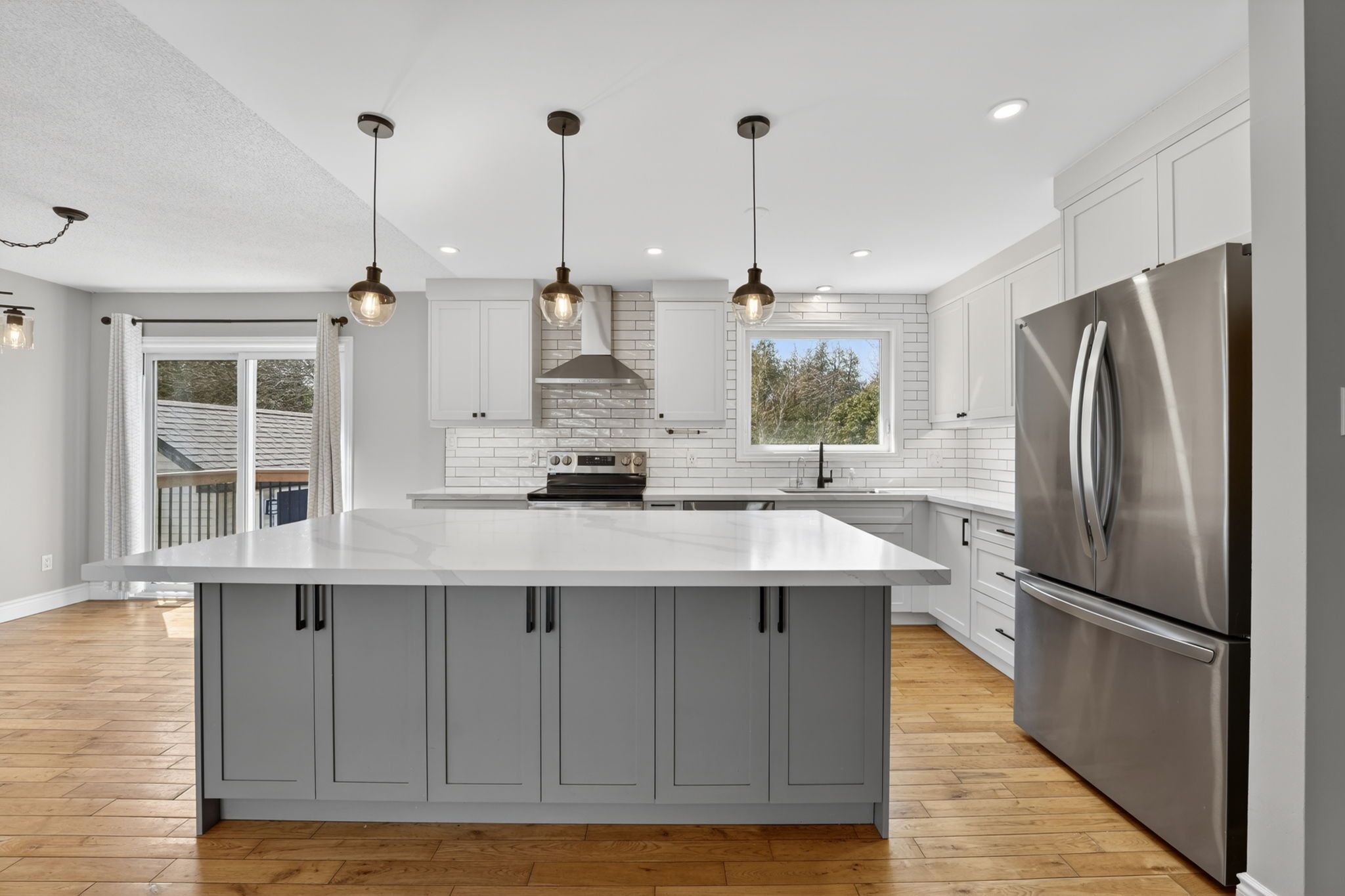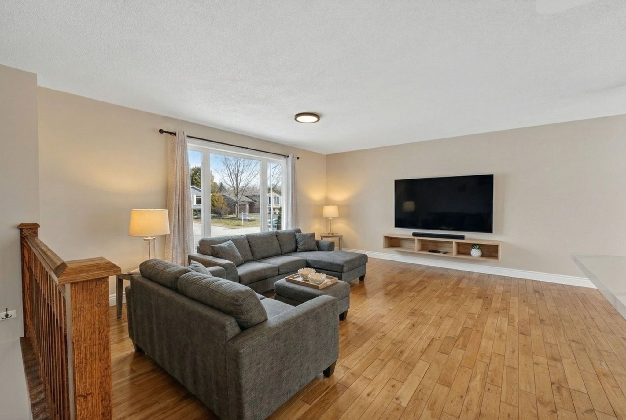 Welcome to the village! Very well maintained, updated, bright, and clean 3. 2 bedroom 2 bathroom home on massive 75 x 213 foot lot located in one of the most sought after neighborhoods in the county. Boasting; a gorgeous open concept kitchen with large island, walkout to private deck that overlooks fenced back yard, updated bathroom, windows, doors, roof, high eff forced air gas furnace, central air, hardwood floors and stairs, freshly painted, upgraded lighting through out, cozy rec-room with napoleon gas fireplace, interlock walkways wrapping the house from front to back. Fully insulated and heated garage with newer garage door, automated opener, and paved 4 car driveway. Endless fun and recreation abounds with fields and trails(perfect for your evening walks), forest and creeks, an amazing playground, summer splash pad for the kids, indoor and outdoor rinks, sledding hill, ball diamond, ice cream shops, and all of it is just a short walk your own back door. Loads of storage space inside and out with basement storage room and 3 garden sheds. Come live in the country with the convenience of being close to major amenities and commuter routes but the small town feel of living in the village!