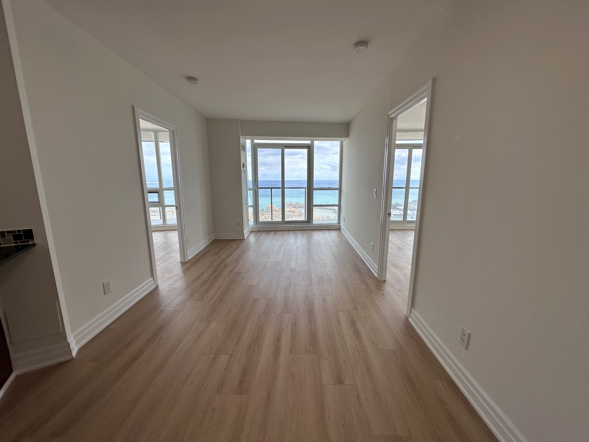Bright & spacious 2 bed, 2 bath south-facing unit with unobstructed lake & skyline views! Enjoy stunning vistas of lake ontario and the toronto skyline from this beautifully maintained suite. Features include a functional open-concept layout, floor-to-ceiling windows, and a private balcony. Includes 1 parking spot and 1 locker. Resort-inspired building amenities: indoor pool, jacuzzi, gym, party rooms, theatre, billiards lounge, kids play area, outdoor terrace with mini-putt golf, guest suites & more! Prime waterfront location with easy access to transit, parks, trails, shops, and restaurants. A must-see!