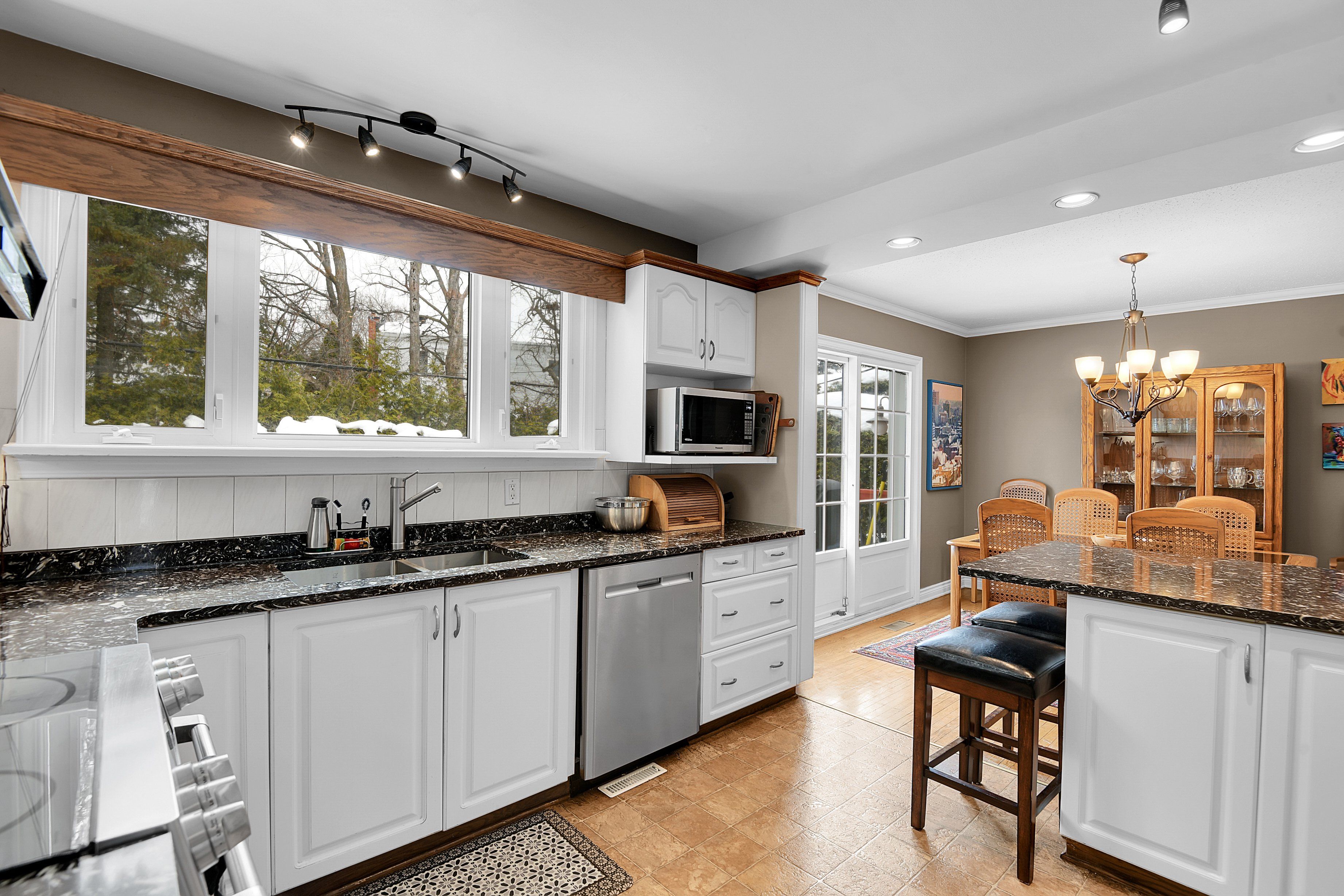 • Renovated kitchen featuring granite countertops and modern finishes.