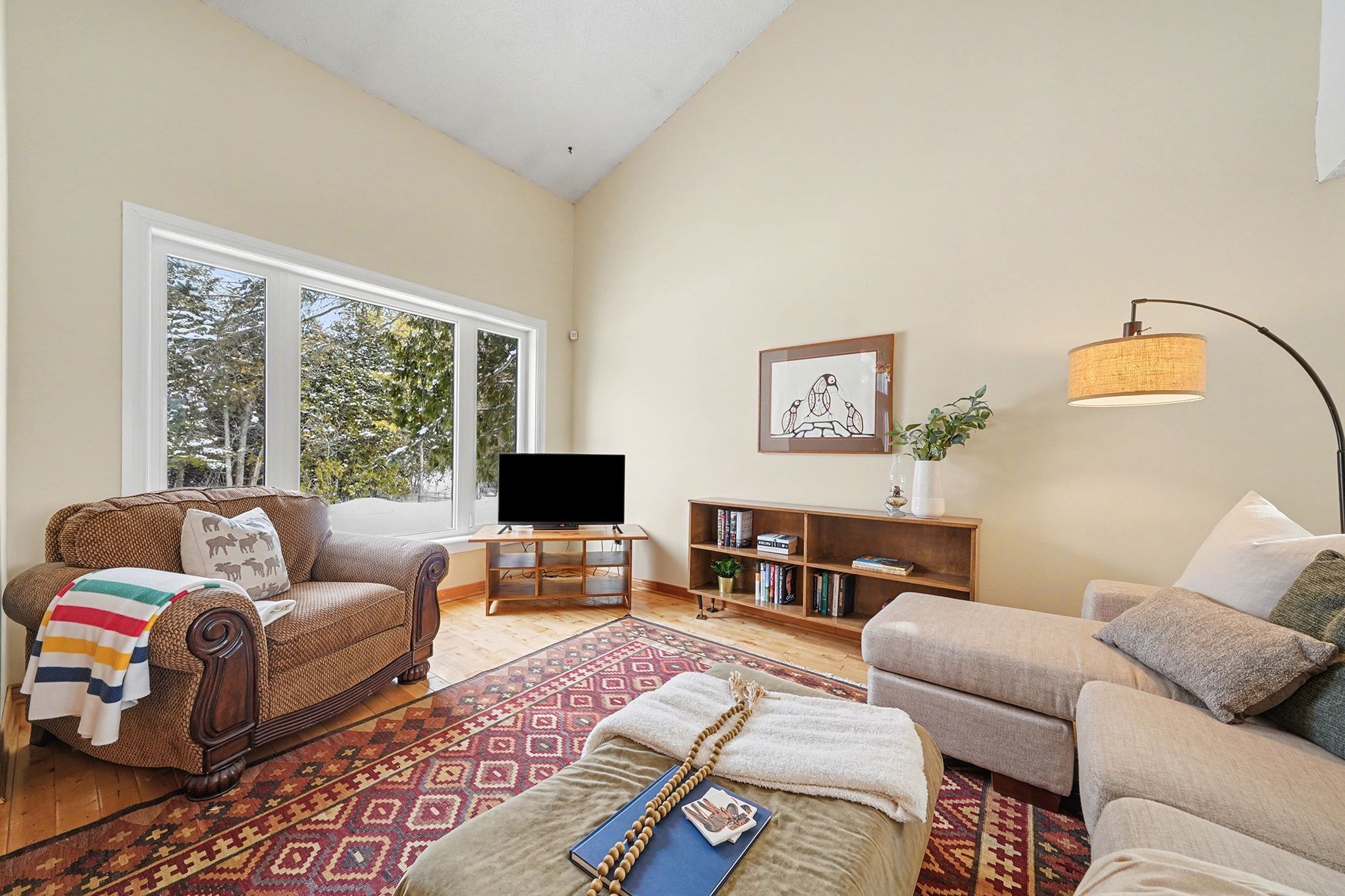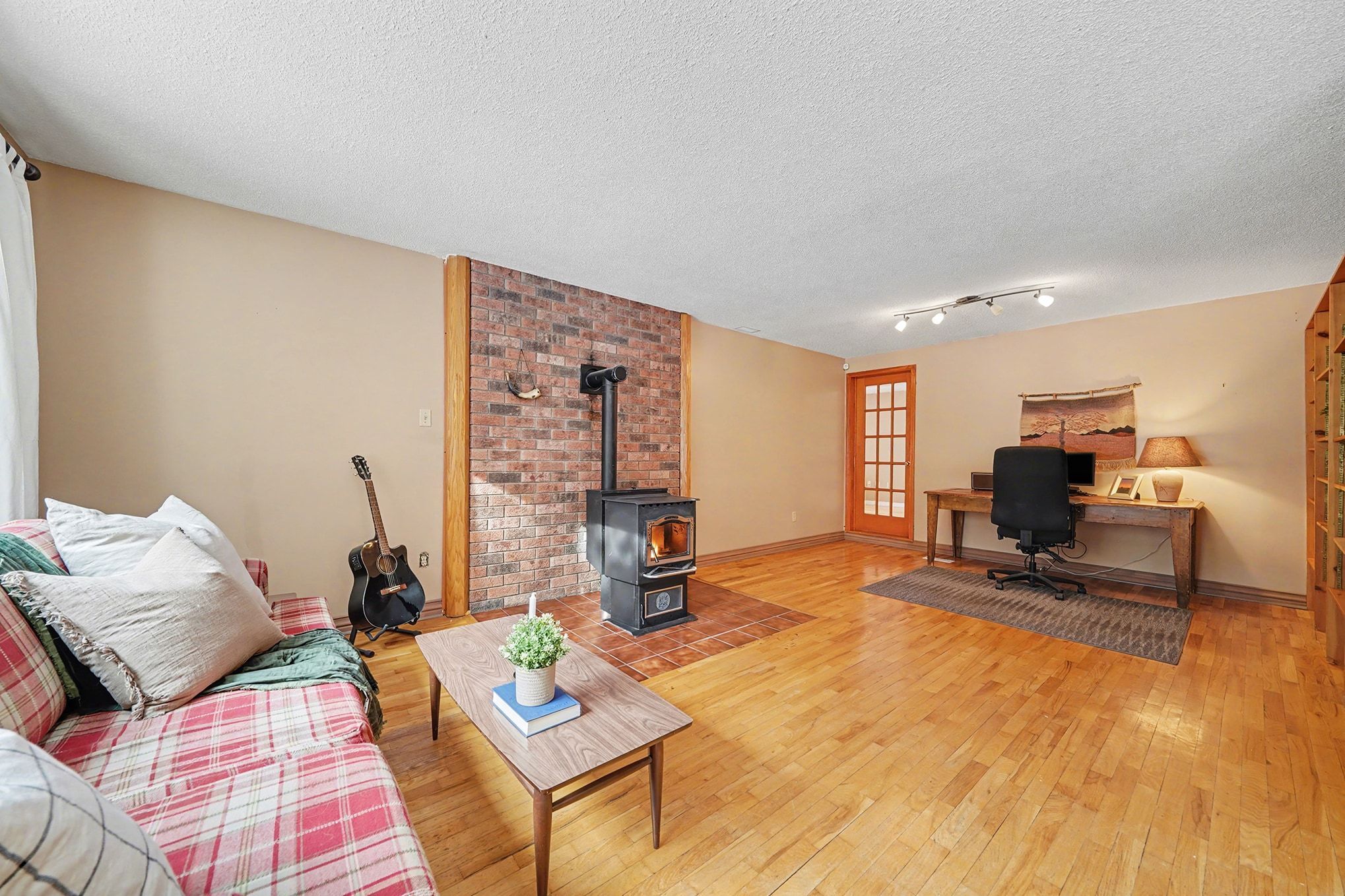 • Cozy family room with a pellet stove for warmth on chilly nights.