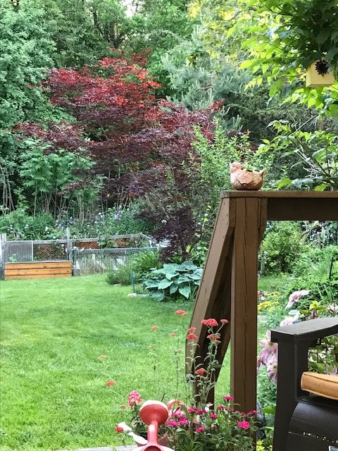 • Private deck overlooking landscaped backyard and lilac gardens.