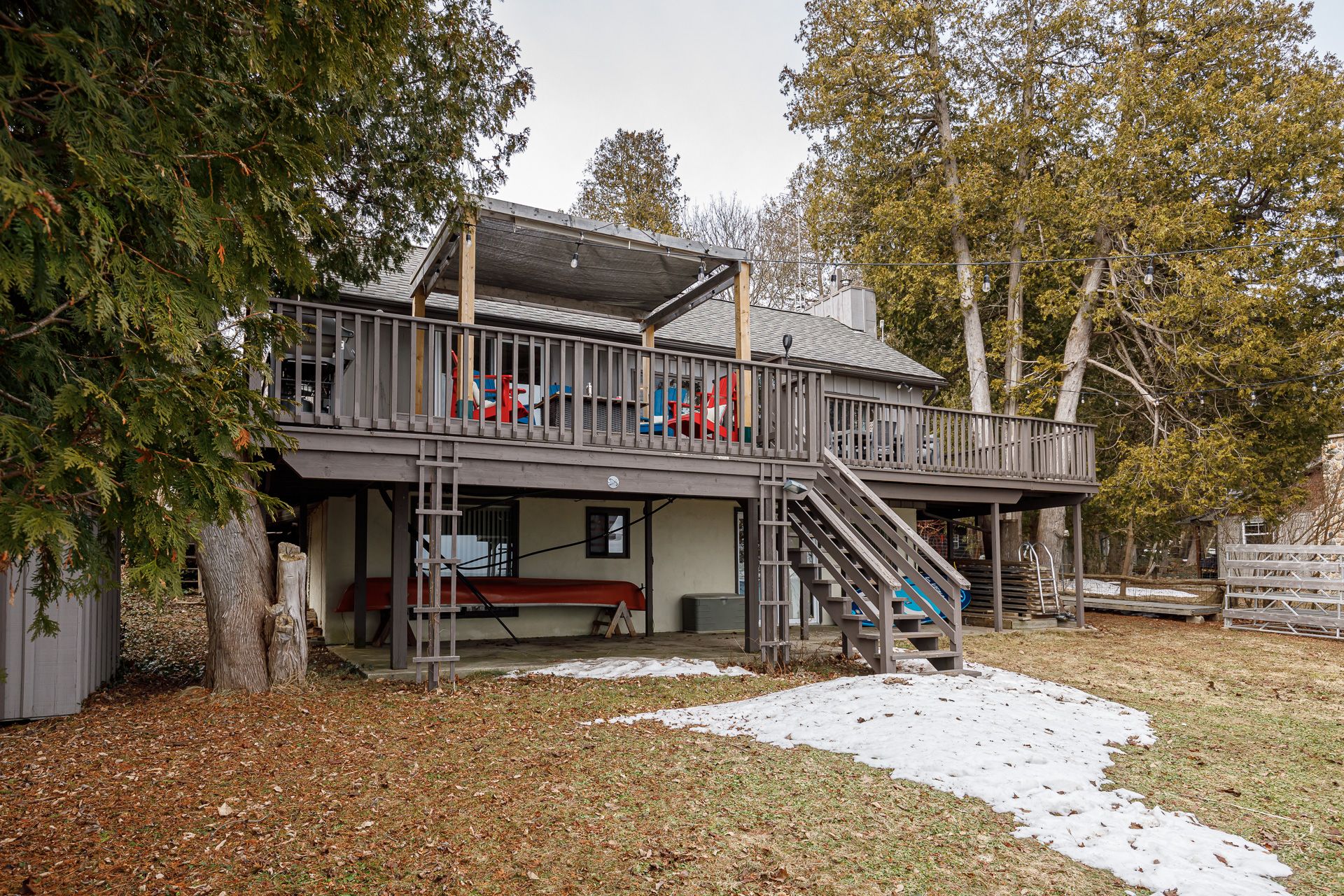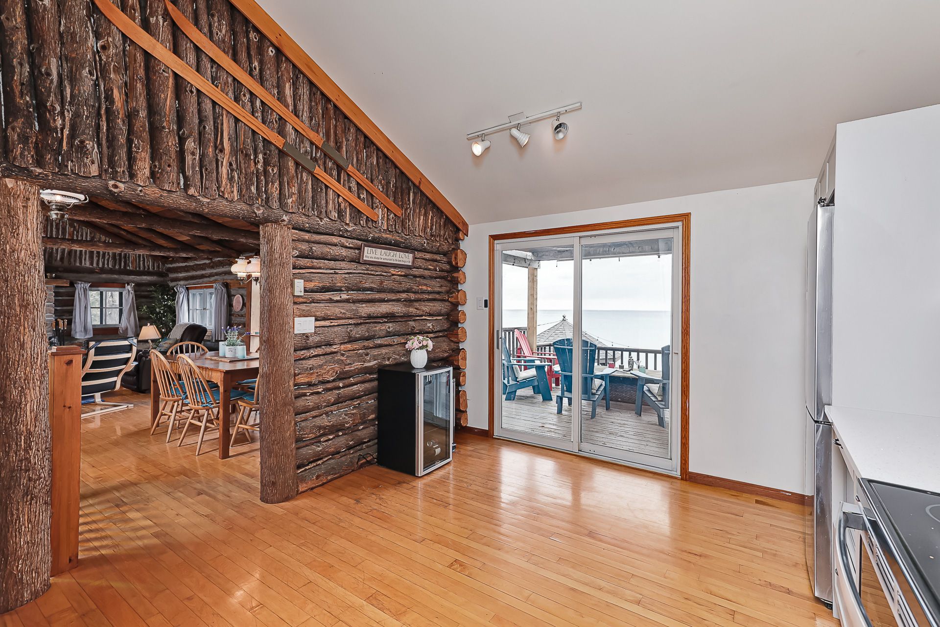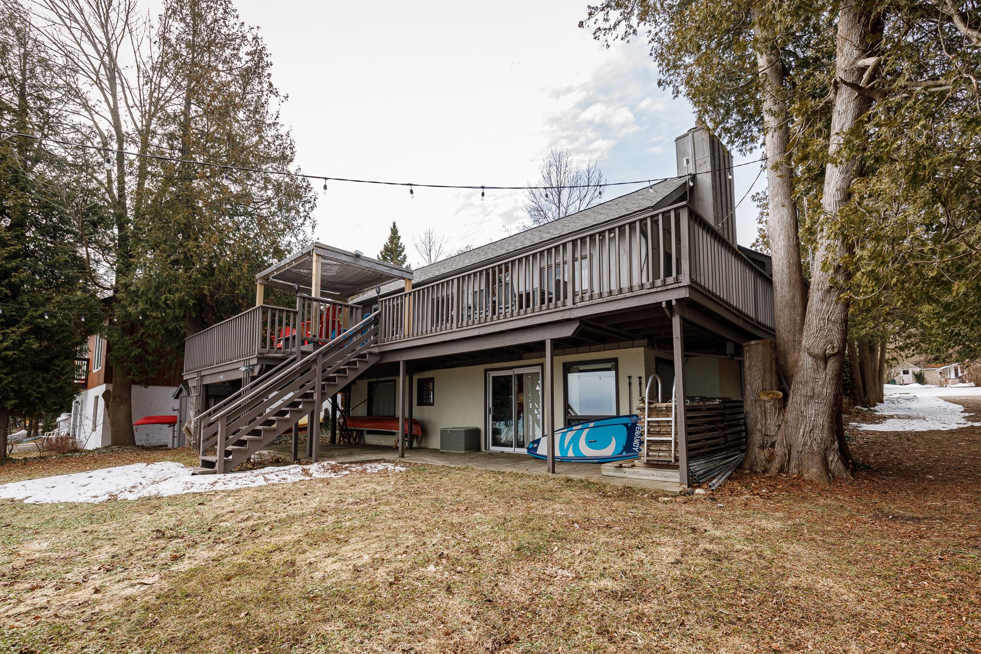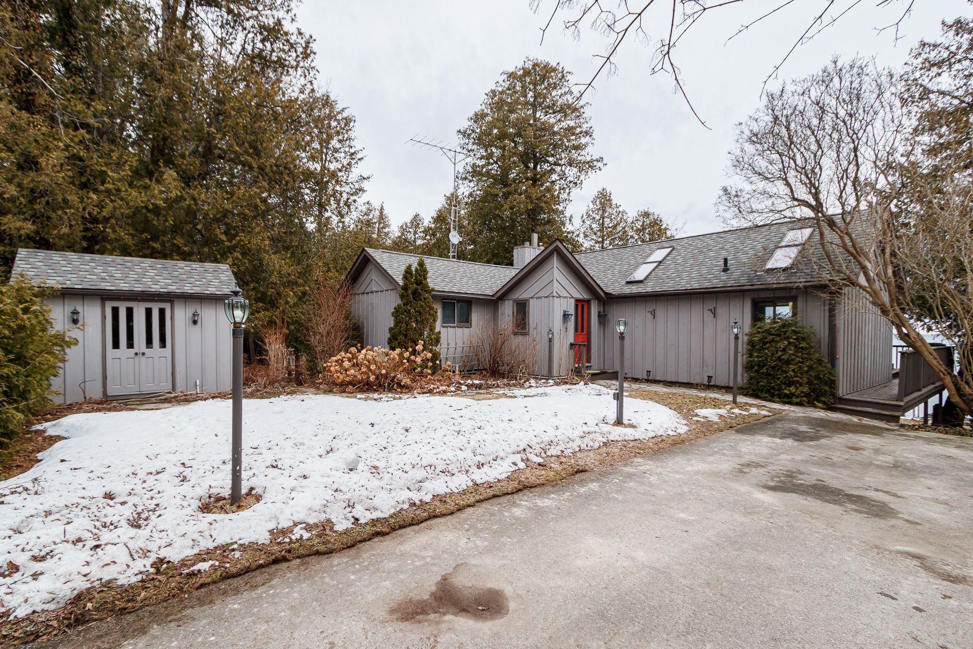 Adorable waterfront cottage on prestigious cedar avenue, offering breathtaking views of georgian bay and the niagara escarpment from collingwood to meaford and beyond. Built in 1985, this charming four-season retreat captures the feel of a classic canadiana cottage while offering the comfort and convenience of year-round living. Spend your summer days on your private sandy beach, with crystal-clear water at your doorstep. Fish for rainbow trout from your dock, or enjoy peaceful evenings paddleboarding or kayaking along the shoreline, gazing down at striking underwater boulder formations. A short boat ride takes you to the harbours of meaford or thornbury for lunch, coffee, or ice cream. Inside, the home exudes warmth and character, centred around the original natural log great room featuring a historic signature dating back to 1925. Cathedral ceilings, maple flooring, a stone wood-burning fireplace, and skylights create a bright yet cozy, inviting space. The home is thoughtfully designed with two distinct yet connected living areas. The wing offers an upper bedroom off the main foyer, with a staircase leading to a charming lower bedroom and 2-piece bath-ideal for guests or family. The beautifully updated kitchen opens to a wraparound deck overlooking the bay, perfect for entertaining or simply taking in the view. The lower level includes a spacious primary bedroom, full bathroom, and a comfortable family room with a wood stove and walkout to the terrace, gazebo, and waterfront-seamlessly blending indoor and outdoor living. Finished with a timeless board-and-batten exterior, the property is surrounded by perennial gardens and includes two storage sheds. A truly special waterfront getaway-where classic cottage charm meets four-season comfort. This property is not to be missed!
