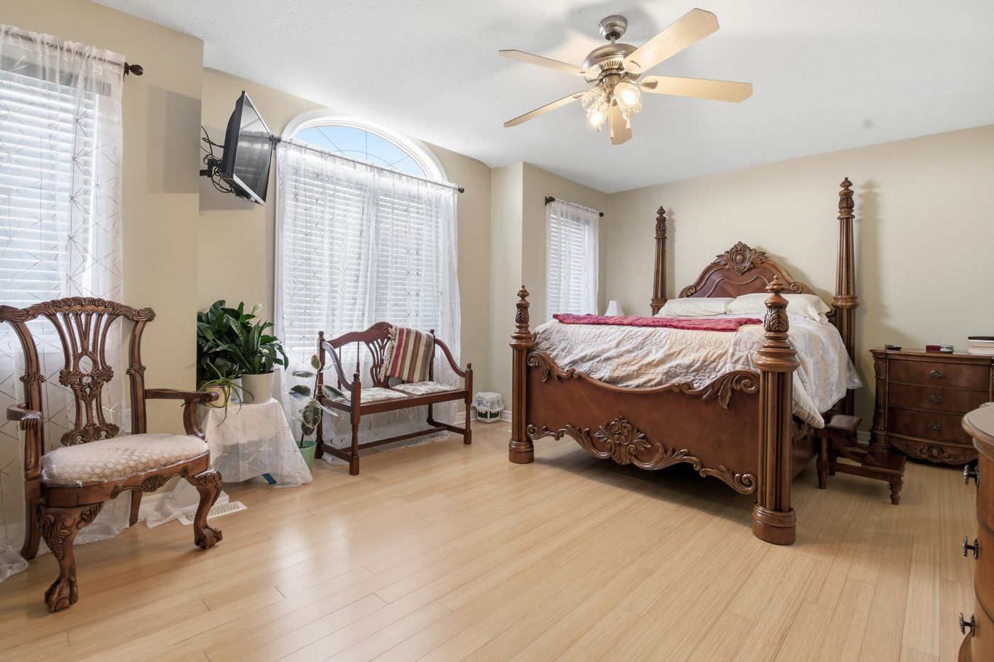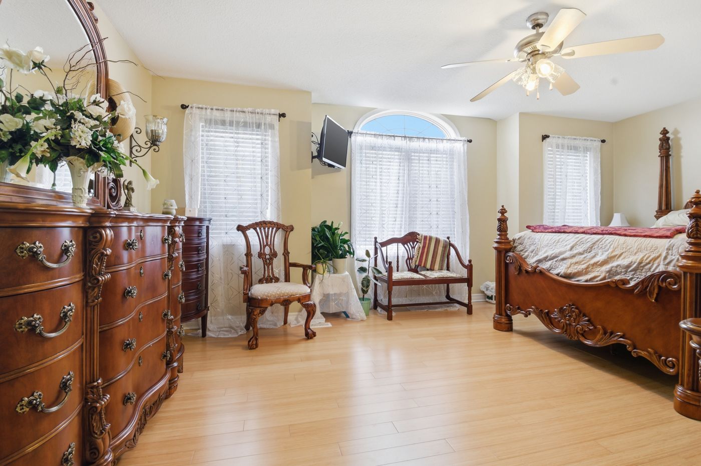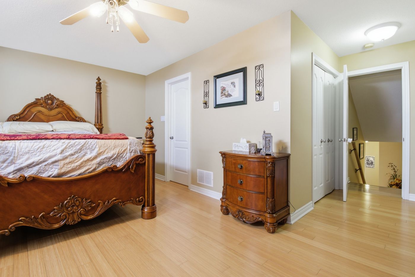 • Private primary retreat with spa-like ensuite and bamboo flooring.