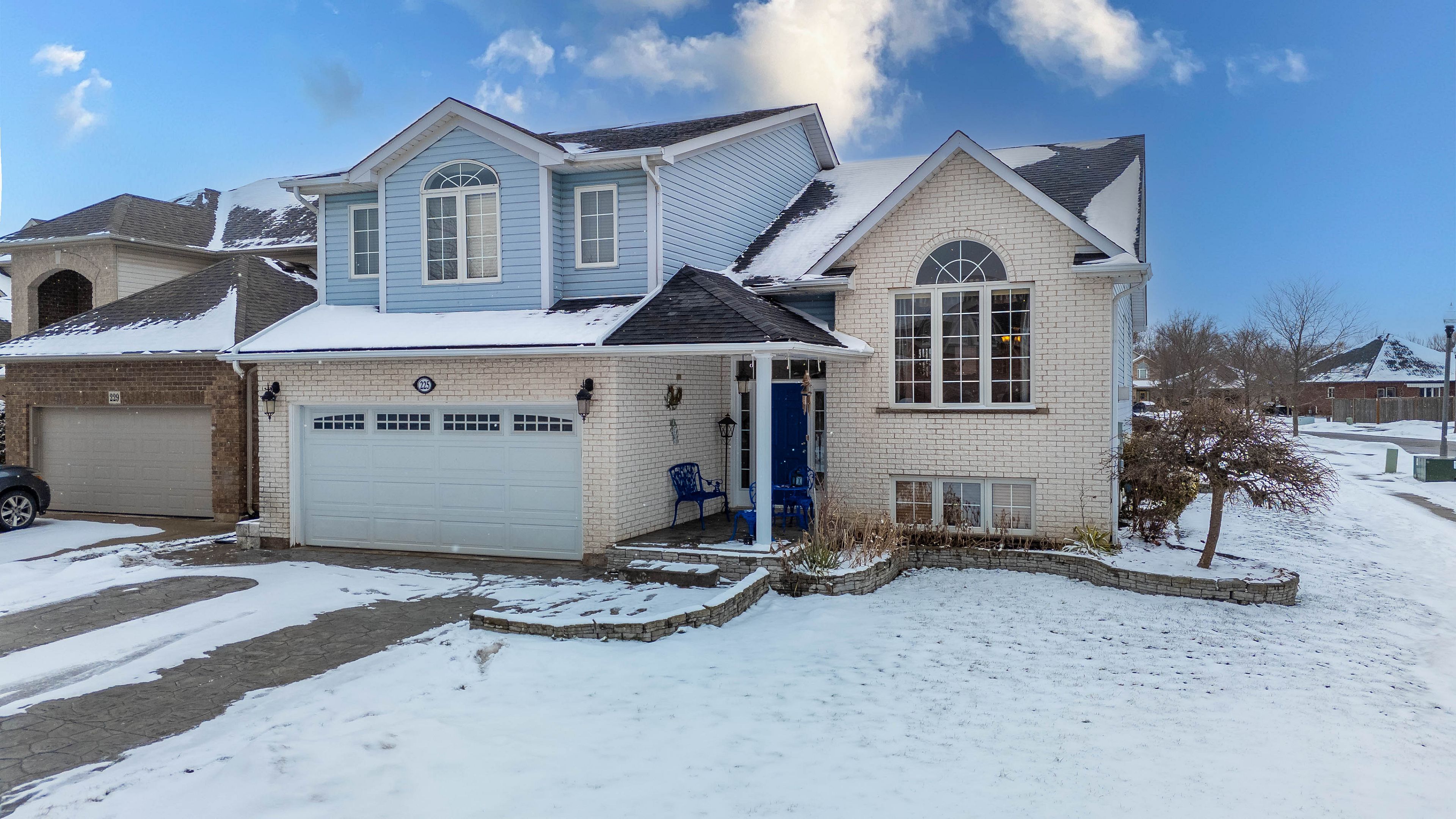 Tucked away on a sought-after cul-de-sac at 225 colbeck drive in welland, this custom winspear home sits on a rare corner lot, full of natural light and designed to feel open, inviting, and warm. With its generously sized foot print, it's the perfect place for family life, hosting guests, or growing into your dream home. Step inside to cathedral ceilings, gleaming hardwood floors, and the cozy glow of gas fireplaces on both levels. The home features 3+1 bedrooms and 2. 5 baths, including a private primary retreat on its own level with bamboo floors and a spa-like 4-piece ensuite with a jacuzzi tub. Main-floor laundry adds everyday convenience. The basement is spacious and versatile, ideal for a home theatre, games area, or recreation space, and includes a rough-in for a bathroom with potential for a 5th bedroom, giving plenty of flexibility for family or guests. Outside, entertain effortlessly with a composite deck and stairs, poured concrete patio with pergola, complete with electrical and hookup for a hot tub, a large 2-car garage, and a beautifully maintained yard with room for kids, pets, or outdoor gatherings. Major updates include a modern kitchen with ceramic backsplash, three-seat island, and stainless steel appliances (all under 3 years old), along with a furnace installed in 2020, ac unit and heat pump (2025), and a stamped concrete driveway and walkway-making this home move-in ready and radiating comfort, style, and warmth. This is a rare opportunity to own a beautiful, spacious home designed for both living and entertaining, where every corner feels welcoming and ready for memories to be made.