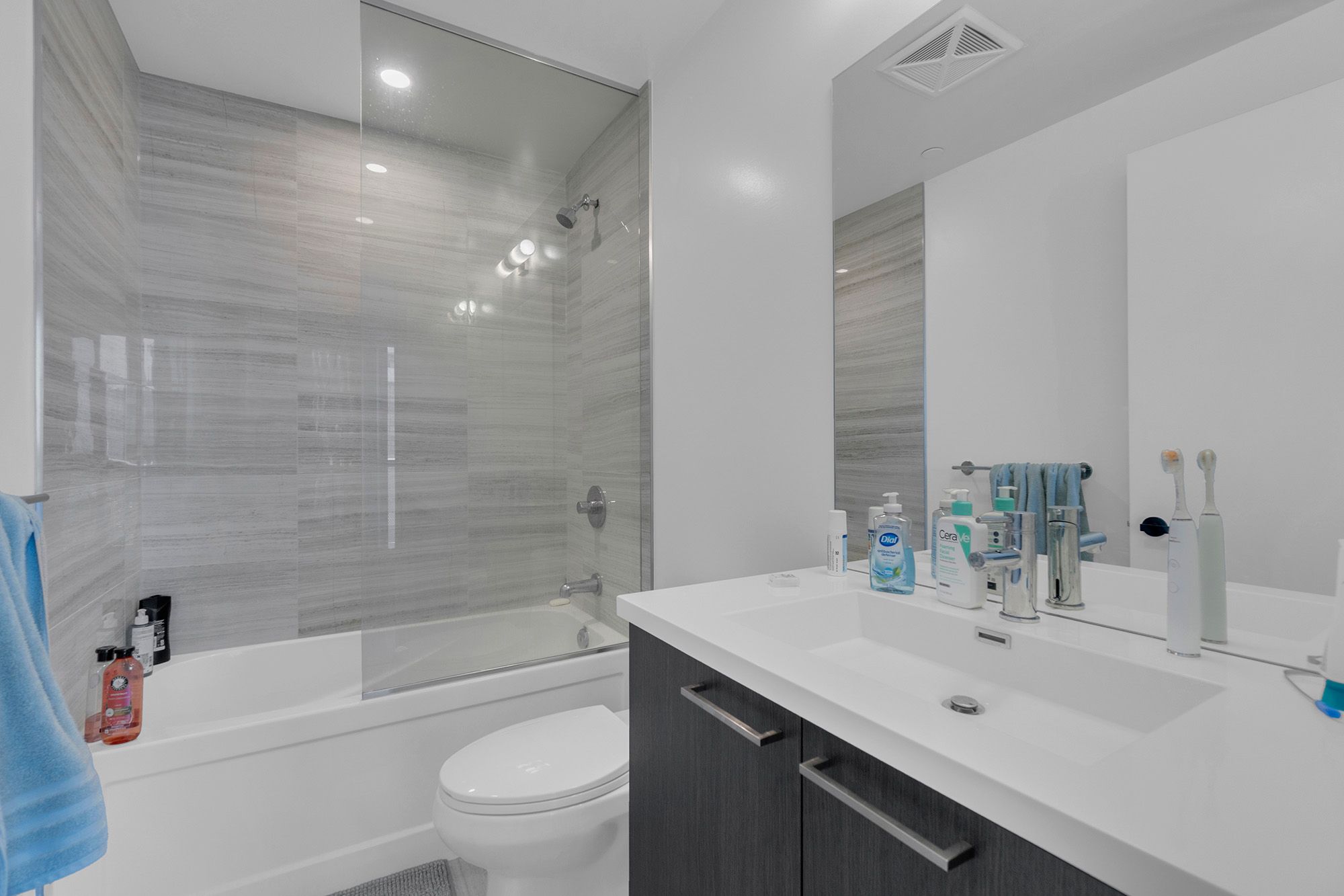 • Modern 1 bedroom + den unit with two full bathrooms for convenience.