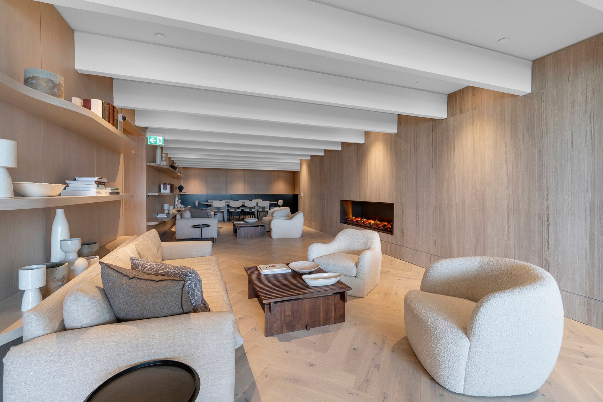 • High ceilings and floor-to-ceiling windows create a bright, open atmosphere.