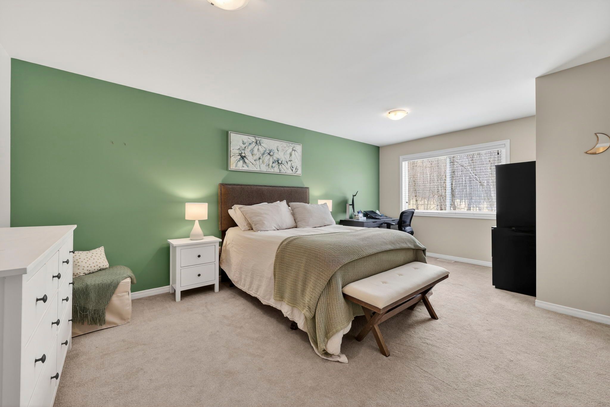 • Spacious primary bedroom featuring backyard views and a luxurious ensuite.