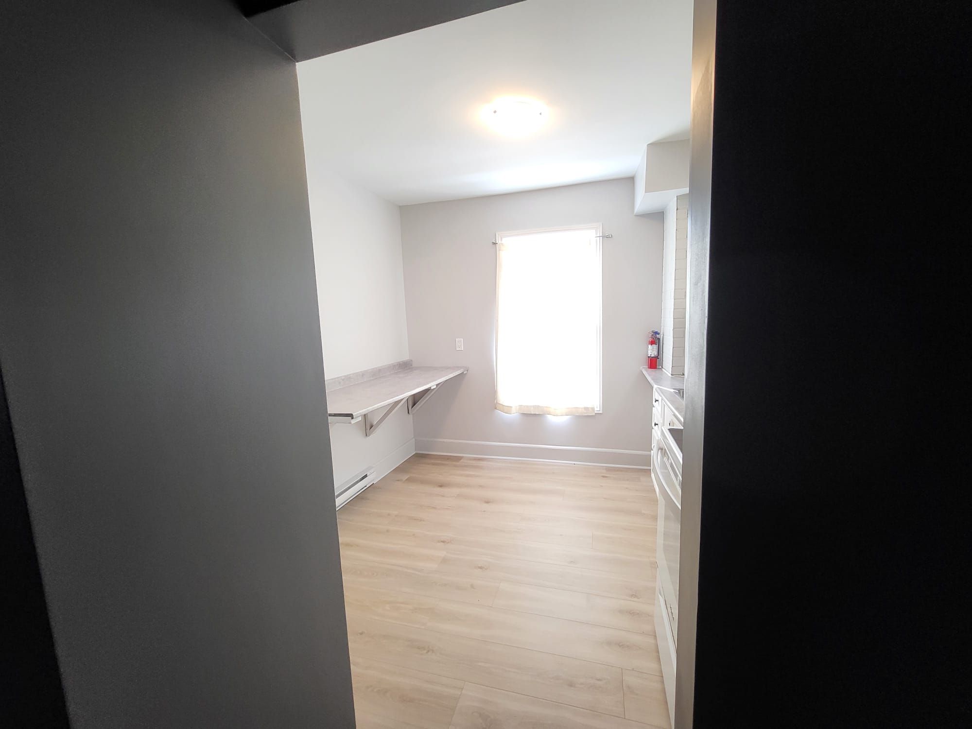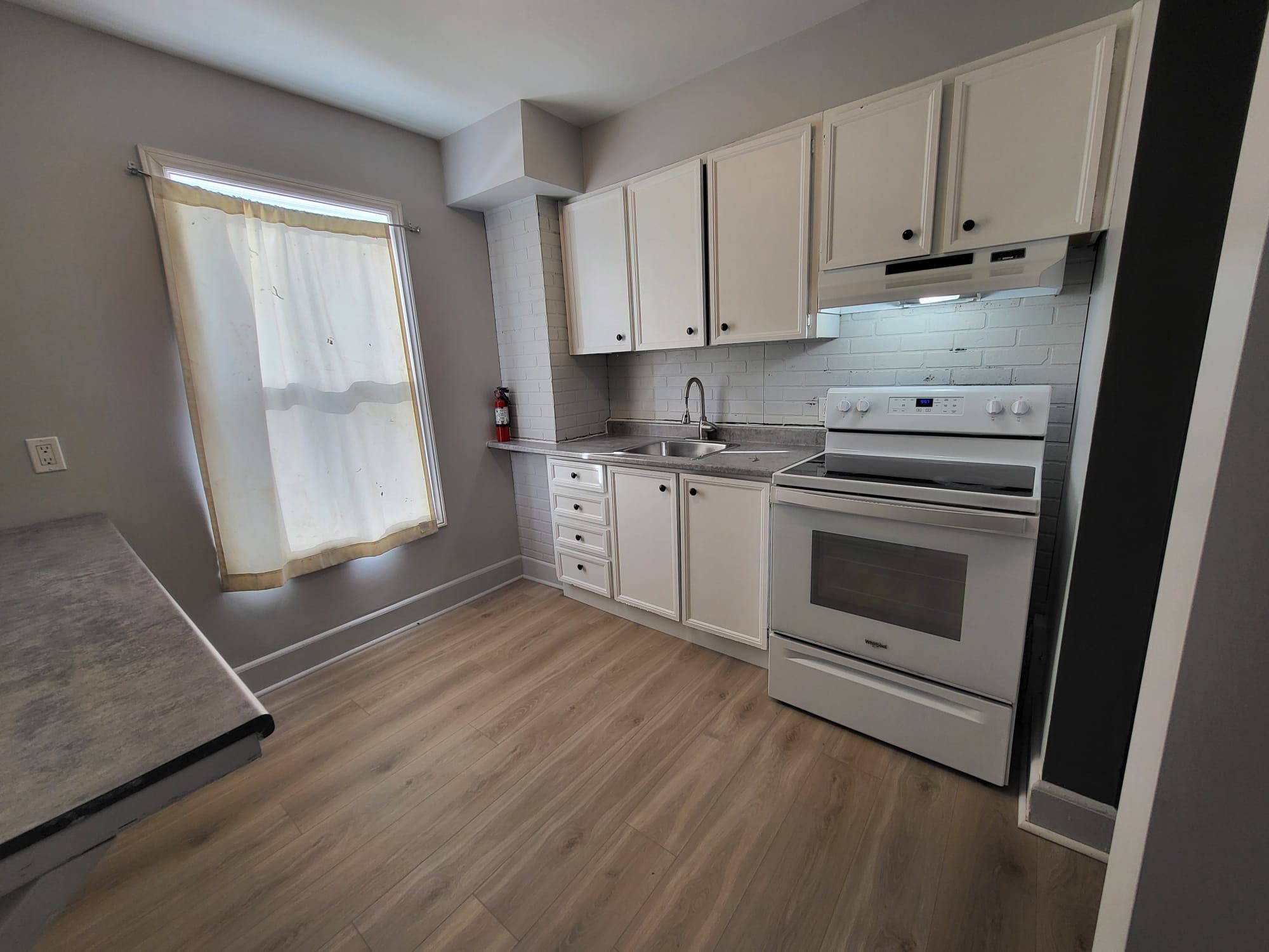 • Updated kitchen with a south-facing window and flooring.