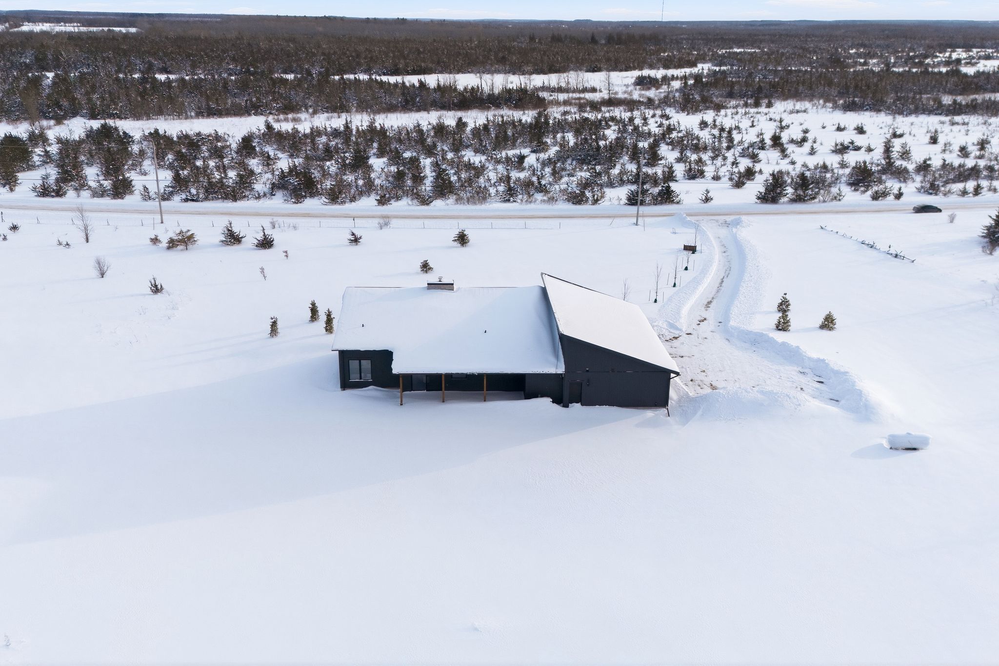 Welcome to this stunning newly built contemporary home, perfectly set on 81+ scenic acres just minutes from picton and waupoos. This is the best of prince edward county living-central to condé nast named food, wineries, and beaches, yet surrounded by the peace and privacy of true country living. The thoughtfully designed 3-bedroom, 2-bathroom home is loaded with modern conveniences and architectural character. Soaring vaulted ceilings create a dramatic sense of space throughout-approximately 15 feet reaching the peak in the living room, and 12 feet in the guest bedrooms. At the heart of the home, a floor-to-ceiling zero-clearance wood-burning fireplace anchors the open-concept living area, offering warmth, ambiance, and a striking focal point. Radiant in-floor heating ensures year-round comfort, including in-floor gas boiler heating in the insulated garage. Outdoors, the property is beautifully landscaped with established perennial flowerbeds and a thoughtful blend of deciduous and coniferous trees, enhancing the natural setting while maintaining low-maintenance appeal. Whether you're seeking a full-time residence or a county retreat, this exceptional property delivers space, style, and location-without compromise.