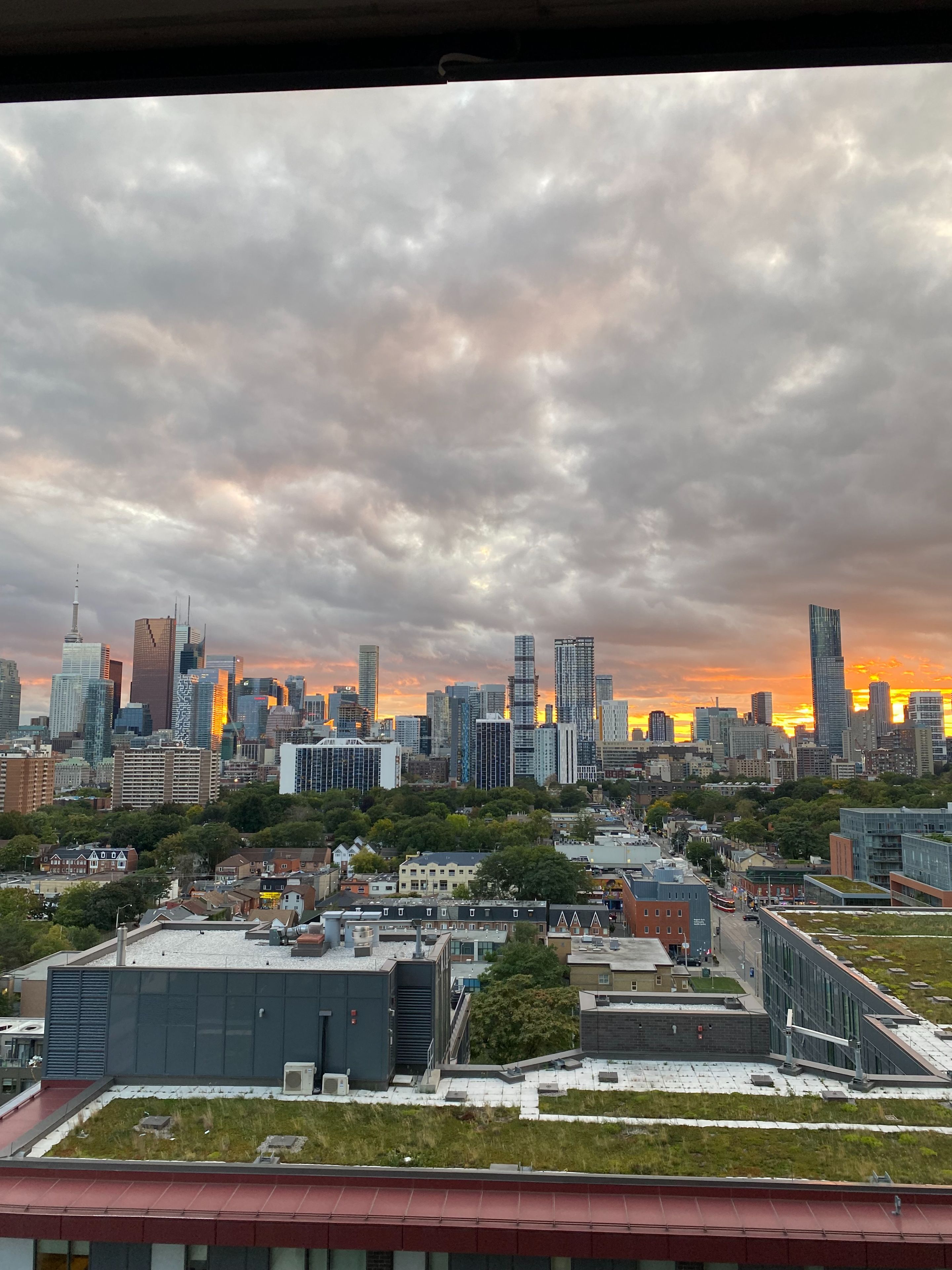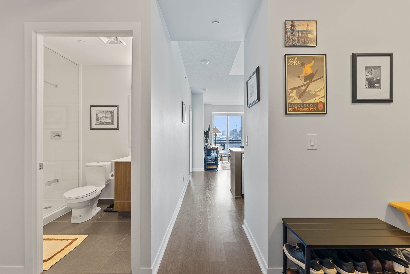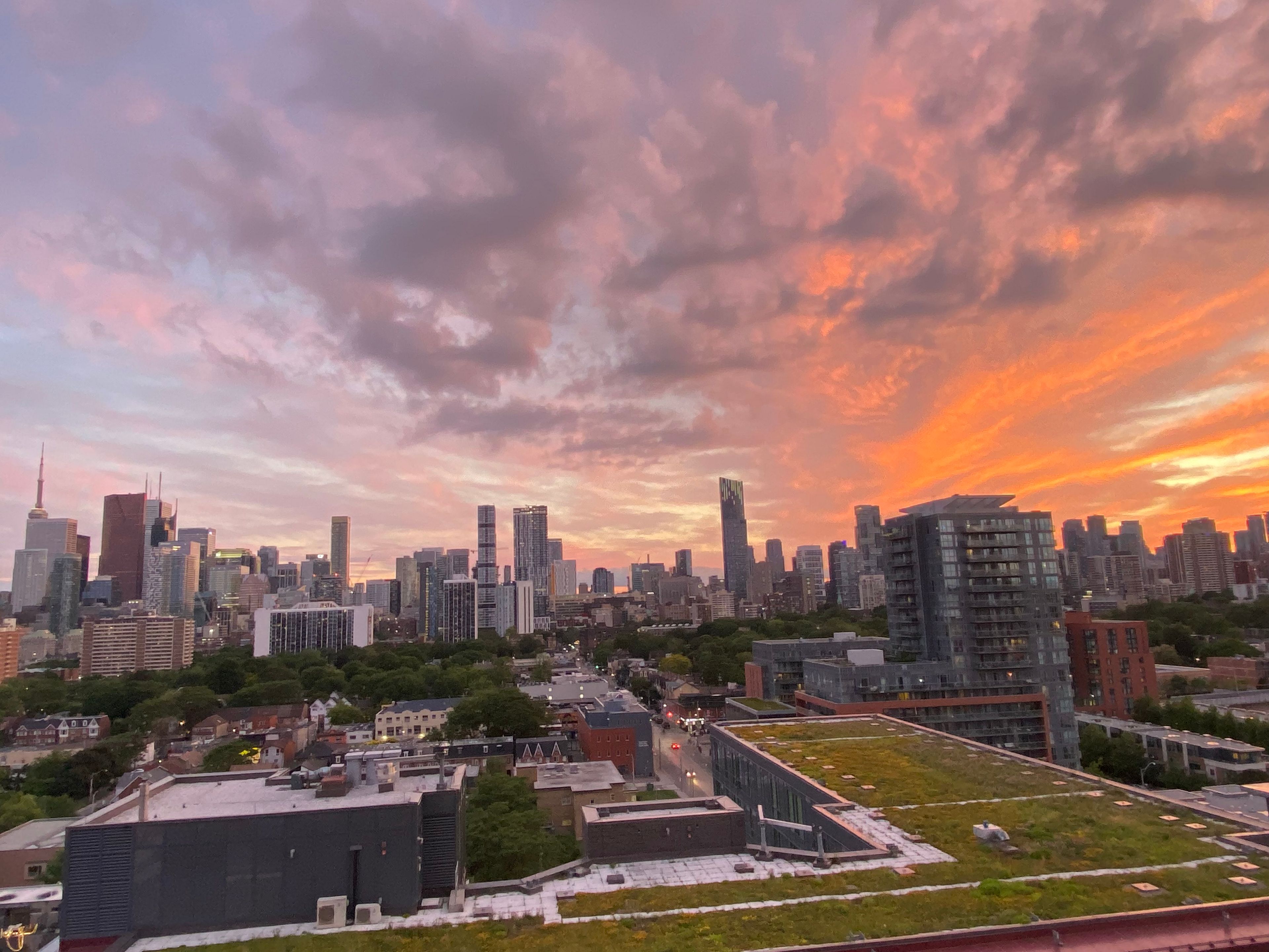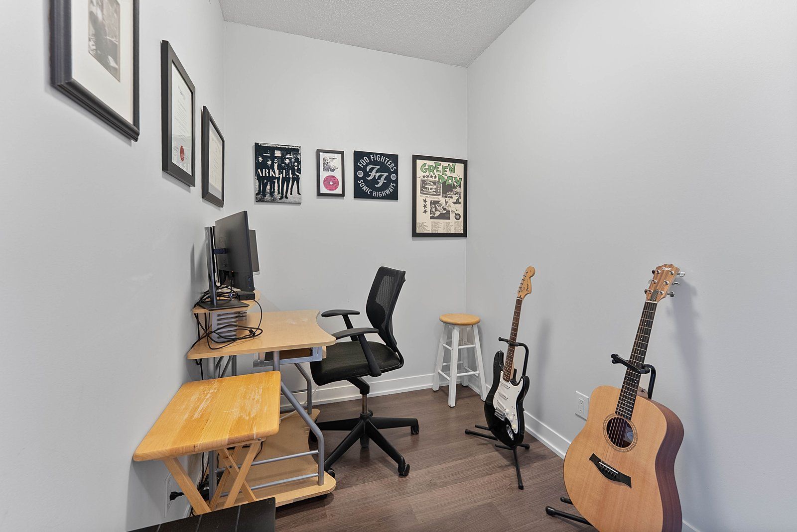 Sun-filled west-facing 1+den with parking, two bathrooms, and unobstructed skyline views. Welcome to suite 1405 at paintbox condos - a well-designed home featuring 9-foot ceilings and a functional open-concept layout. The living and dining area is filled with natural light and walks out to an oversized balcony - perfect for morning coffee or sunset views across the city. The modern kitchen offers full-sized stainless steel appliances, generous counter space, ample storage, and a new dishwasher. The spacious primary bedroom includes a private 4-piece ensuite, complemented by a second 3-piece bathroom ideal for guests or shared living. A large den provides flexibility for a dedicated home office, nursery, or additional living space. Includes 1 parking space, 1 locker, and ensuite laundry. Amenities include a gym, party room, guest suite, bbq terrace, theatre room, games room, and lounge. Steps to ttc and minutes to eaton centre, riverdale park, and the distillery district, with quick access to the dvp and gardiner. Move-in ready and thoughtfully designed with a sun-filled west-facing exposure and skyline views.
