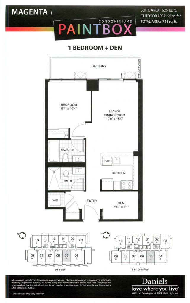Daniel luxury condo. Fantastic view of the city. 1 + den (can be 2nd sleep area) with 2 full baths. Open concept, 9' ceilings, balcony spanning full width of suite. Kitchen with upgraded stainless steel appliances. Easy access to ttc, dvp. Walking distance to eaton centre, distillery district, cabbage town, and waterfront. Parking and locker included.