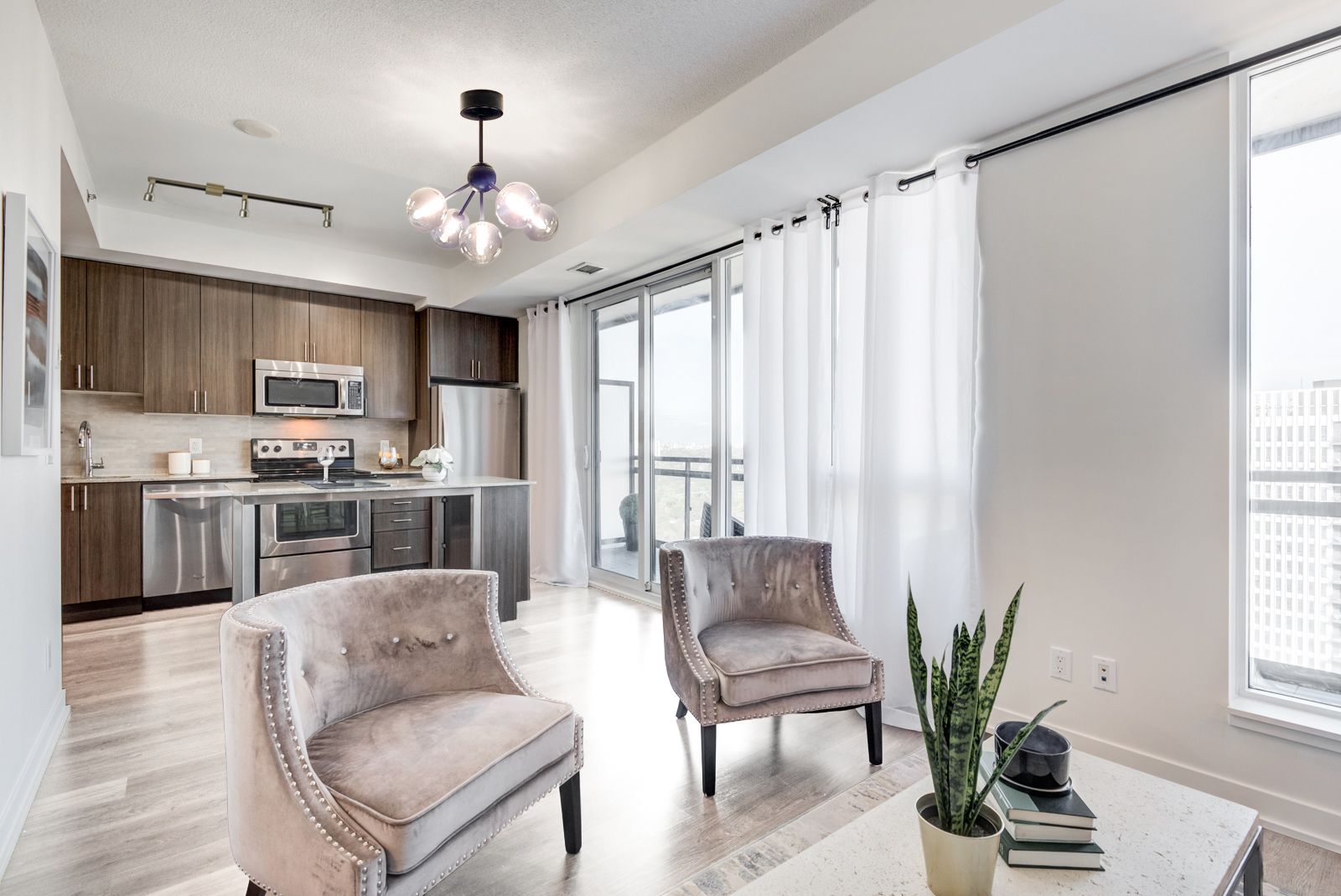 • Bright 1-bedroom suite with functional layout and stunning city and lake views.