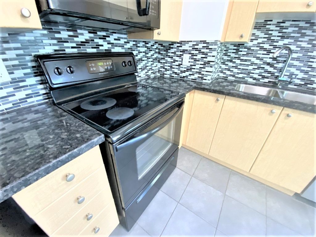 • Gourmet kitchen featuring stone counters and custom backsplash.