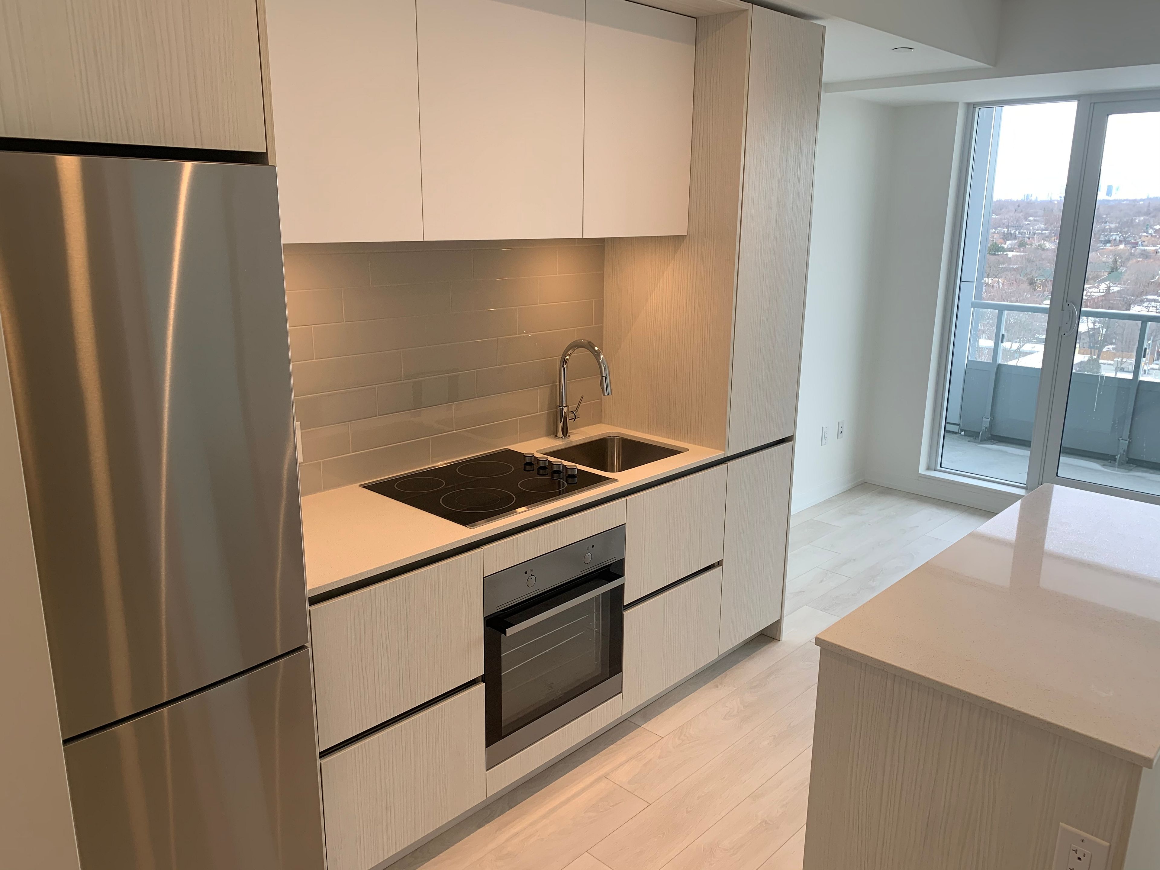 • Modern 1-bedroom condo with sleek designer kitchen and stainless steel appliances.