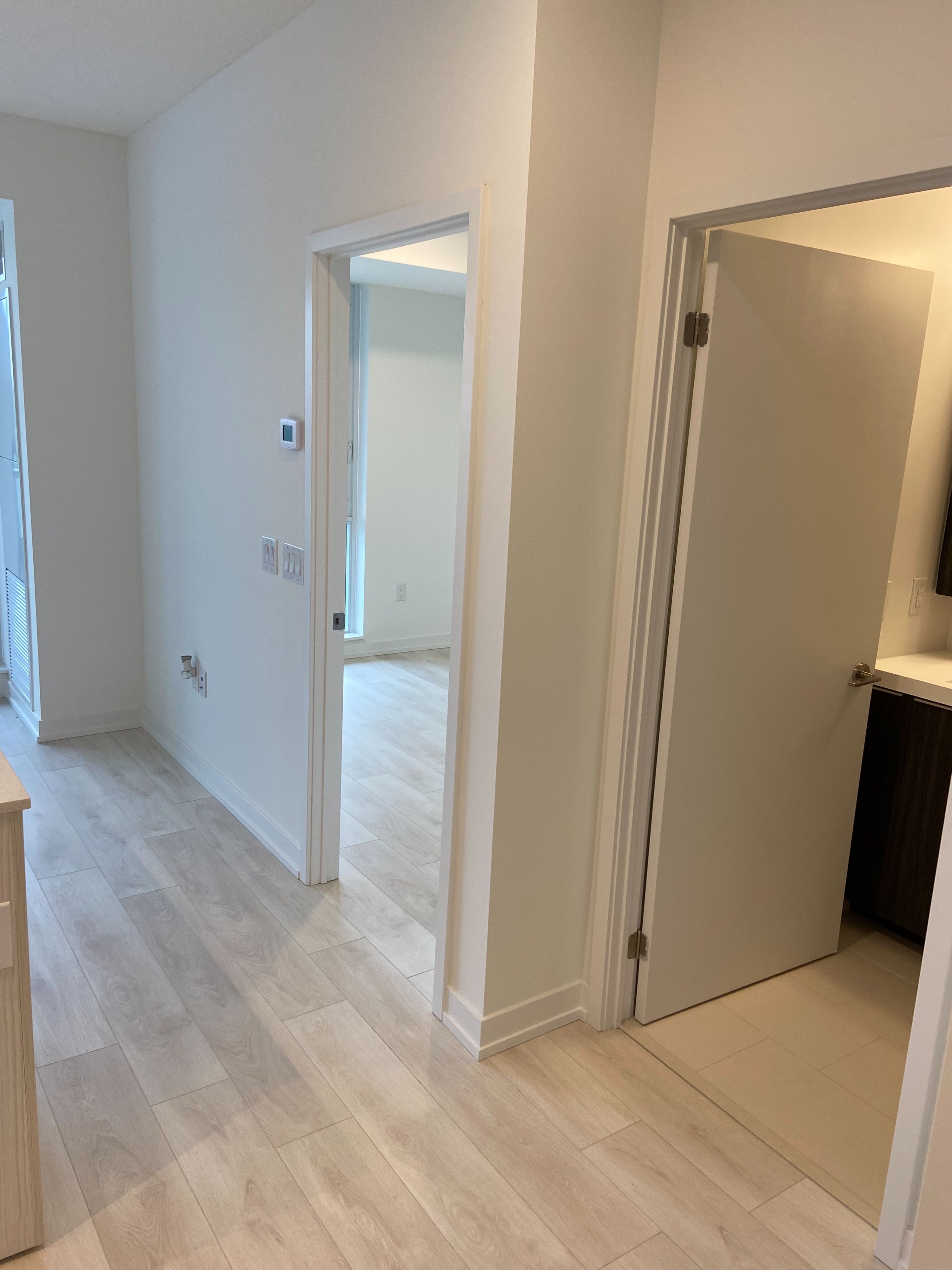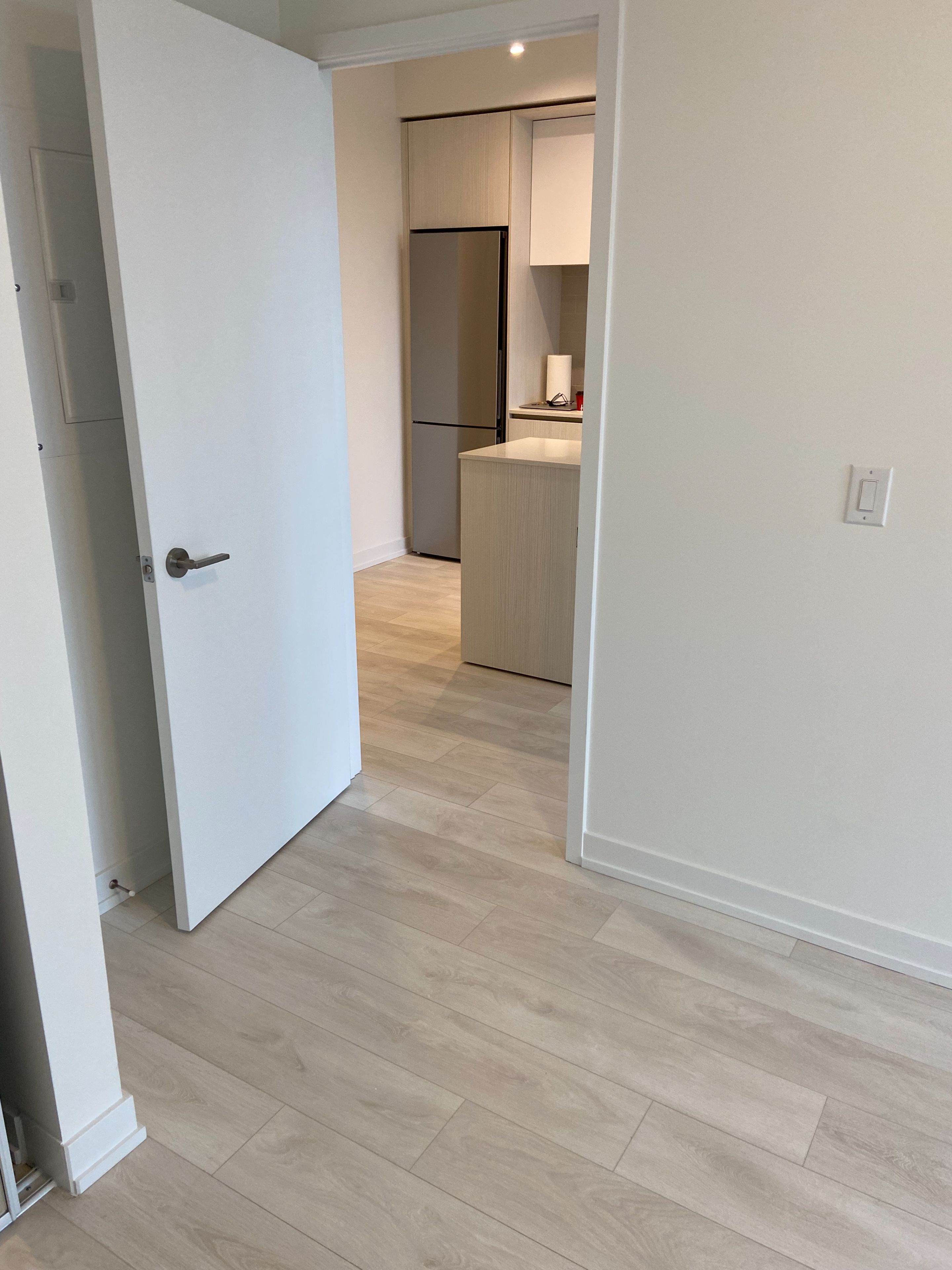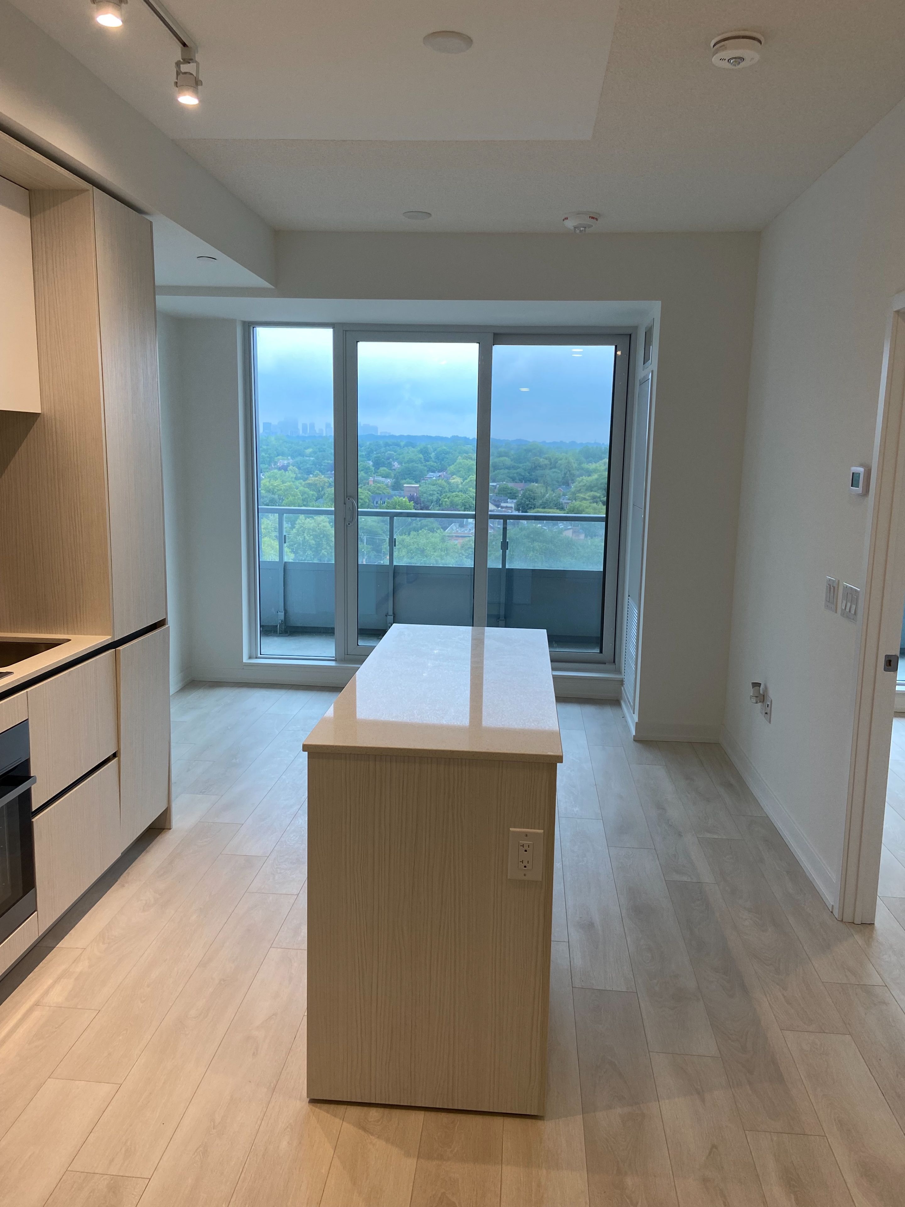• Bright space with floor-to-ceiling windows and laminate flooring throughout.