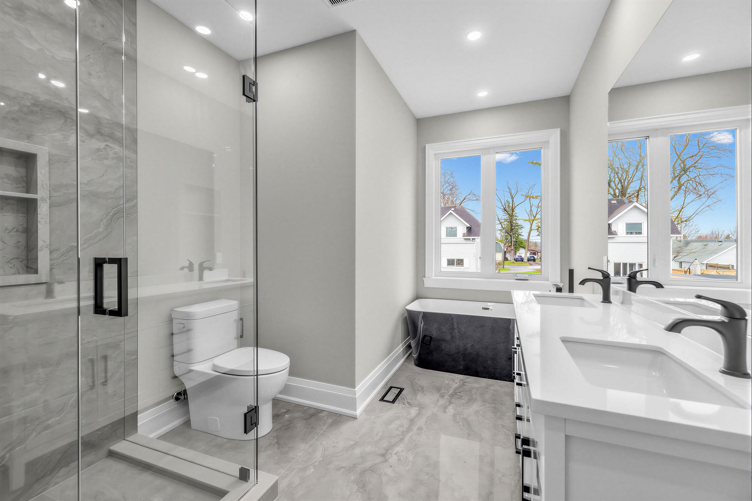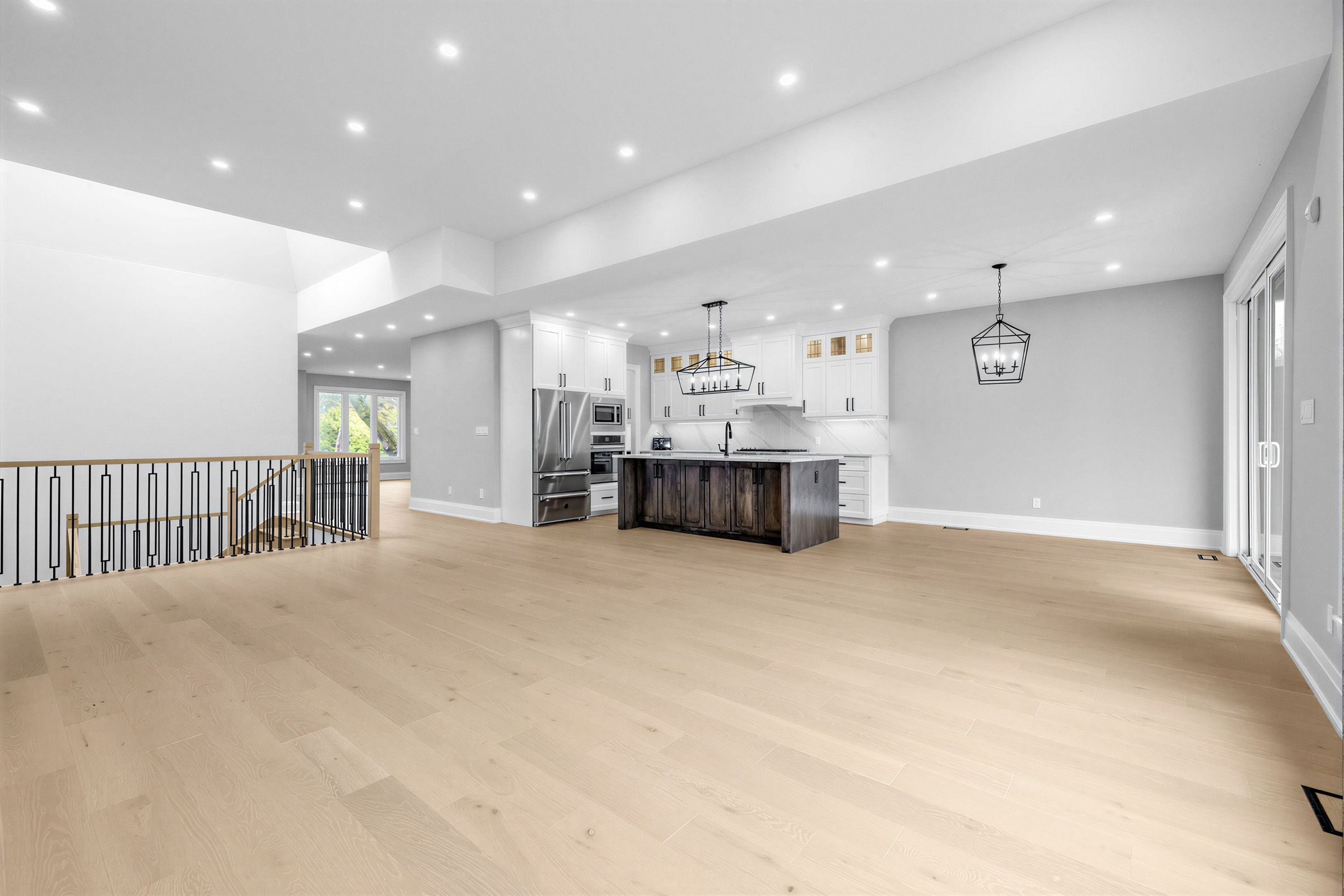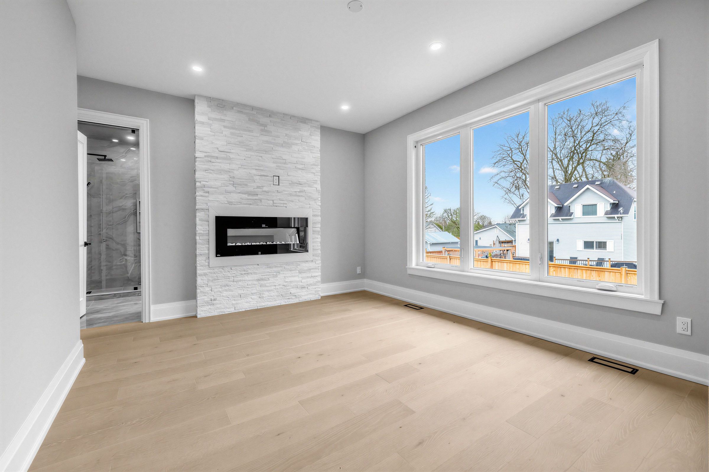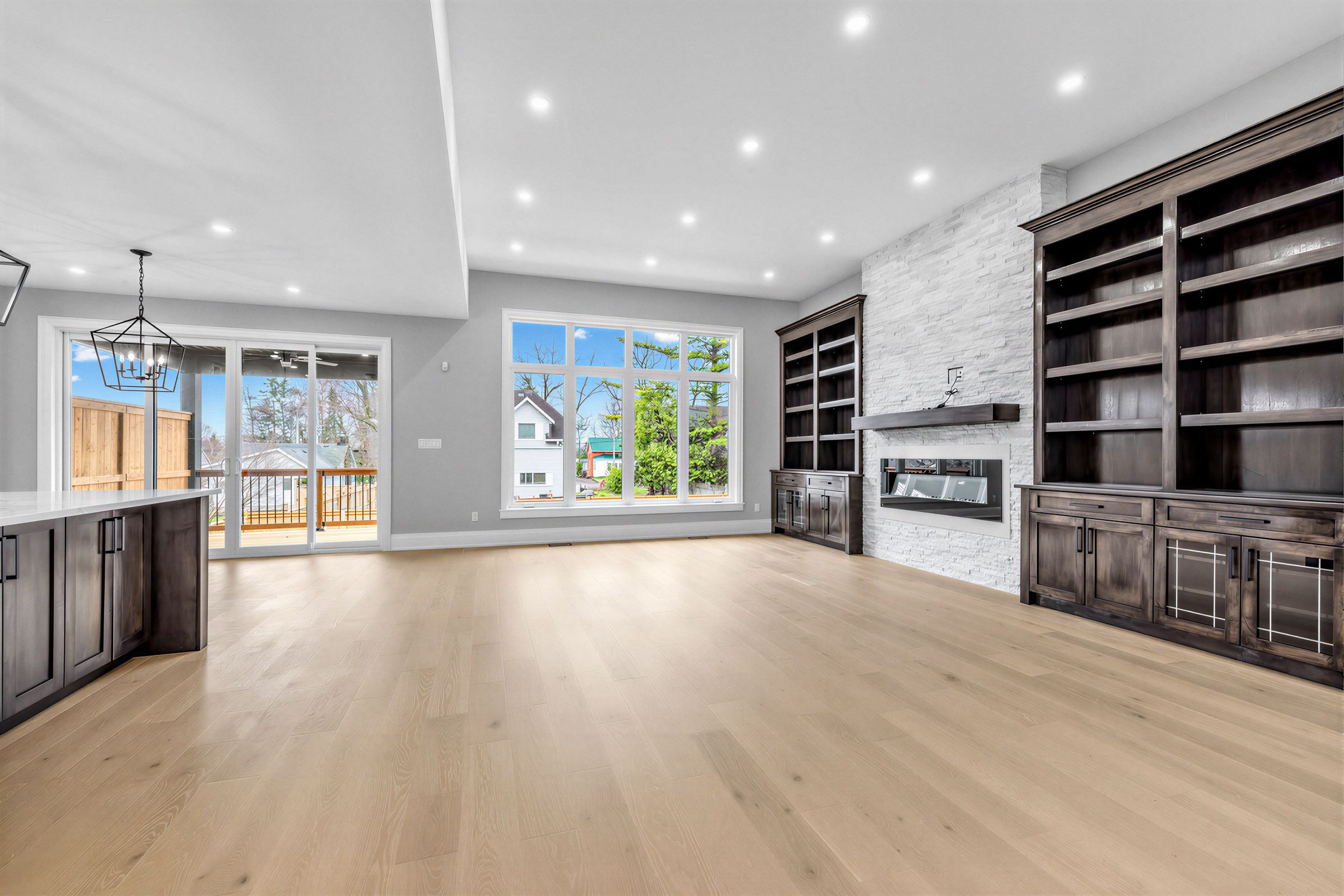 Custom-built home in one of innisfil's most sought-after family neighbourhoods. This exceptional, brand-new bungalow offers refined modern living with over 5,000 sq. Ft. Of finished space, beautifully designed for both everyday comfort and elegant entertaining. Soaring 9-foot ceilings on both the main floor and basement, expansive windows, and a dramatic skylight above the staircase fill the home with natural light. The open-concept main level is anchored by a sophisticated chef's kitchen featuring premium bertazzoni and fulgor milano appliances, quartz countertops, lit display cabinetry, a large centre island, and a seamless walkout to the covered deck overlooking the inground pool. The private office with glass door provides the ideal work-from-home space, while the family room, primary suite, and basement rec room each feature an electric fireplace for added warmth and style. The primary retreat offers a spacious walk-in closet and spa-inspired ensuite with heated floors. All bathrooms except the powder room feature heated floors, adding comfort and luxury throughout. Finished walk-up basement is a standout, with massive windows, high ceilings, a custom wet bar, and a bright, open feel that seamlessly extends the home's main living experience. With its stone and brick exterior, elegant finishes, and prime location less than 15 minutes from friday harbour resort and under 45 minutes to toronto, this remarkable home delivers luxury, function, and lifestyle in one of innisfil's most desirable settings.