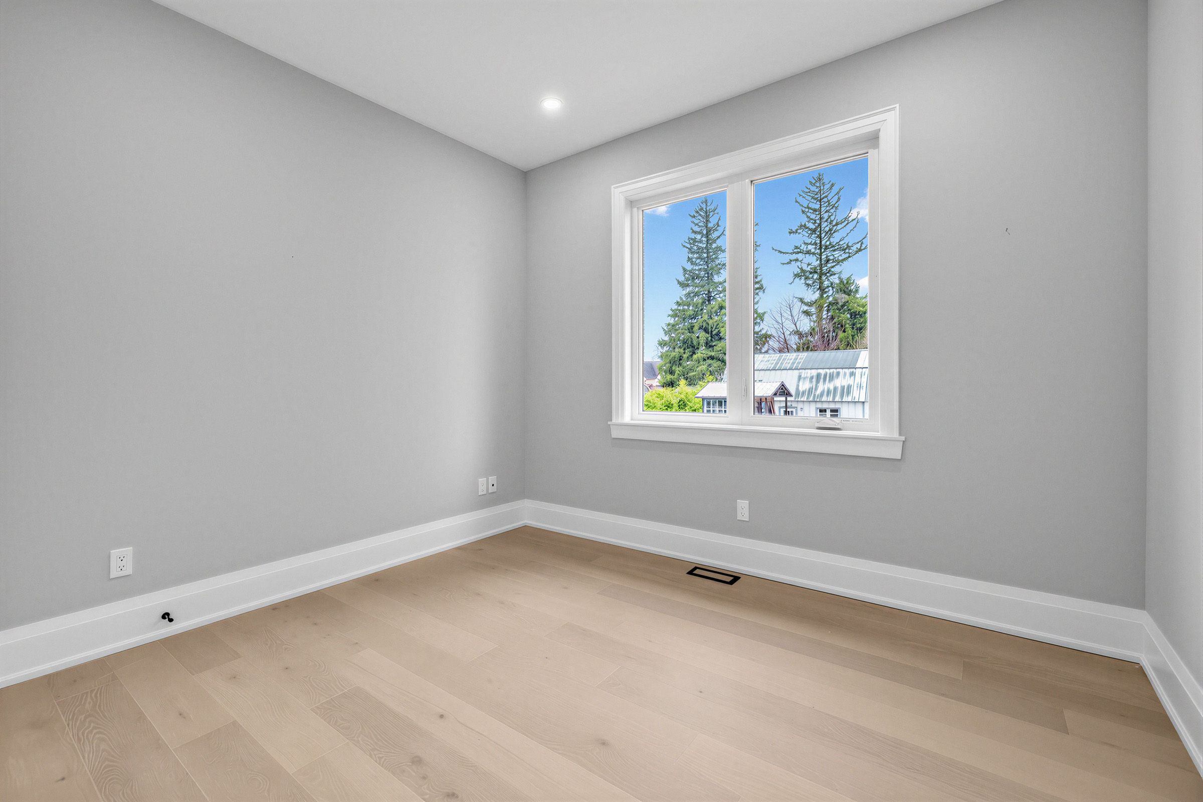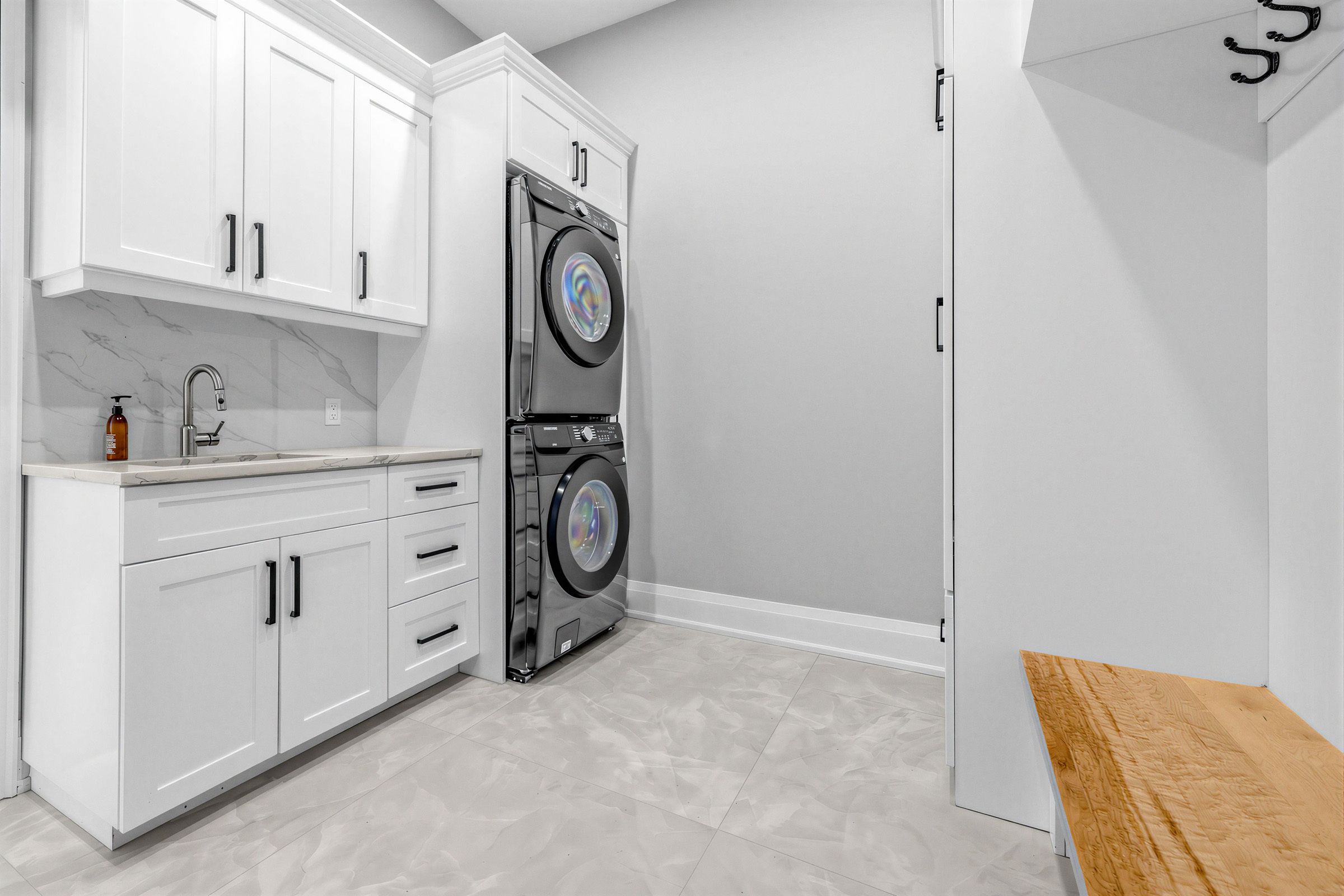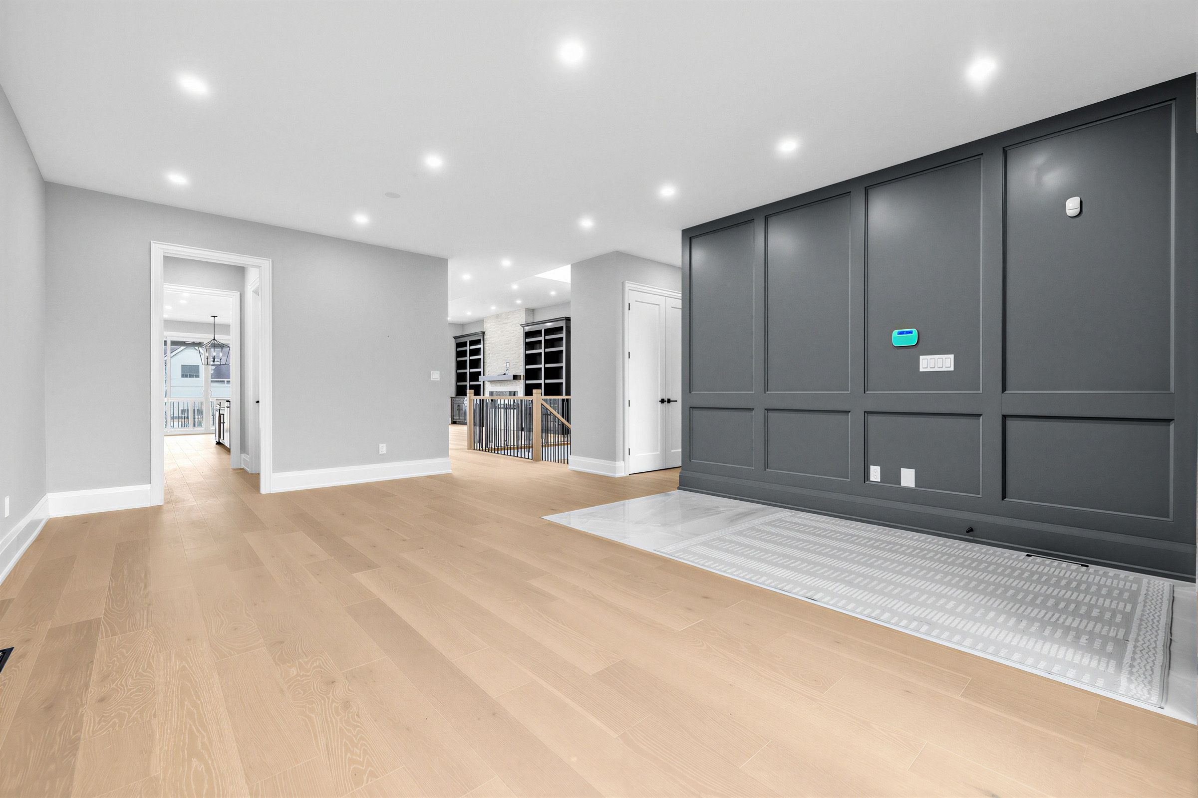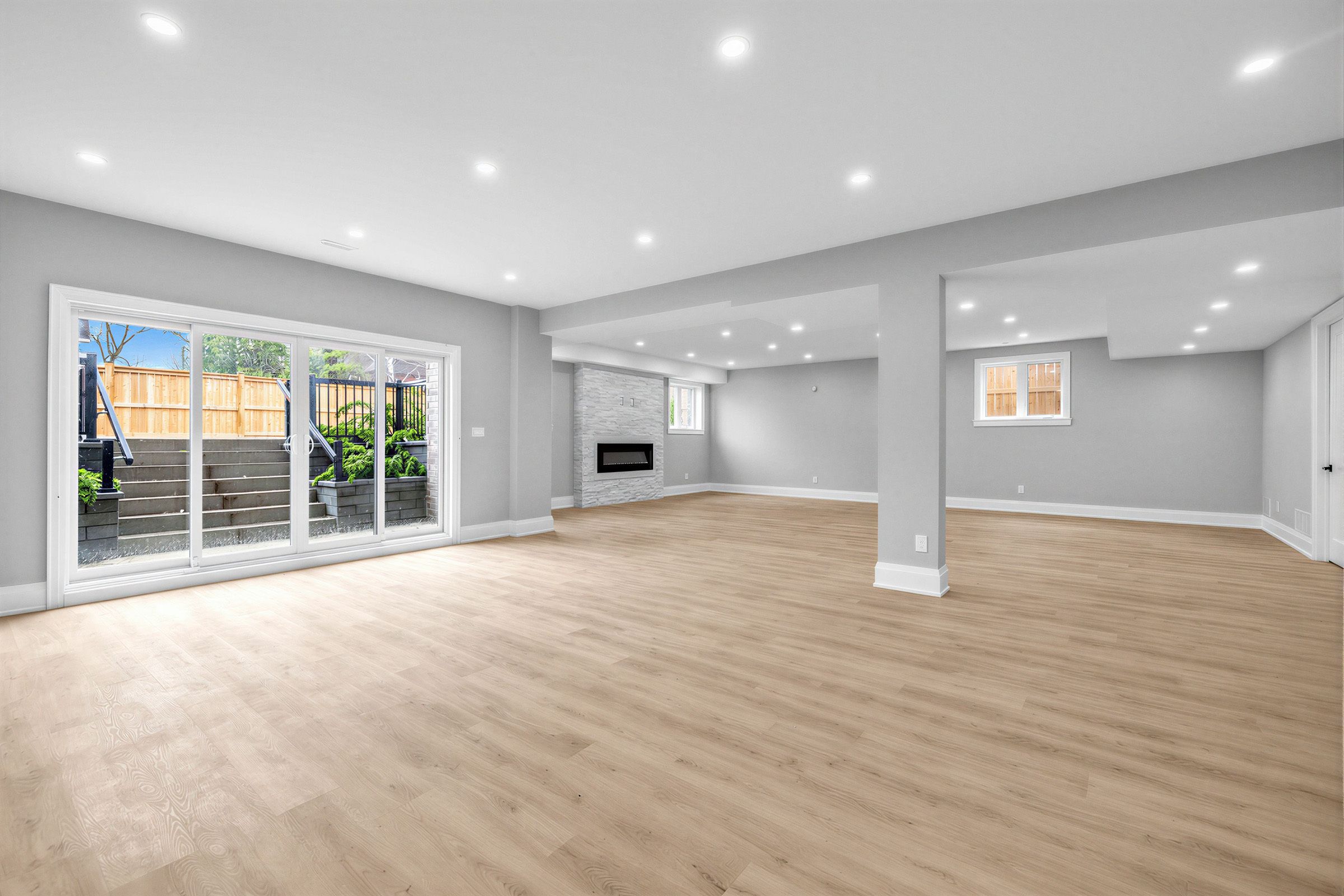 • Finished walk-up basement featuring a custom wet bar and large windows.