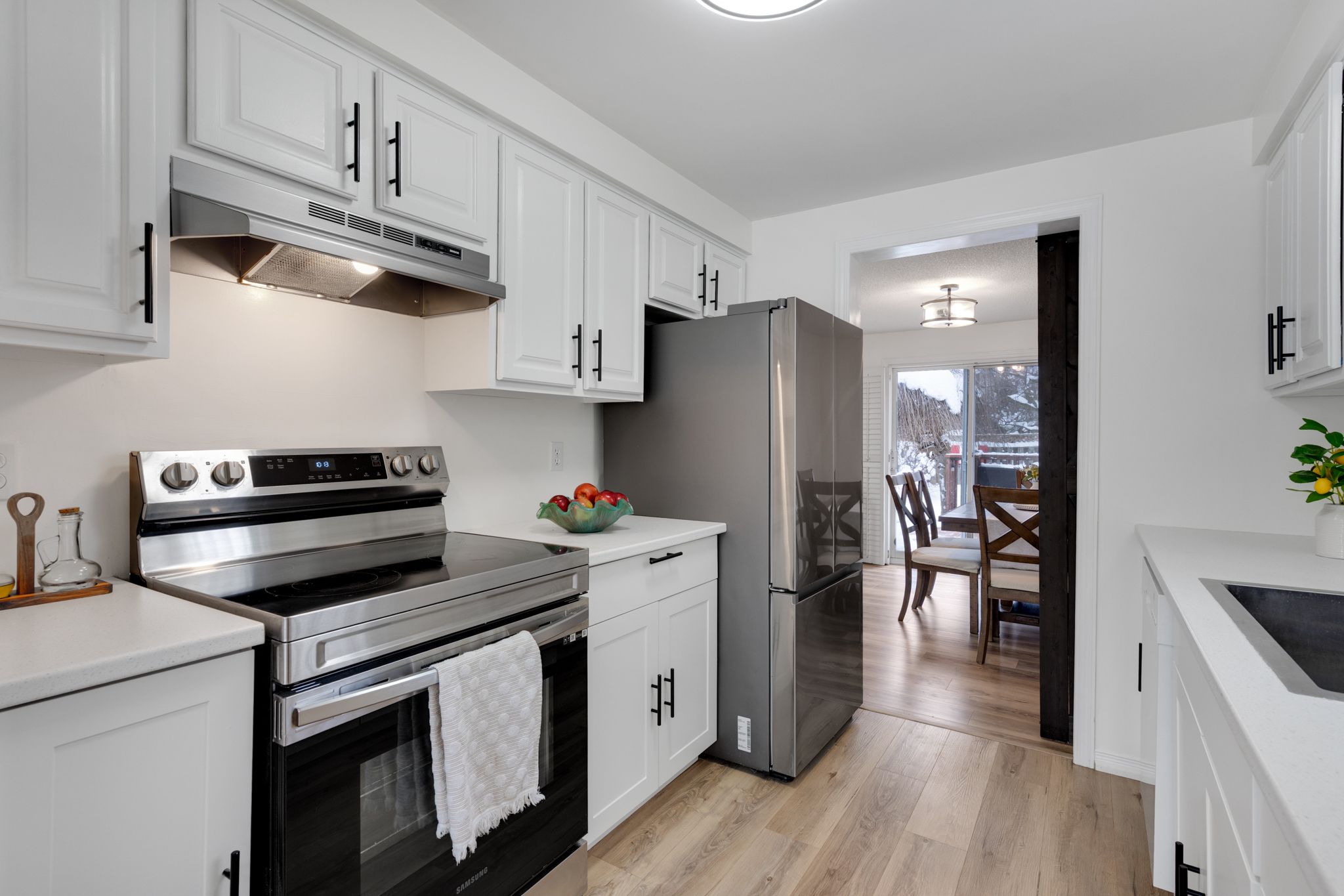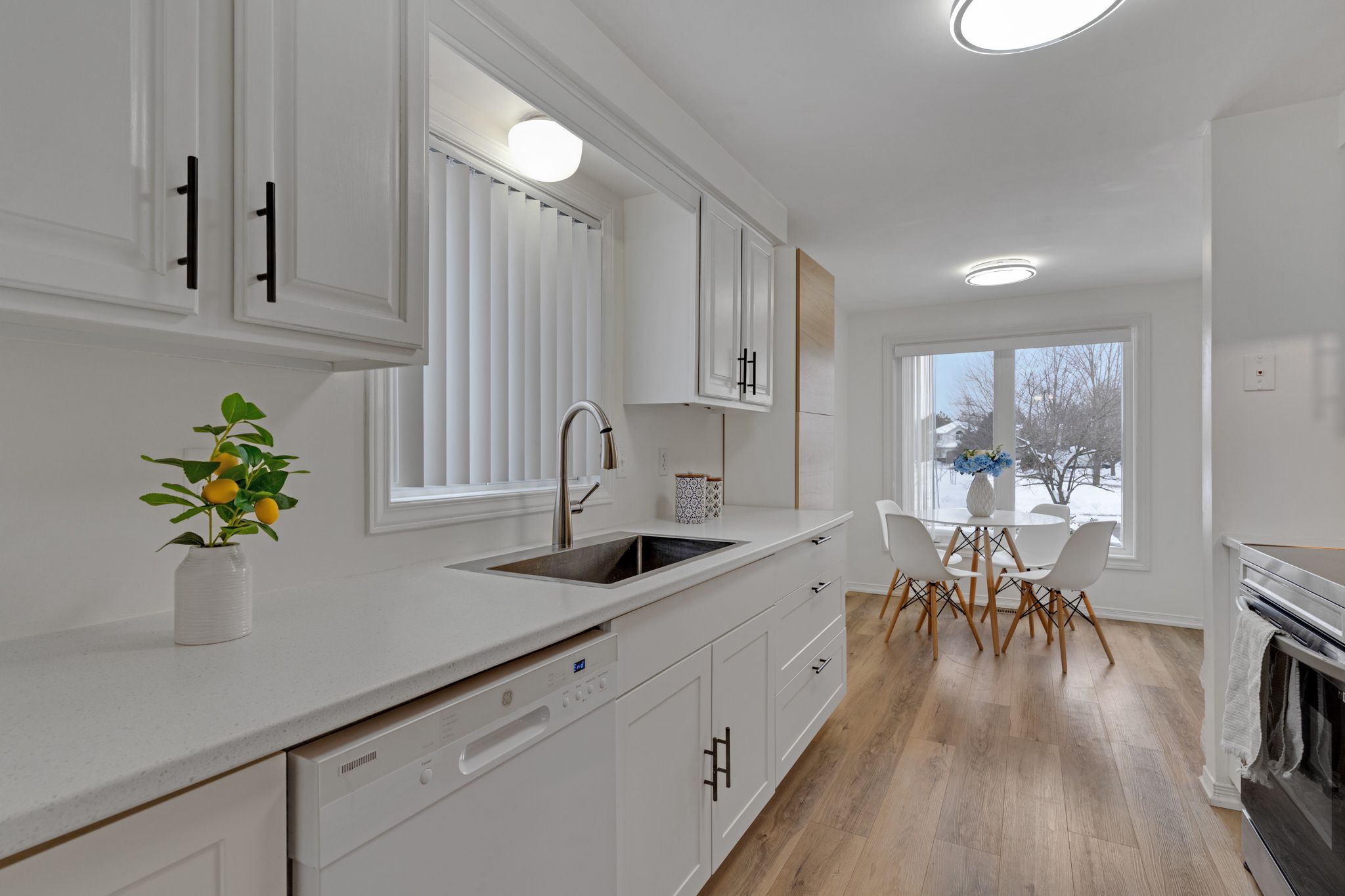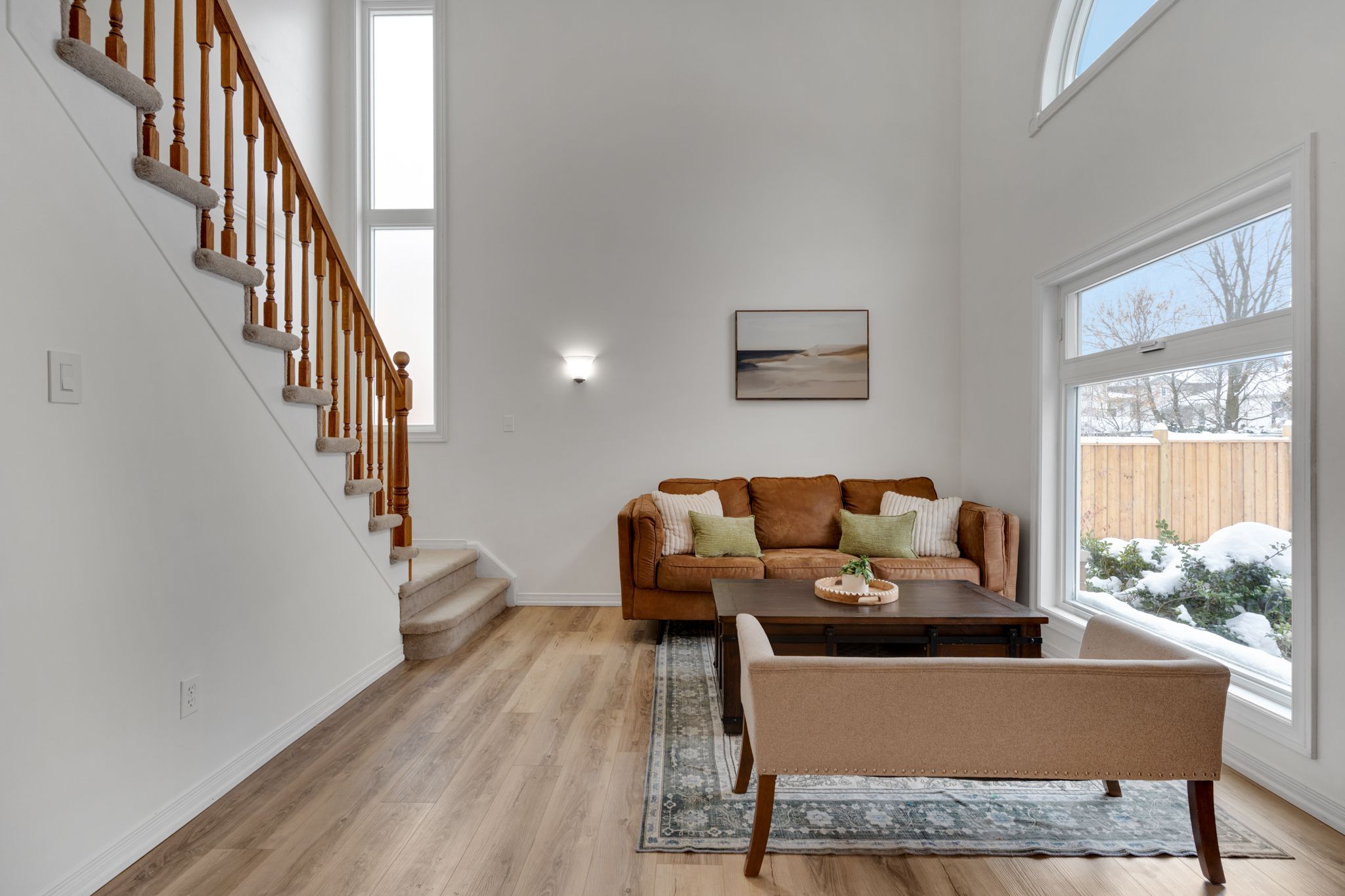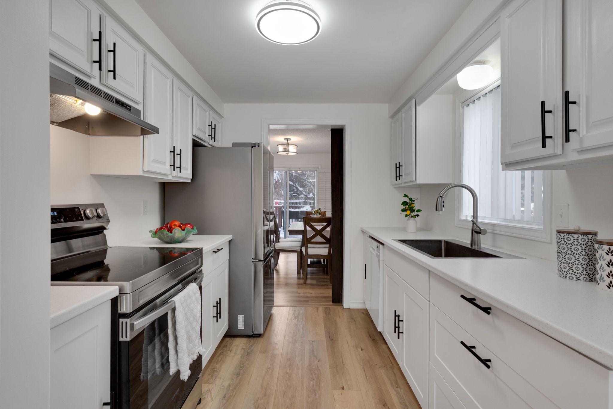 Exquisite living at 225 thornbird place - welcome to this beautifully renovated home nestled on a serene court in one of waterloo's most desirable locations. As you step inside, you are welcomed into a striking great room with soaring 16-foot vaulted ceilings and large windows that fill the space with natural light. Designed for everyday living and entertaining, the open concept layout seamlessly connects the living, dining, and kitchen areas, making it ideal for family gatherings or hosting guests. This home has been extensively upgraded in 2025 with new windows in most areas, new flooring and new paint throughout the home, and all new appliances (except dishwasher). The renovated kitchen boasts new bottom cabinets, a large sink, counter tops, updated hardware, and a sunlit breakfast nook, ideal for casual dining or morning coffee. Thoughtful touches include a fully updated powder room, new barn doors on the main floor, new custom window coverings and new light fixtures throughout the home. Step outside to a massive, meticulously landscaped backyard, complete with mature trees, tranquil surroundings, and new fence and gate on the south side, a perfect retreat for outdoor dining, gardening, or quiet relaxation. The attached garage adds convenience and extra storage, complementing the home's elegant curb appeal. Upstairs, three good sized bedrooms provide peaceful retreats, including a lavish primary suite with ample space and a partially refreshed 4-piece bathroom with a new sink, toilet, and mirror. The fully finished basement features a large rec room with high ceilings perfect for entertaining or a cozy family lounge, a fourth bedroom or private home office, a laundry room, and a bathroom rough in. This stunning home is situated on a quiet court close to top schools, boardwalk shopping area, costco, parks, trails, public transit, restaurants, uptown waterloo, major highways, and both universities. Don't miss out on this one and book your private tour today!