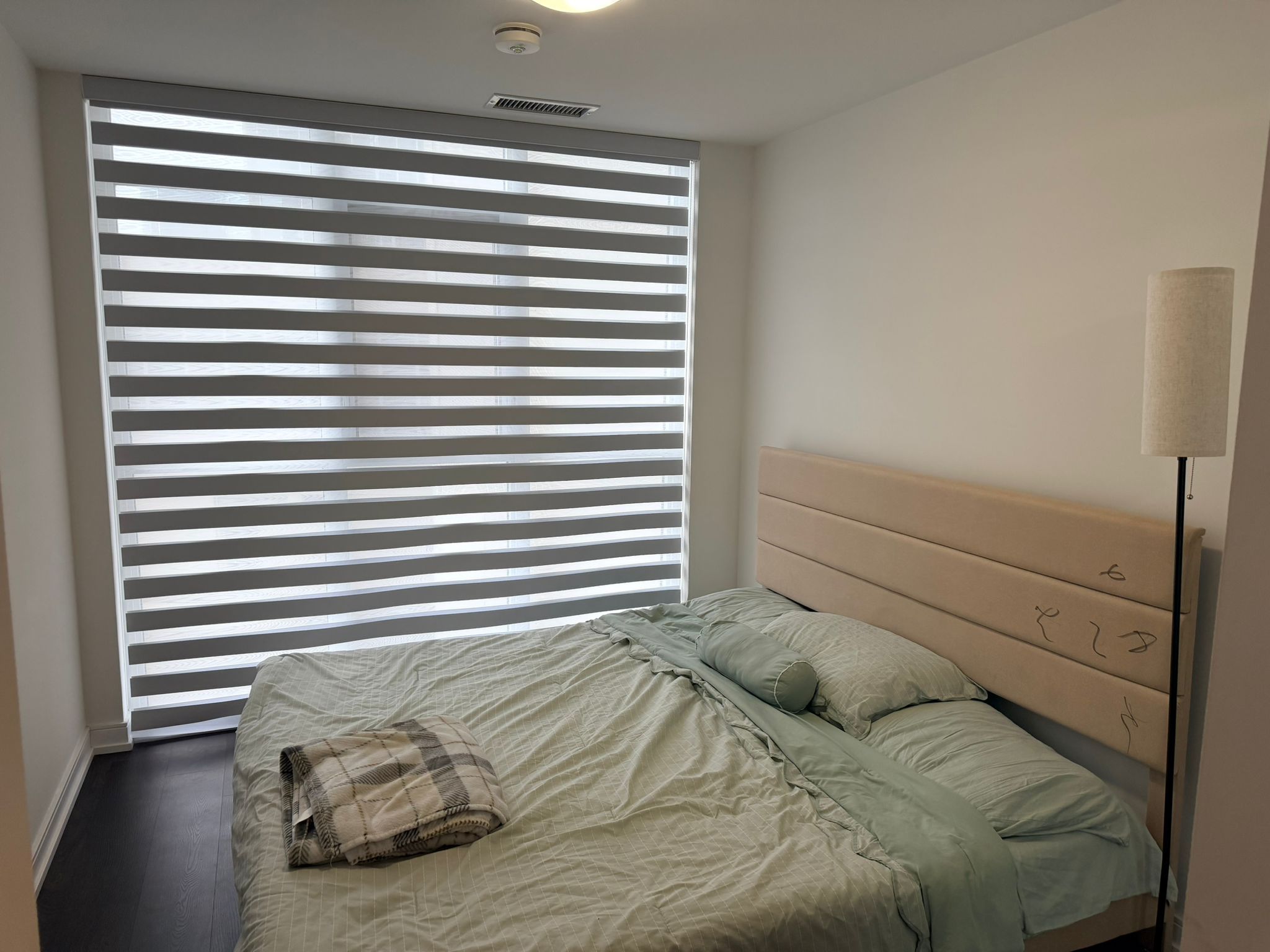 Newly built tridel condo in sought-after metrogate community! Experience modern living in this stylish 1-bedroom + den suite featuring a spacious open-concept layout with upscale finishes throughout. Highlights include smooth ceilings, upgraded cabinetry, pot lights in the kitchen, mirrored closet doors, high-quality window coverings, and a sleek glass-enclosed shower. The generously sized den is perfect for a home office or guest space. A rare tandem 2-car parking spot offers exceptional convenience-ideal for couples needing flexibility without compromising on space or location. Located in the vibrant metrogate community, this condo offers proximity to transit, shopping, dining, and parks. A perfect opportunity for young professionals or couples seeking modern comfort with urban accessibility and the rare bonus of two parking spots.
