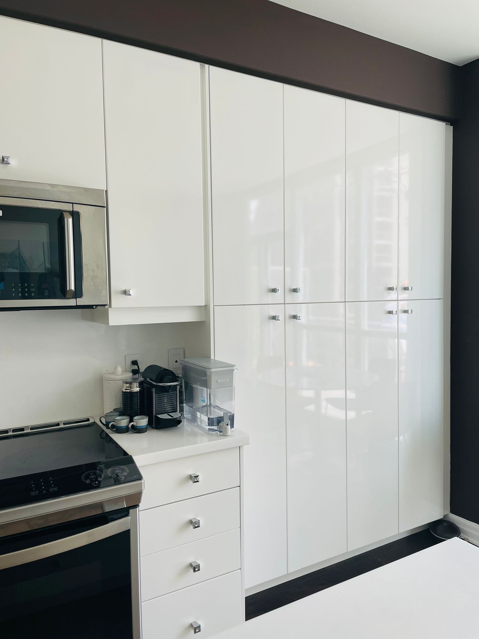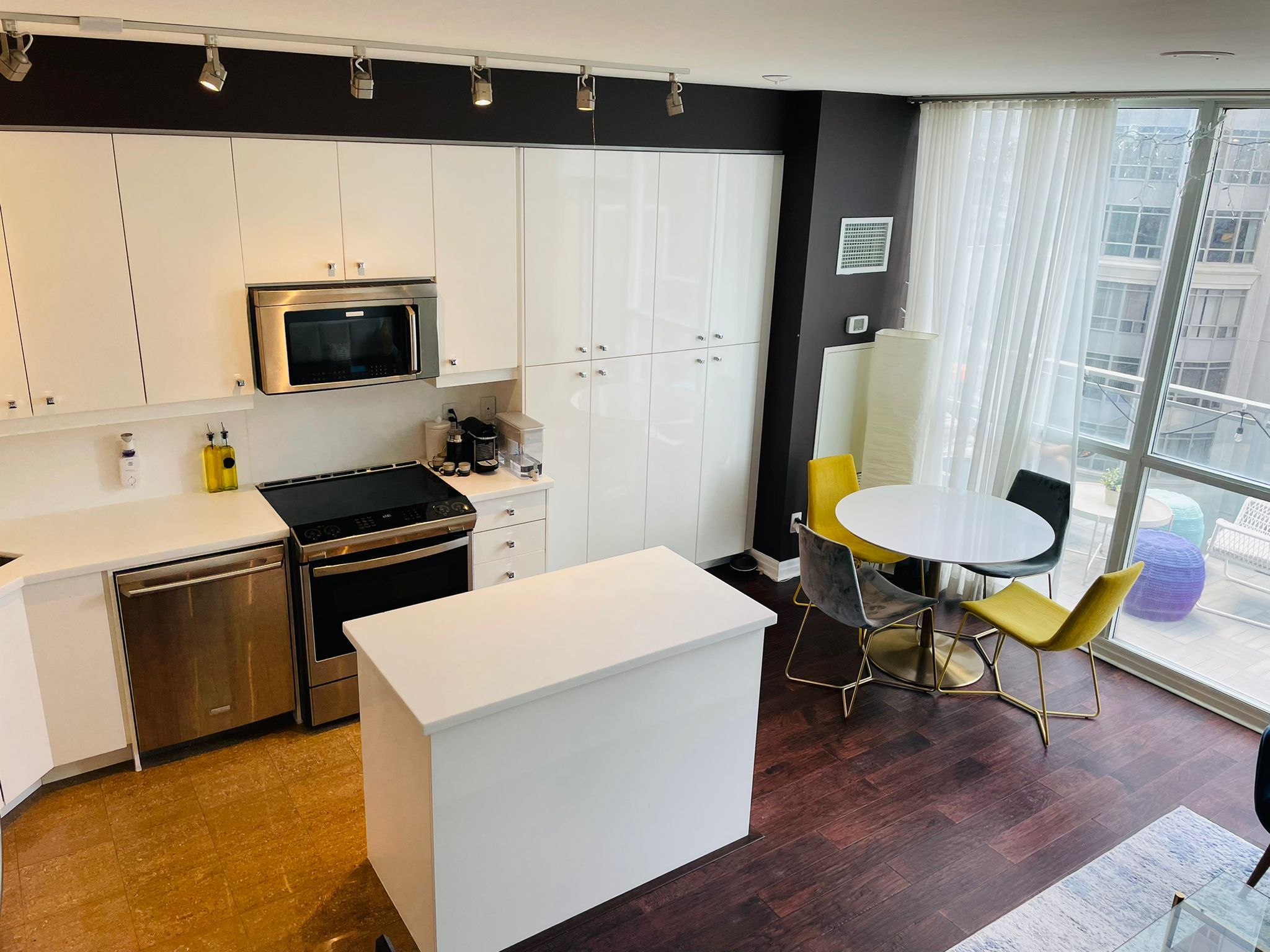 • Expansive floor-to-ceiling windows fill the space with natural light.