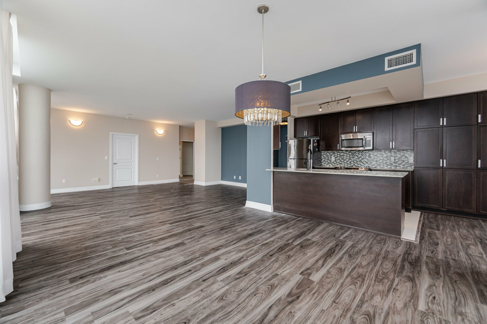 • Spacious open-concept layout with 10' ceilings and hardwood floors throughout.