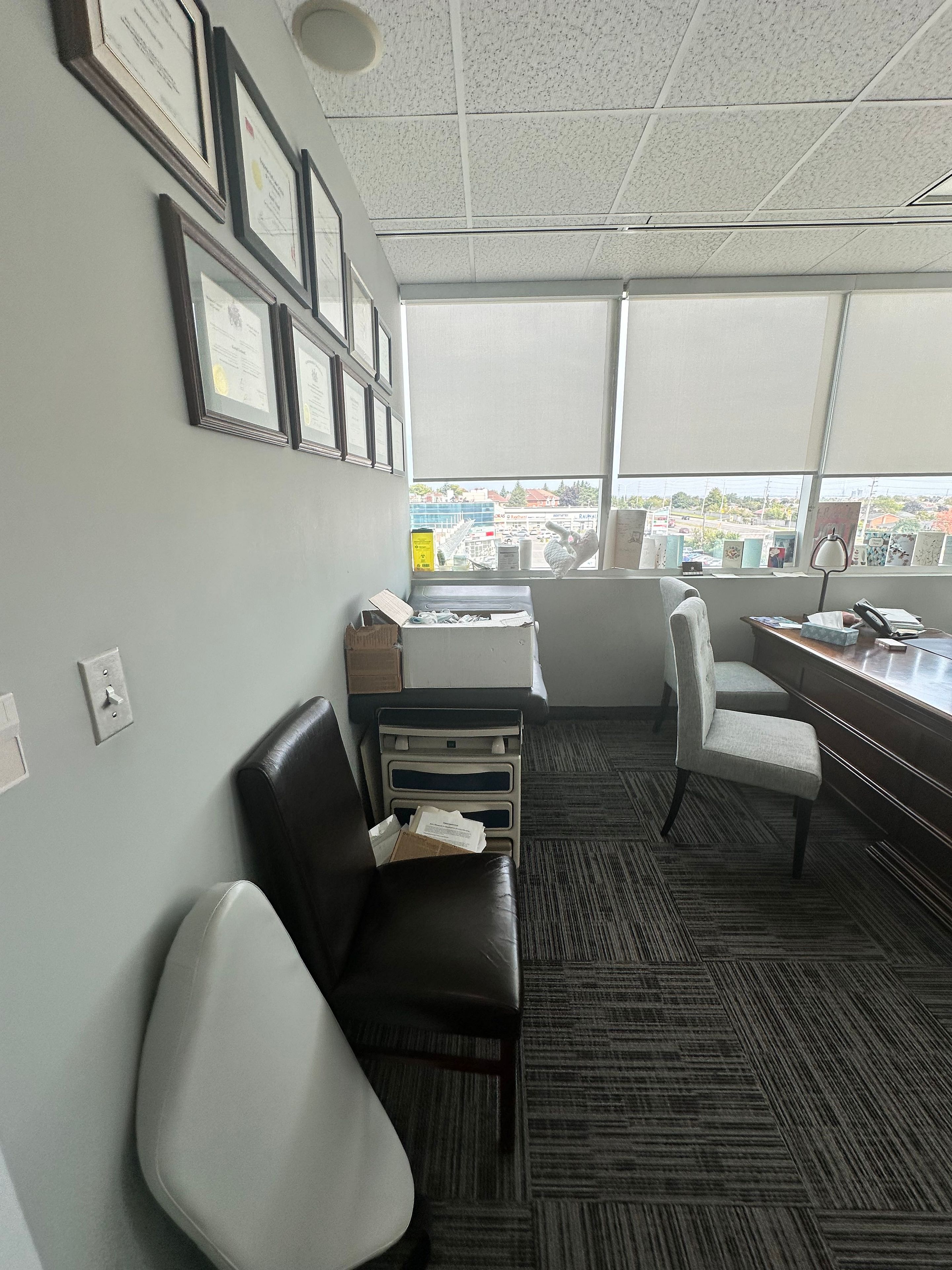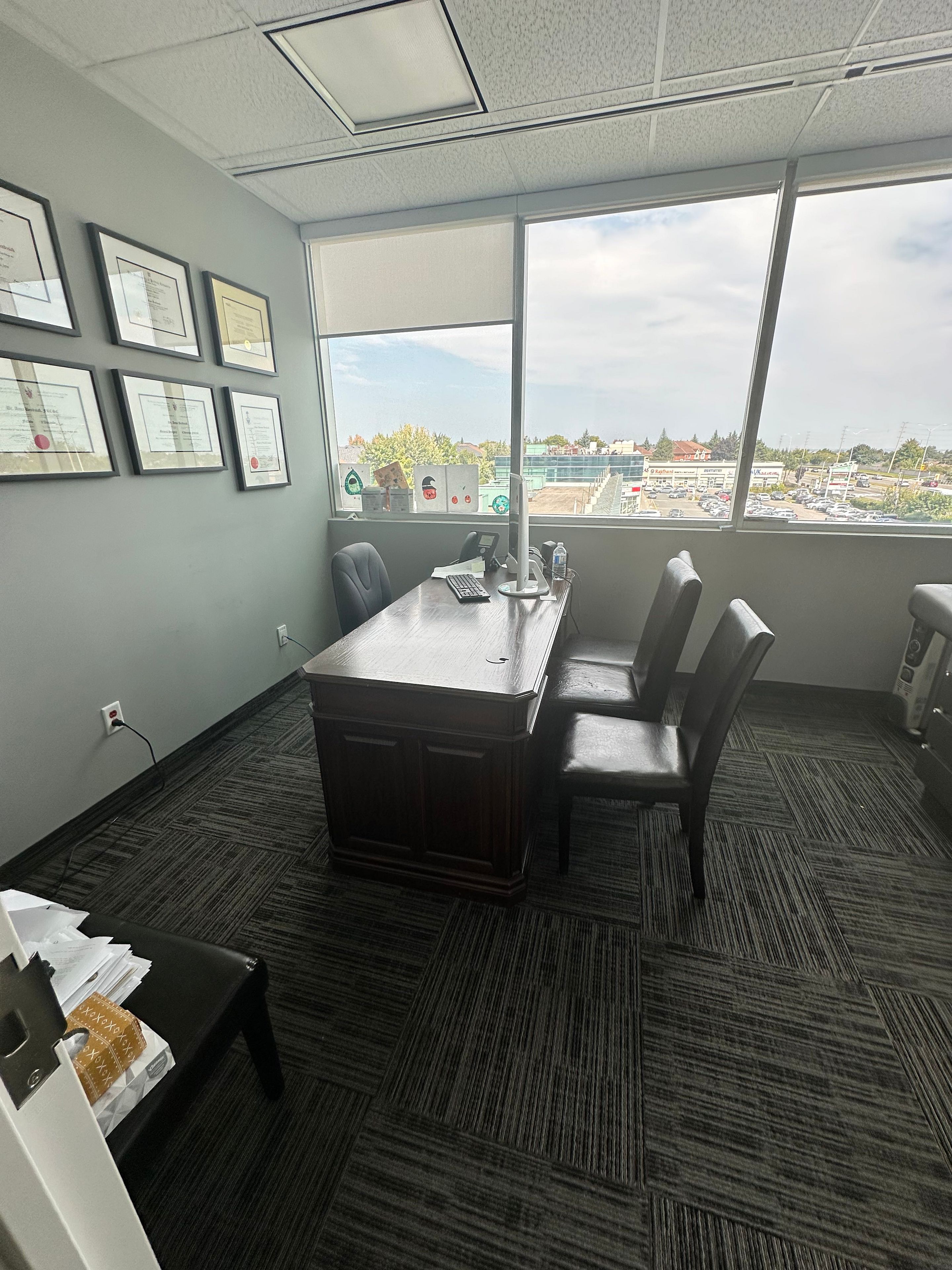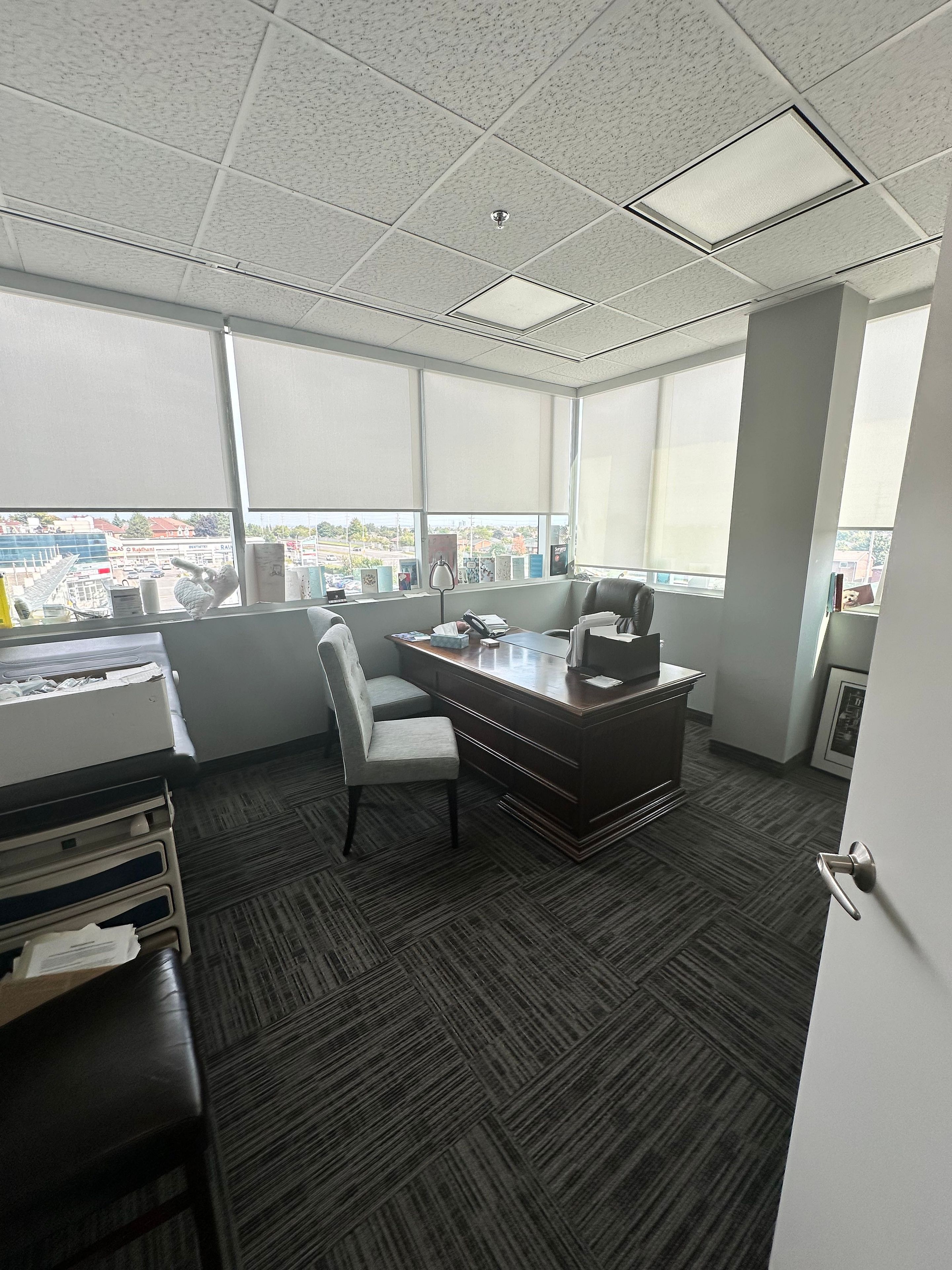 Great commercial turn key medical space, this corner unit has 6 office, private kitchen, washroom, reception, storage energy efficient building with geothermal technology to reduce utility costs. Hydro is excluded from. Gross lease. $4000+ hst + utilities. Move in ready professional space in the state of art springdale professional center , located next to william osler hospital, suitable for all professionals. Tenant pays hydro.