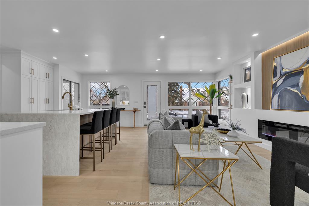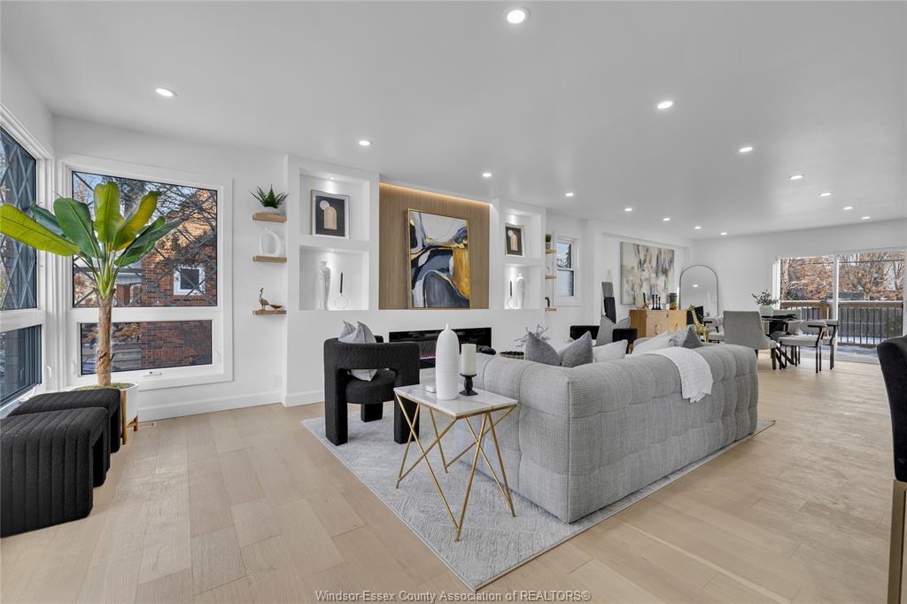 A south walkerville showstopper you won’t want to miss welcome to 2250 moy, a fully renovated 5 bed 2 bath luxury home in the heart of coveted south walkerville, close to beautiful optimist- memorial park. Every inch has been modernized to deliver effortless, turnkey living. The main floor features a spectacular open-concept layout with a striking feature wall and electric fireplace, complemented by a show-stopping kitchen with premium finishes and appliances, perfect for entertaining. Upstairs, the primary suite is a true retreat— a spa-inspired ensuite with floor-to-ceiling tile, curbless shower, and standalone tub exudes elegance. 2 additional bedrooms round out the second floor. The finished basement adds remarkable versatility with 2 more bedrooms, a cozy family room, a grade entrance, and a spacious laundry room. With a new roof, furnace and a/c, sump pump and backflow valve, rear deck, detached garage, new appliances, and pre-inspection complete, this home offers unmatched peace of mind. Nothing to do but move in—opportunities like this are rare.
