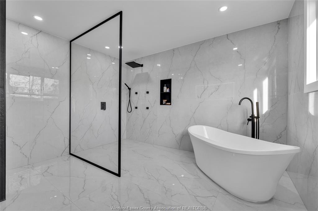 • Spa-inspired primary suite featuring a curbless shower and standalone tub.