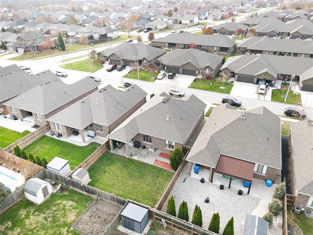 • Backyard features covered patio, privacy fence, and garden shed.